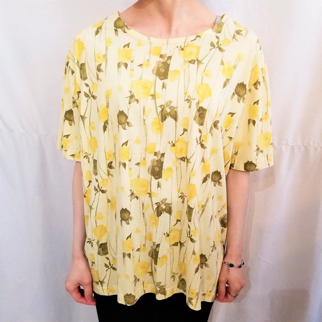 Flowerpattern rayon t-shirt / Made in Italy[m-620]花柄 レーヨンTシャツ
