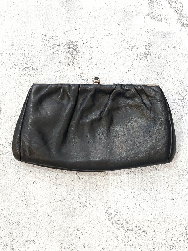 レザーがま口クラッチバッグです。 ポーチとしてもおすすめです。 素材:おそらく、レザー カラー:Black 実寸サイズ:縦13×横23.5cm *商品によって、多少の誤差が生じる事があります。何卒ご了承下さい。 状態:所々に気にならない程度の白い点の様なよごれがあります。がま口内側部分に錆があります。 内側ポケットの角にほつれと破れがあります。 レザー特有のしわがあります。 【備考】 *ご購入前に【特定商取引法に基づく表記】を必ずご確認頂きますようお願い致します。 used商品について、通販をされるにあたっての注意事項の記載がございます。 *撮影環境や、ご使用のモニターにより実物と多少の色味の誤差が生じる場合がございますので予め、ご了承くださいますようお願い致します。 *その他、分かり辛い点、ご不明な点などがあるかと思います。 少しでも気になられることがございましたら、追加画像を送らせて頂くなど 個別に対応させて頂きますので【CONTACT】よりお気軽にお問い合わせ下さいませ。