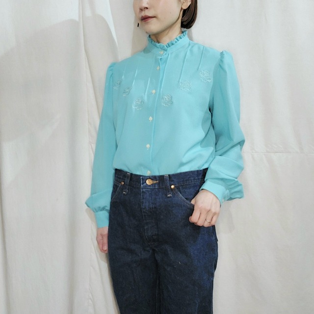 Flower embroidery frill collar blouse / Made in Italy[m-1440]イタリア製 花刺繍フリルカラーブラウス