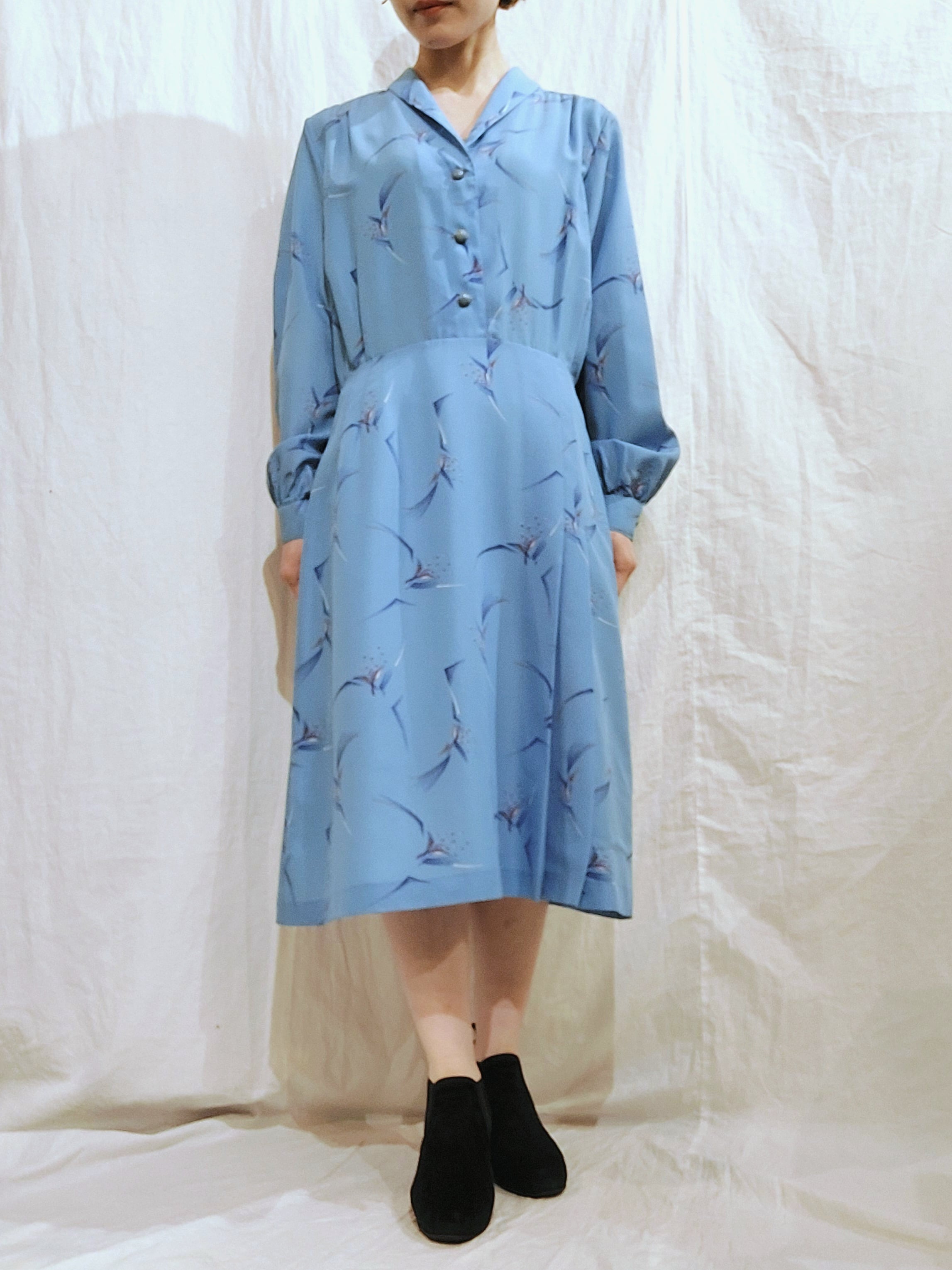 総柄のショールカラーワンピースです。