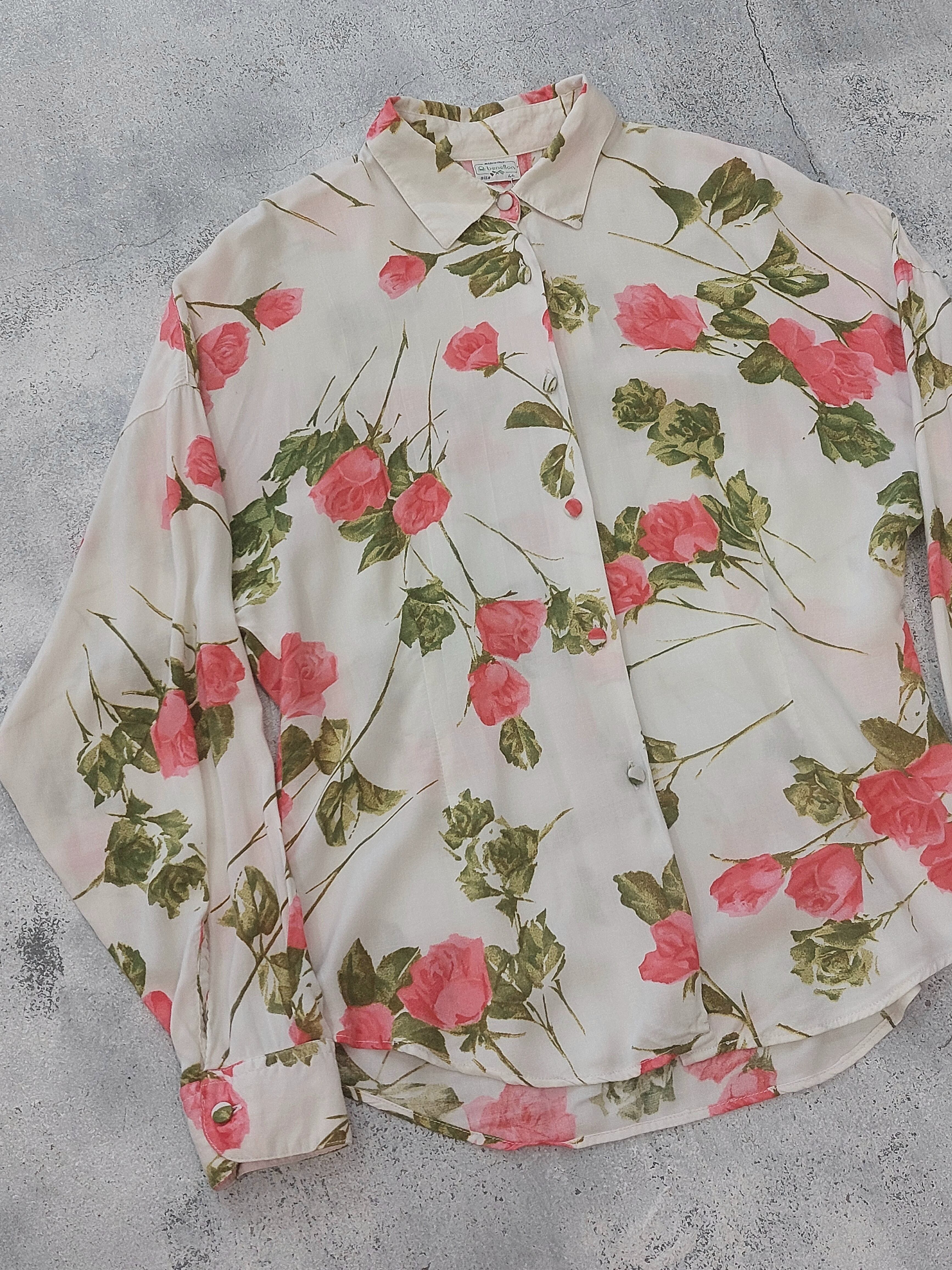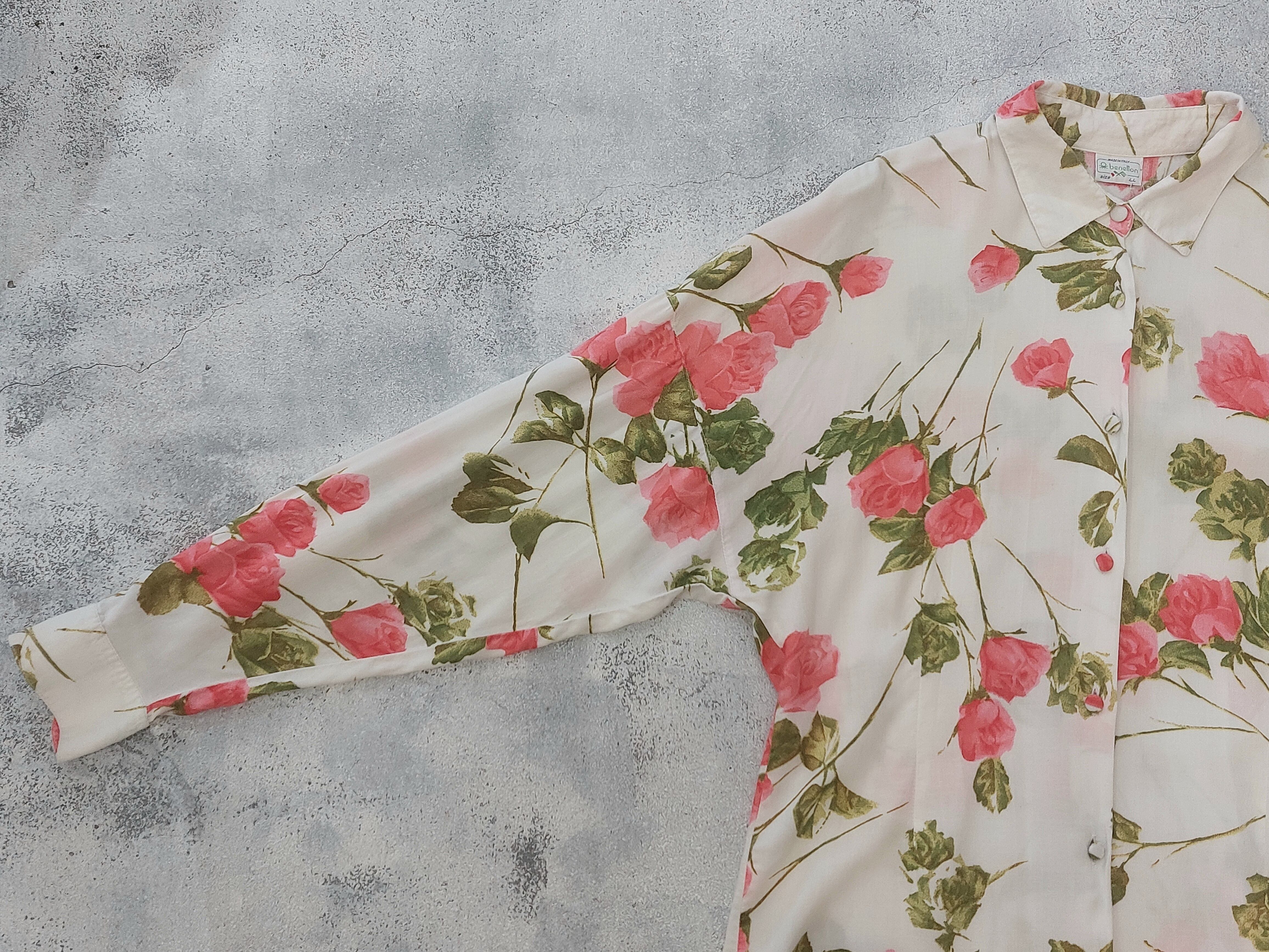 Vintage benetton flower pattern rayon shirt / Made in Italy[m-956]イタリア製 ヴィンテージベネトン 花柄レーヨンシャツ