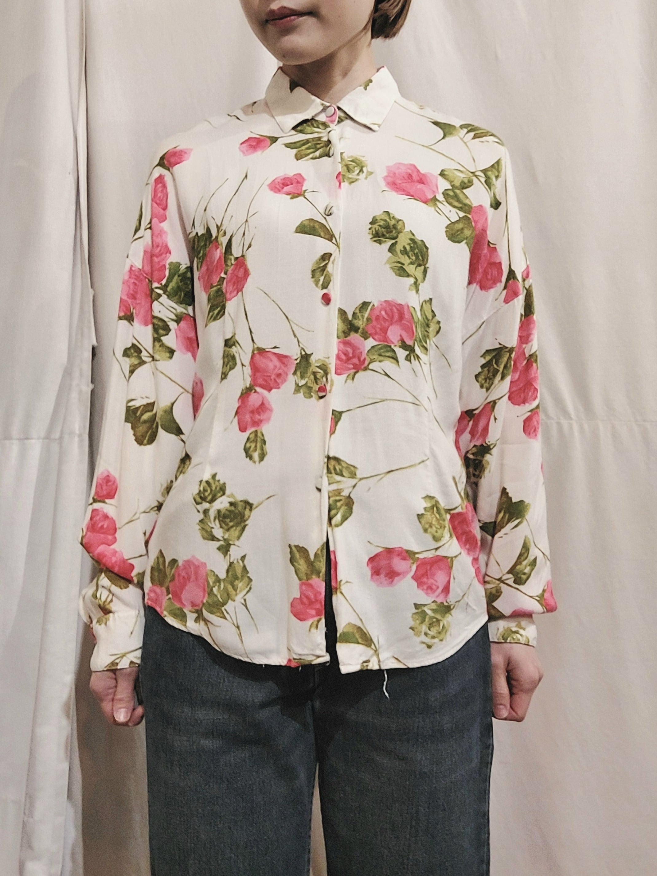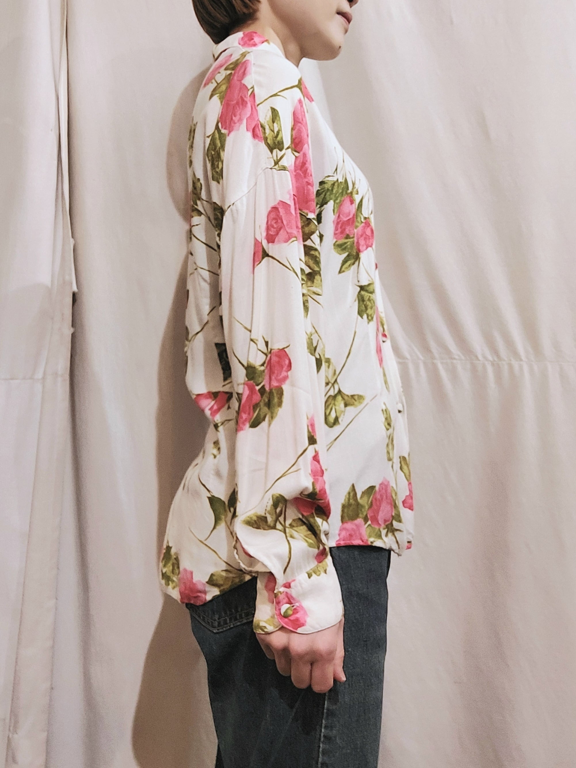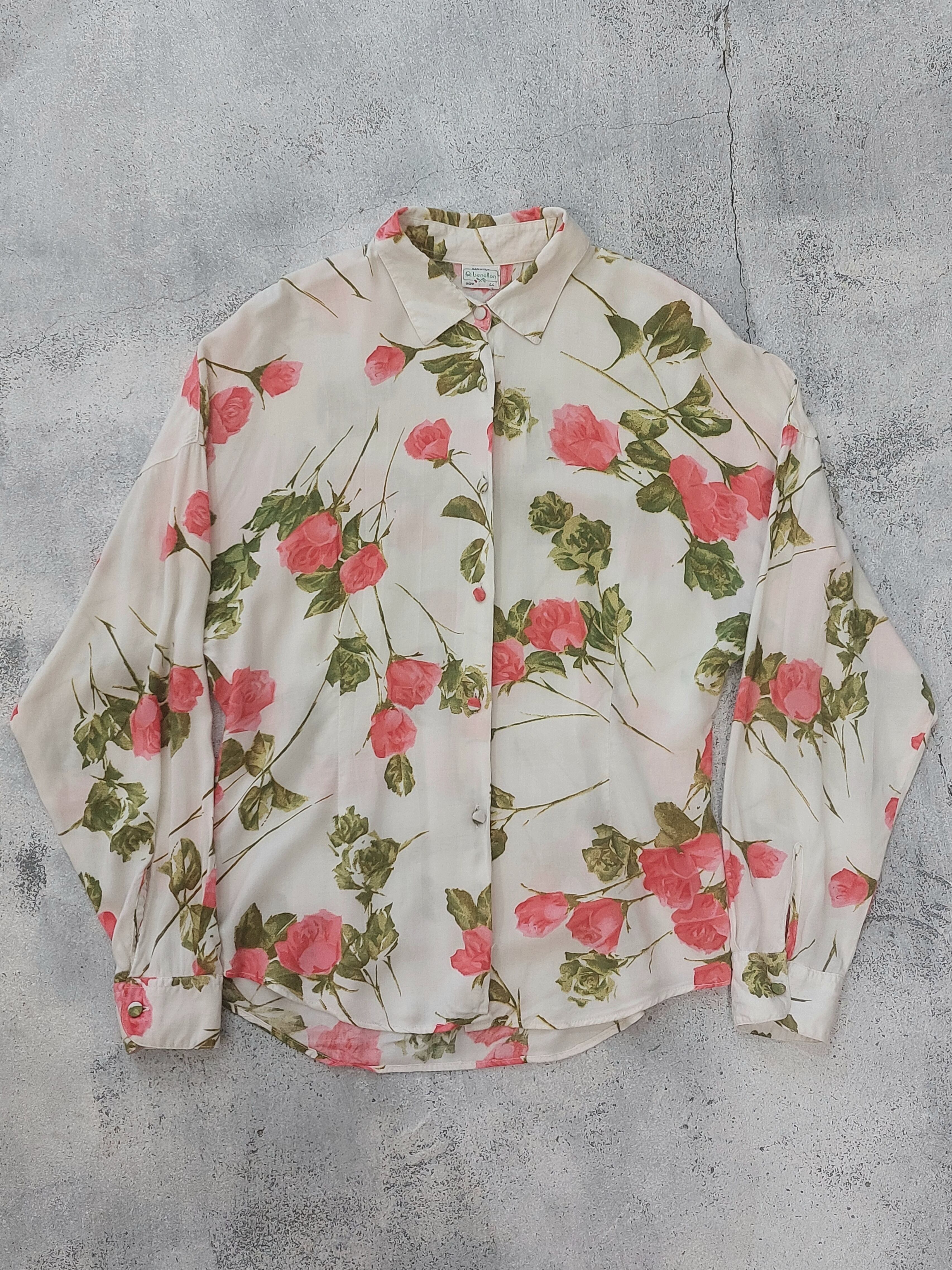 ヴィンテージbenettonの花柄レーヨンシャツです。