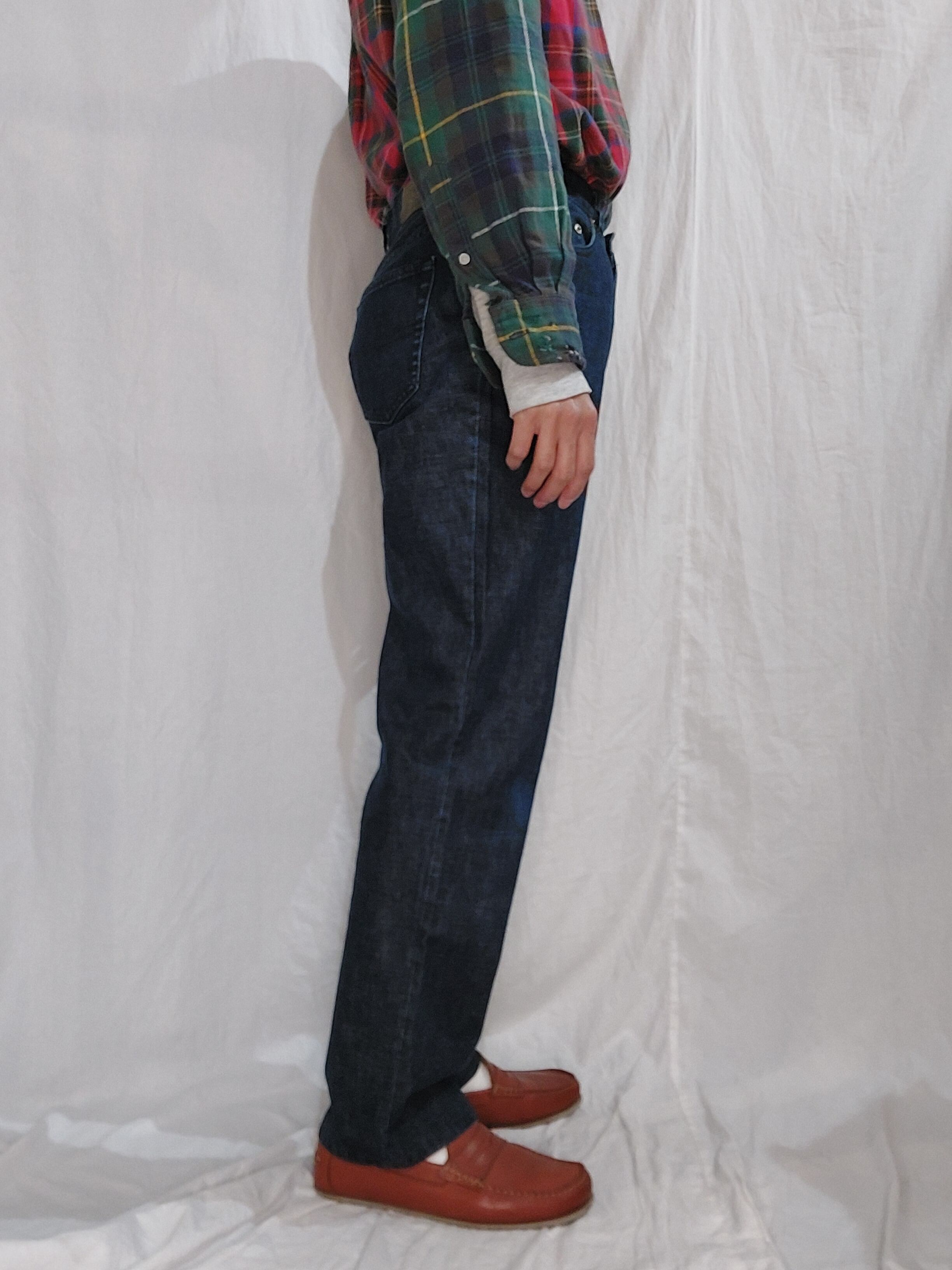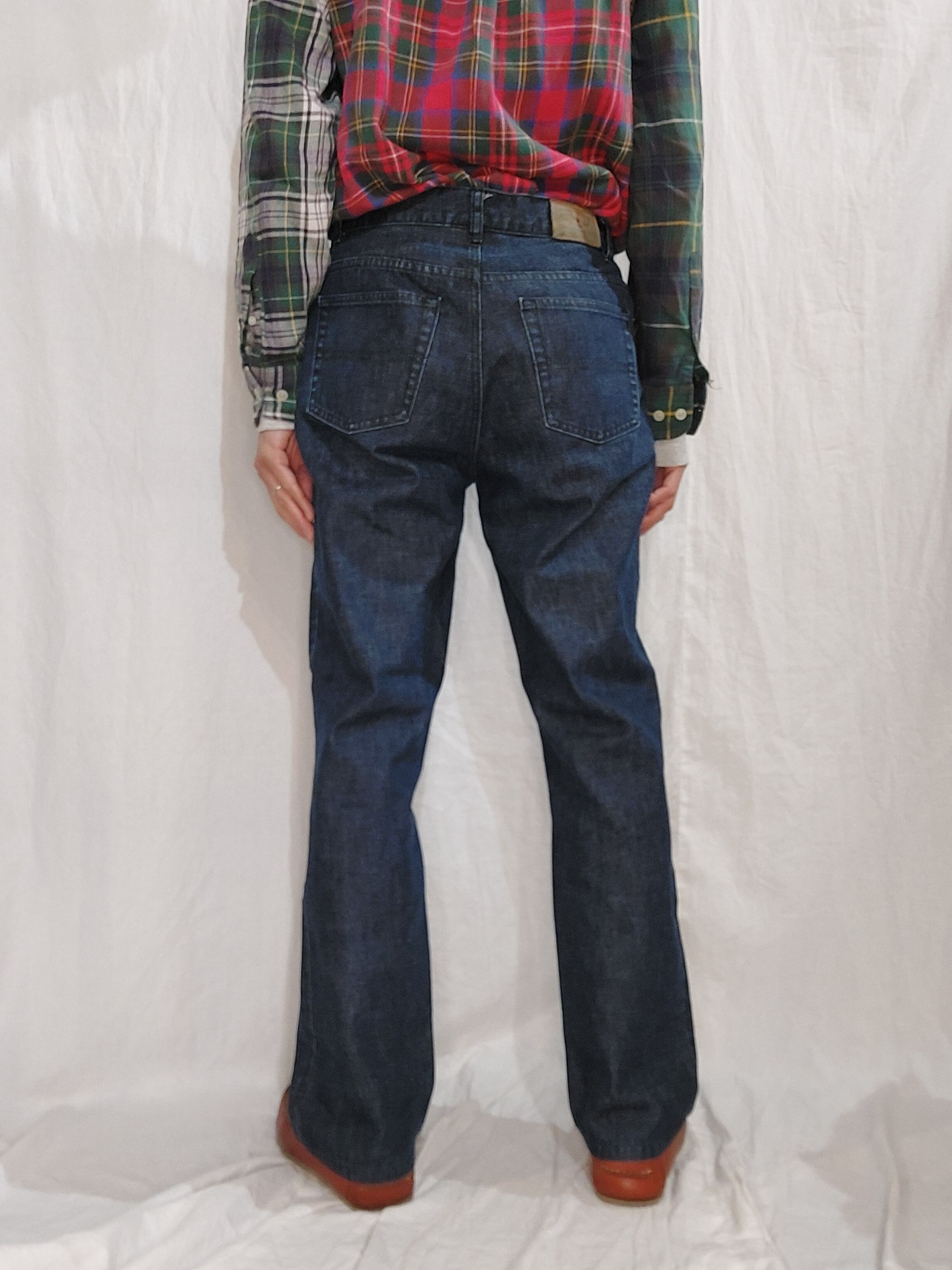 実寸サイズ(平置き):ウエスト81㎝×股上28.5㎝×股下74㎝×わたり31㎝×裾幅20㎝