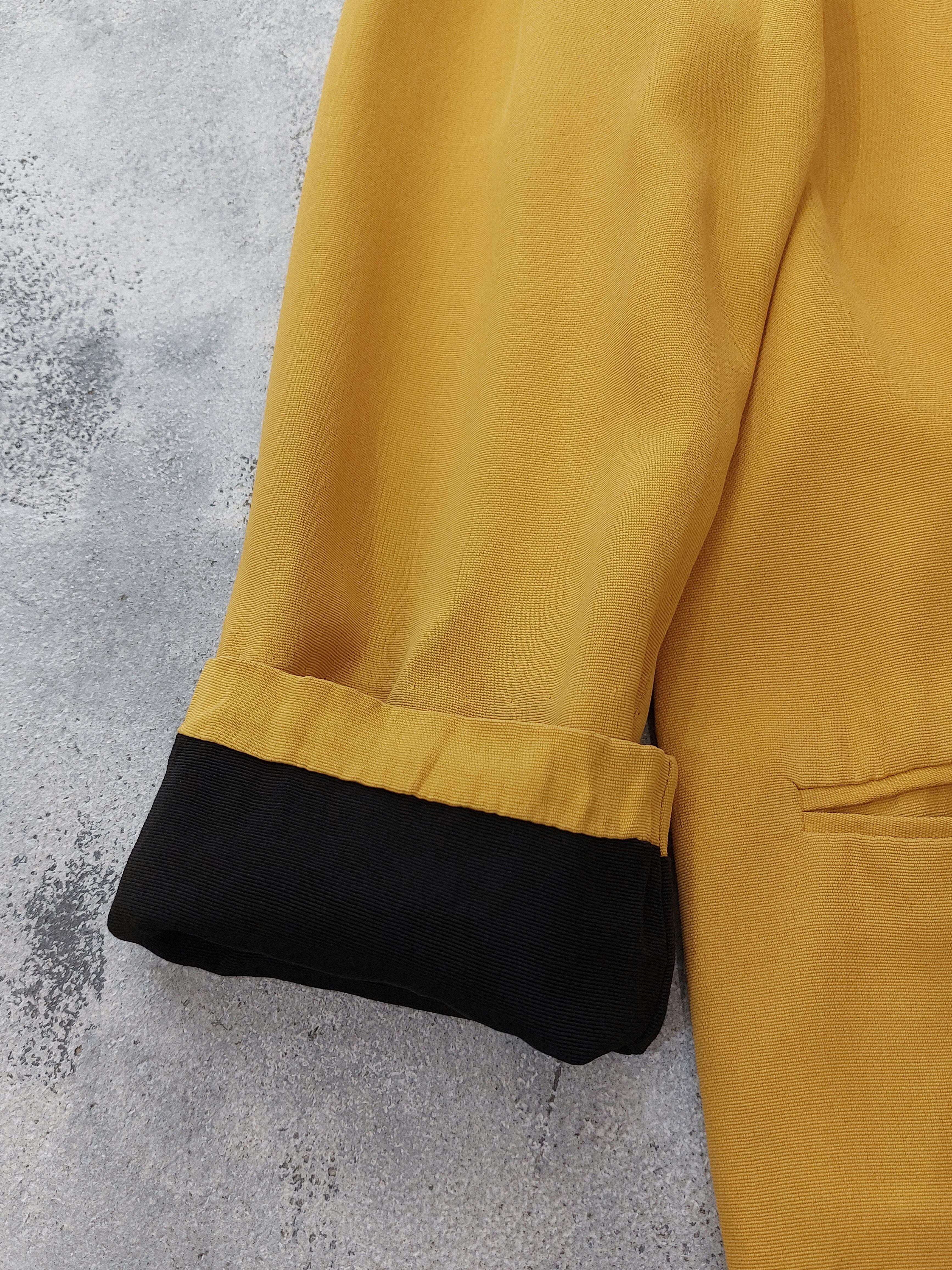 裏地がなく、さらっとラフに羽織っていただけます。袖口部分にのみ裏地がついていて、折り返していただくとアクセントをお楽しみいただけます。