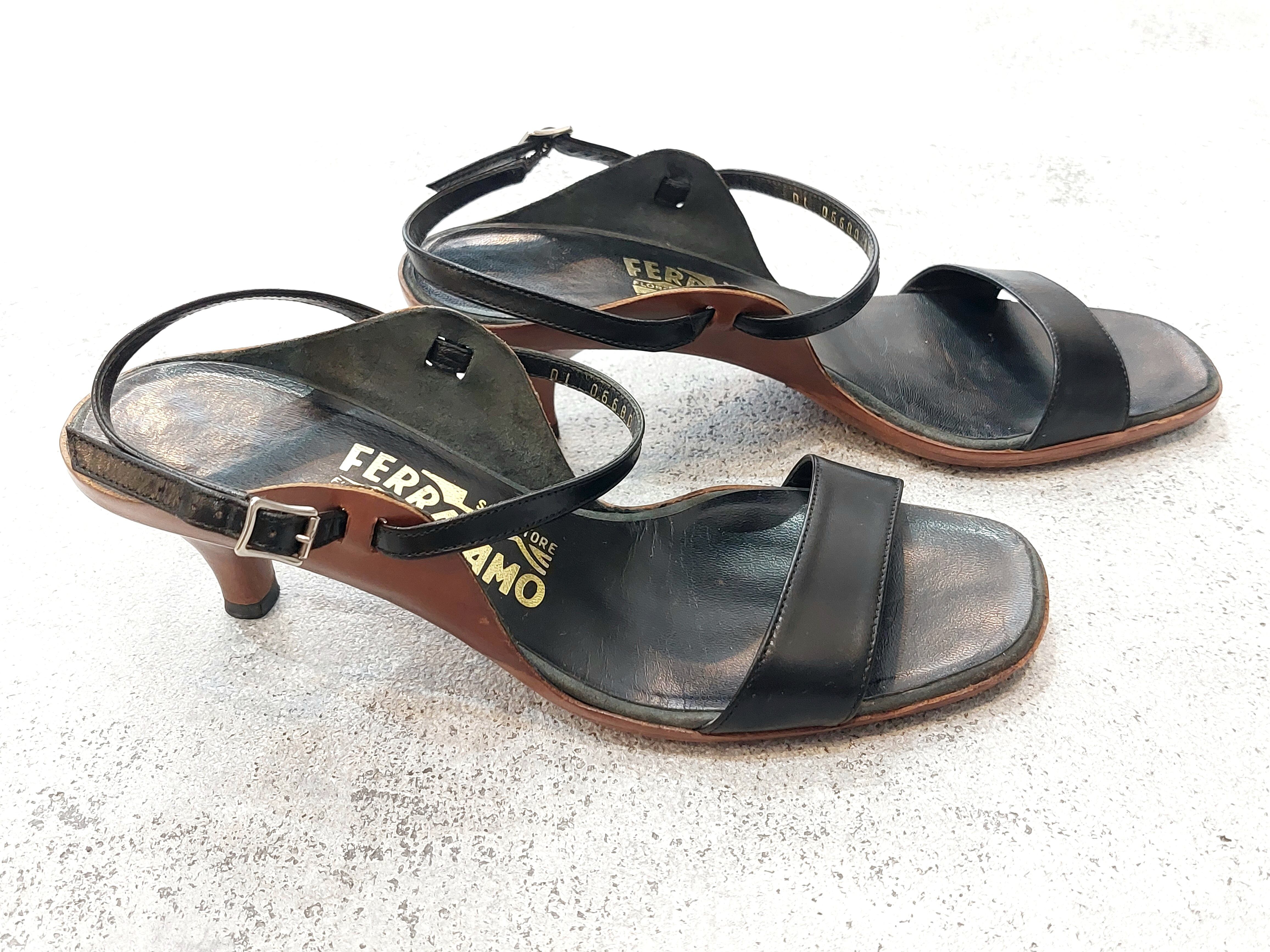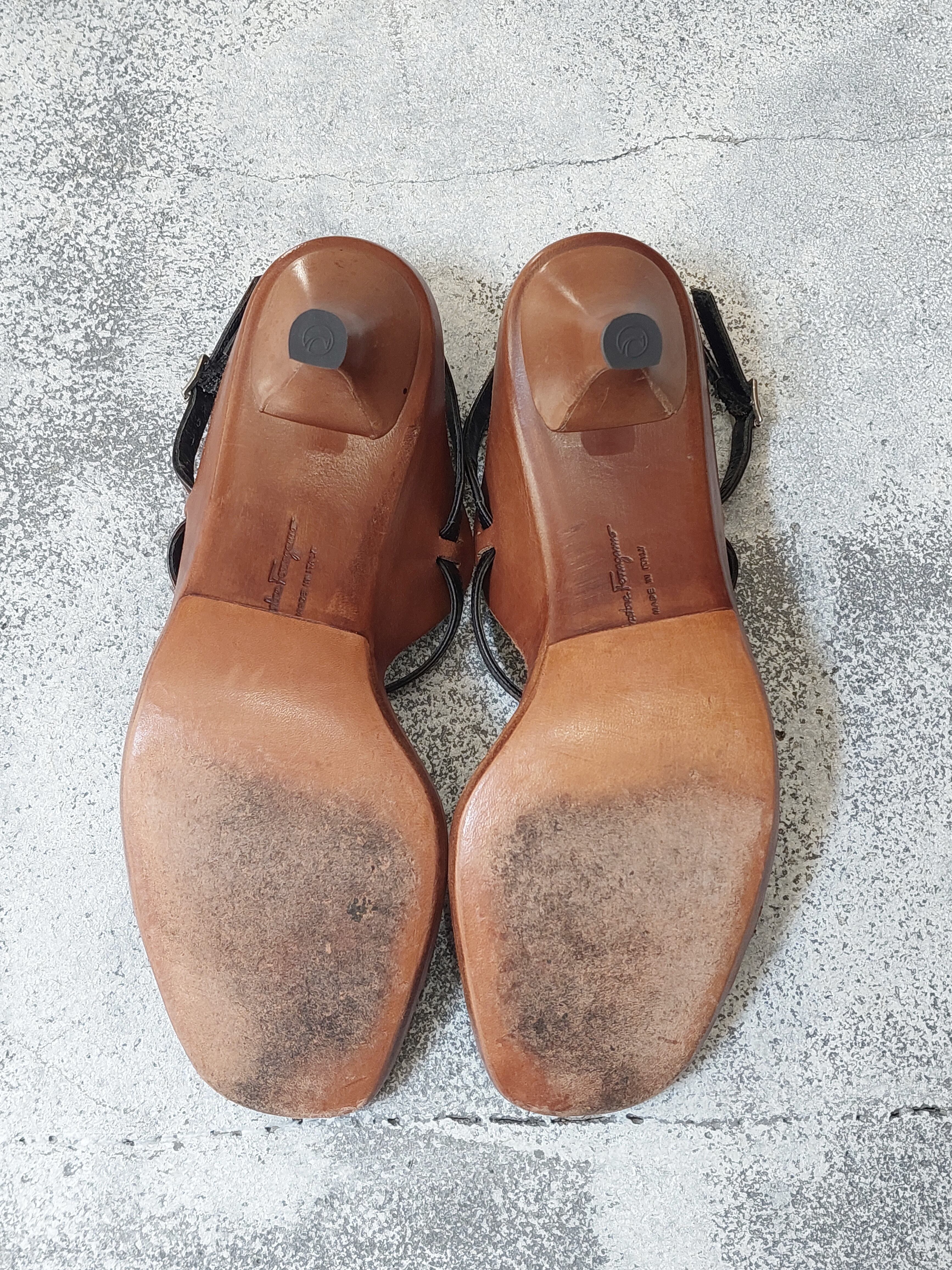 SALVATORE FERRAGAMO Heel leather sandal / Made in Italy[s-681]イタリア製 サルバトーレフェラガモ ヒールレザーサンダル