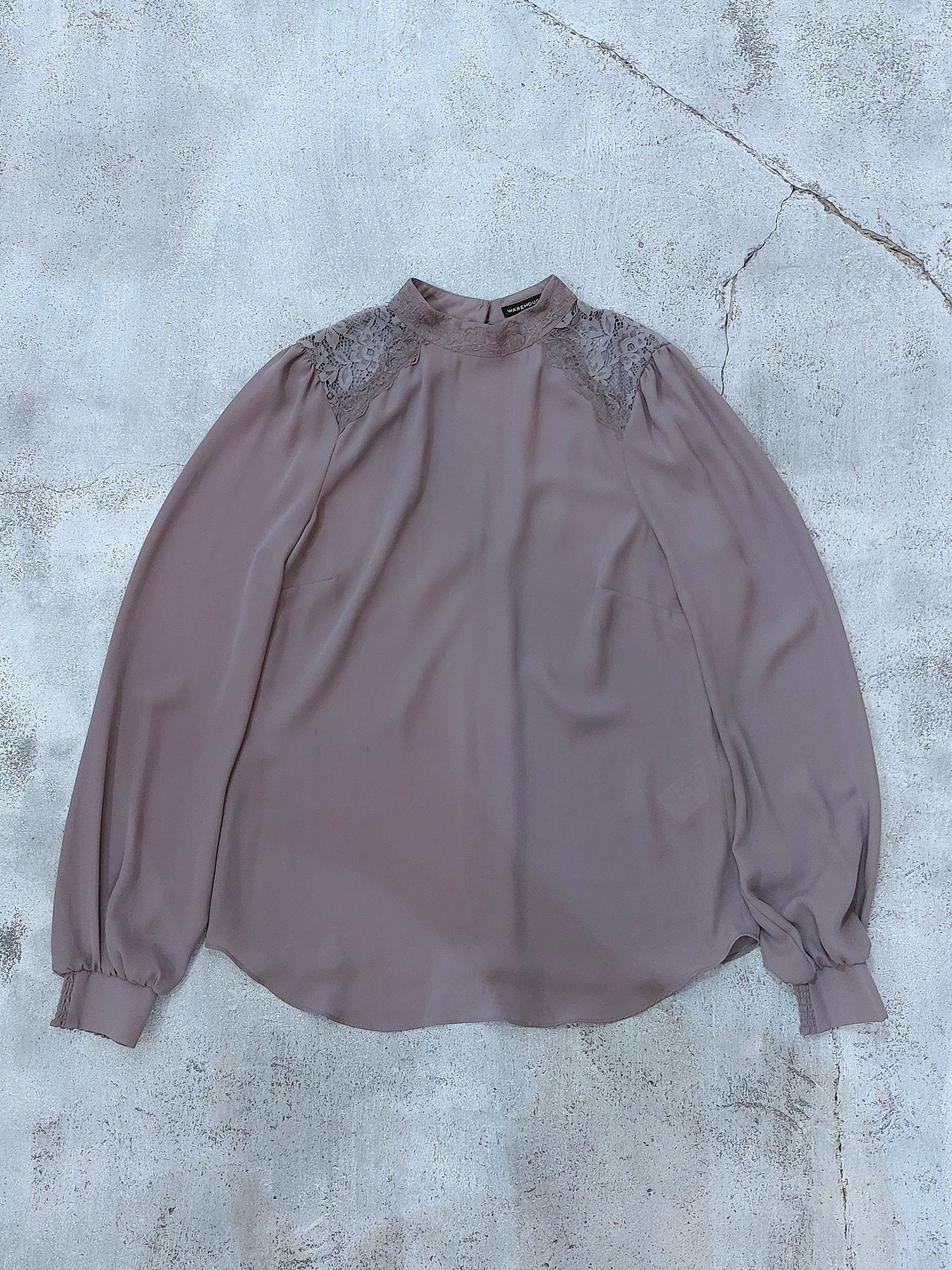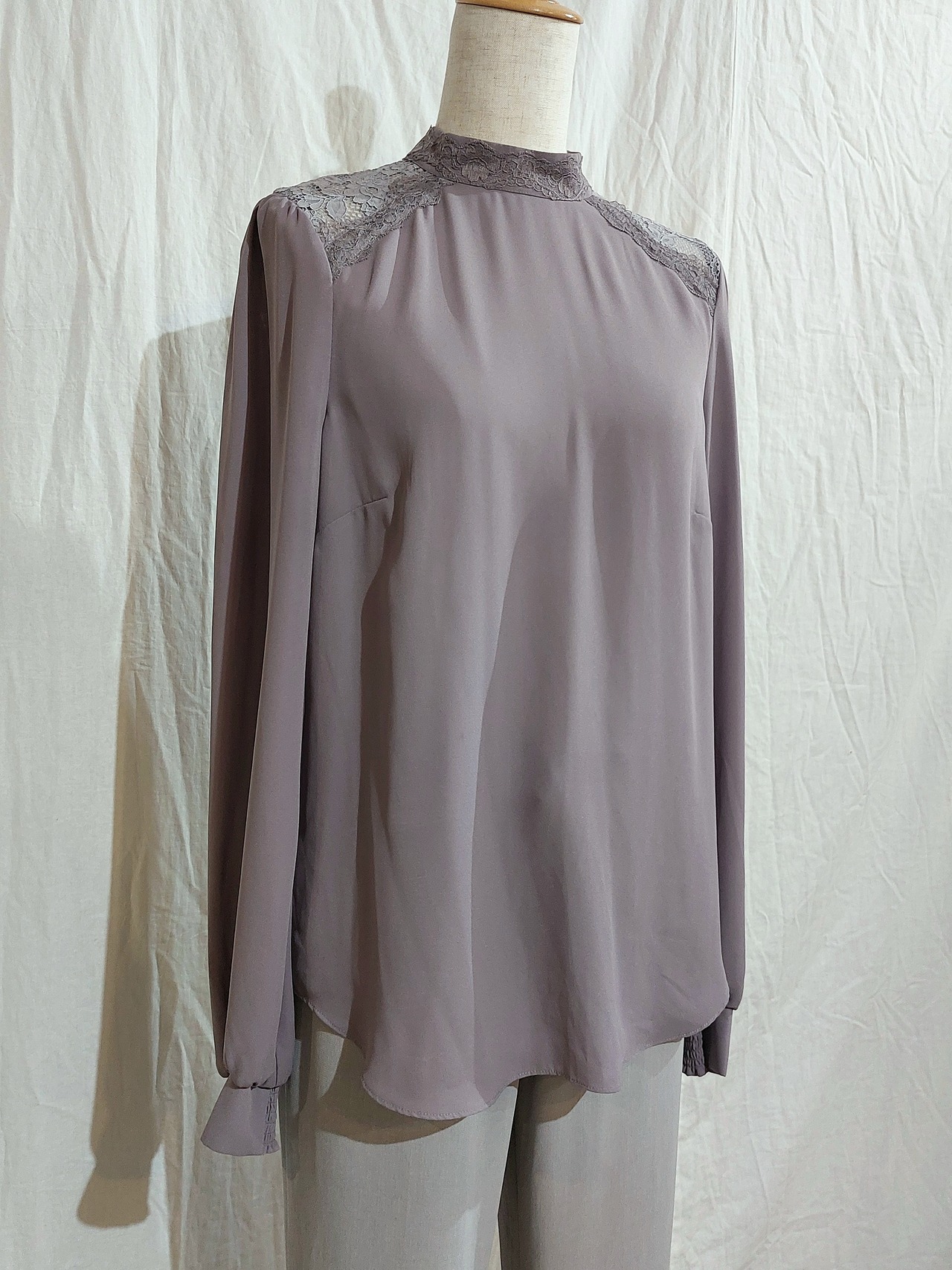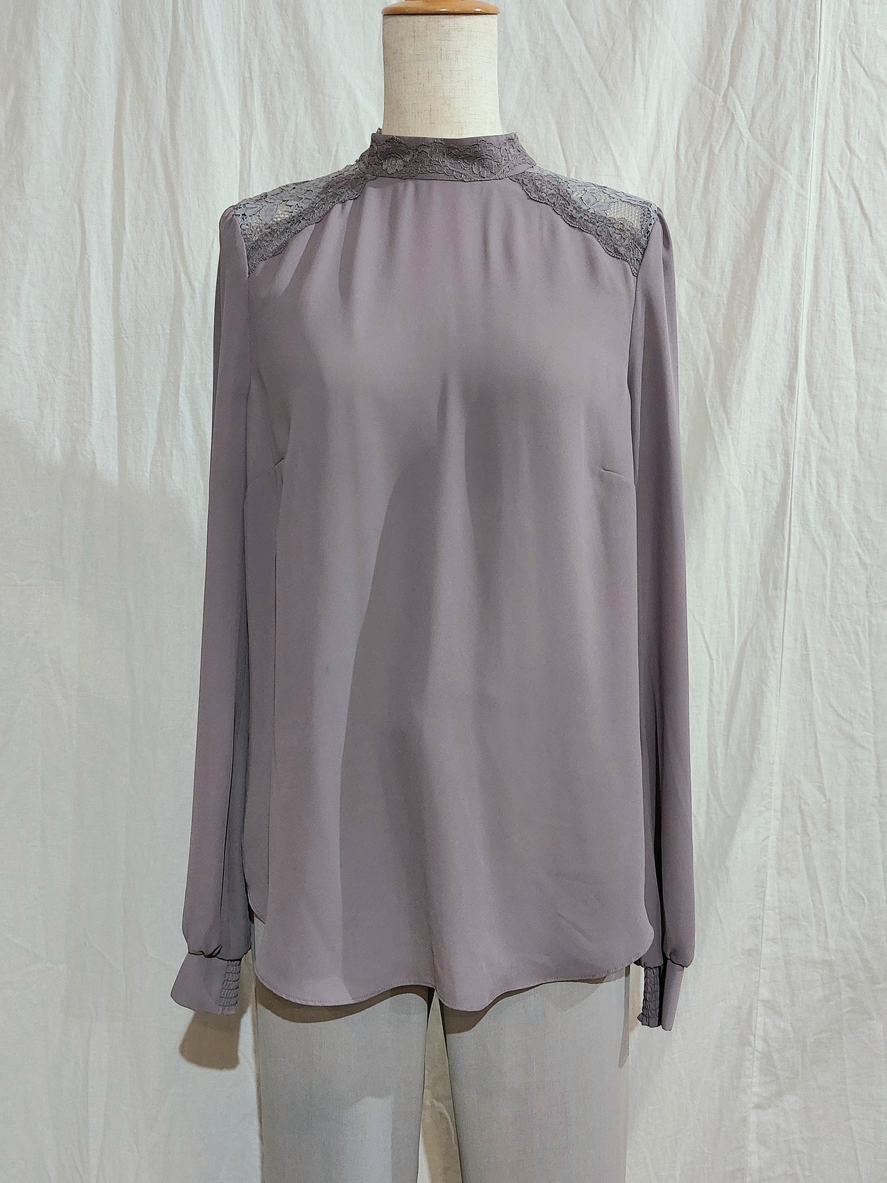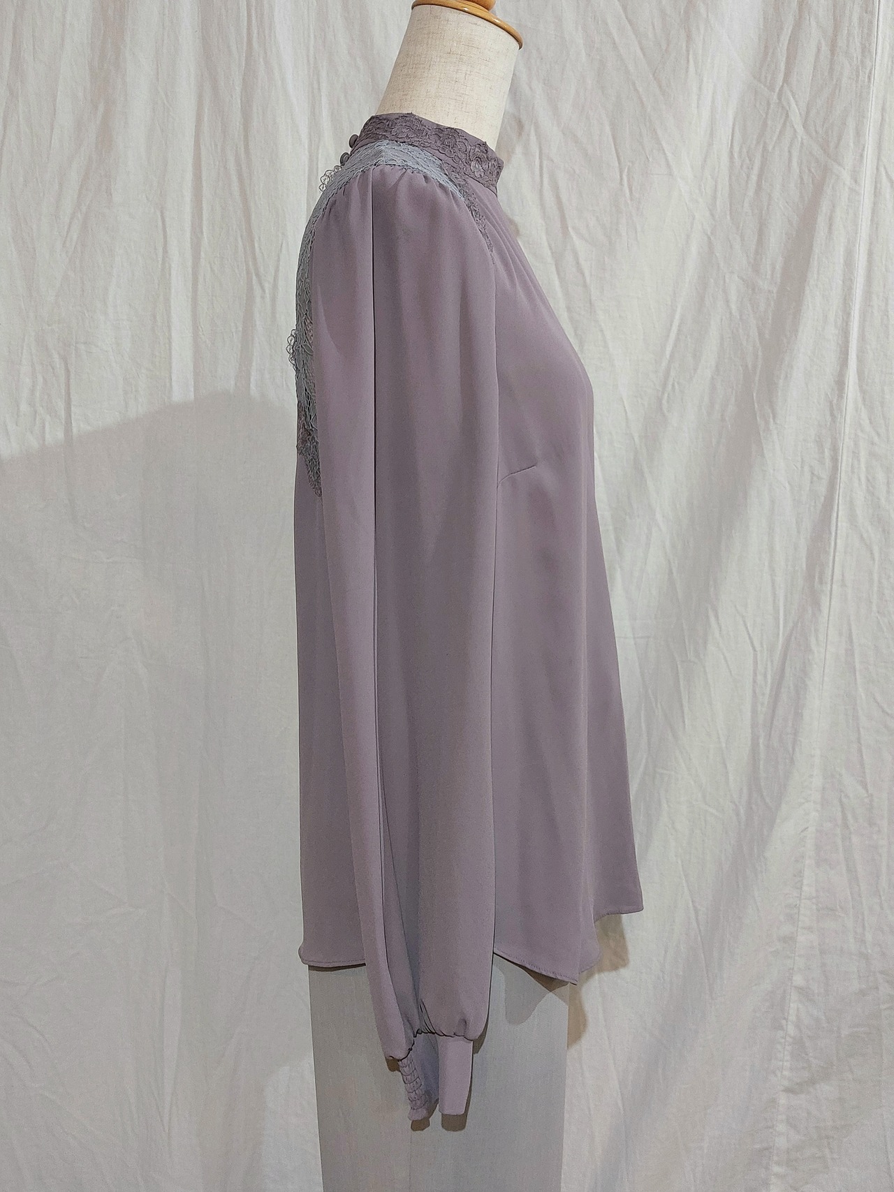 Lace switching stand collar blouse[m-408]レース切り替えスタンドカラーブラウス