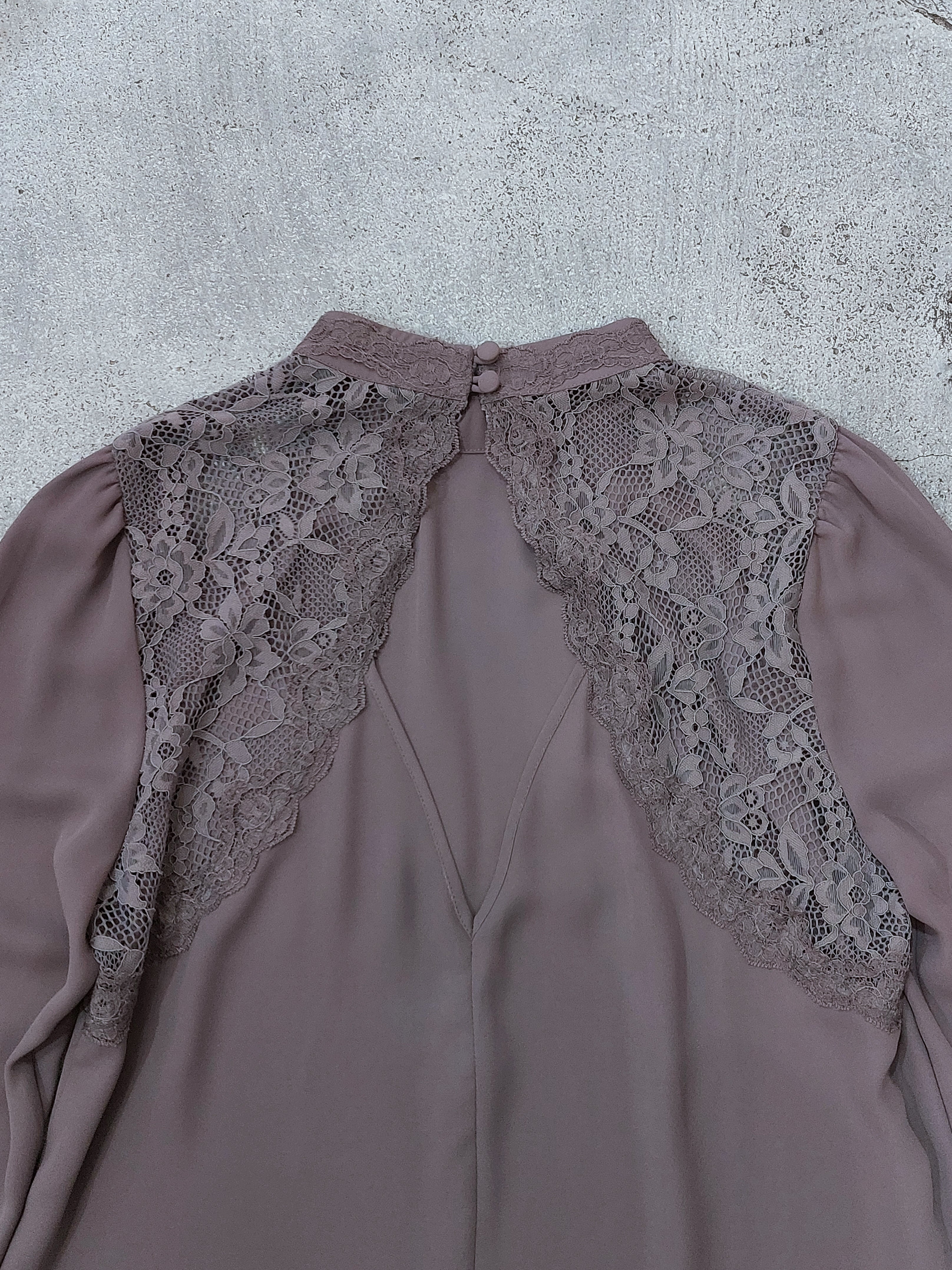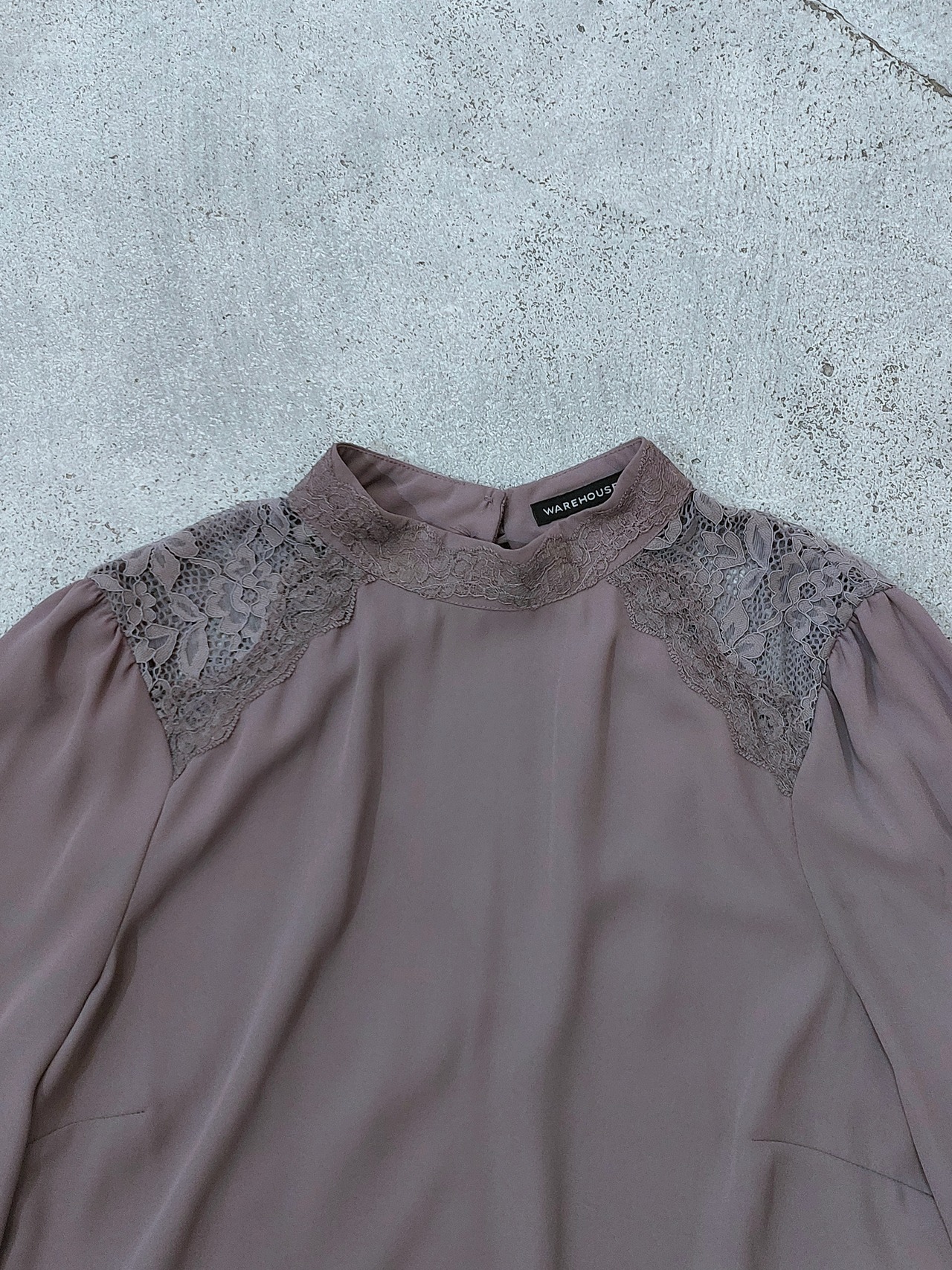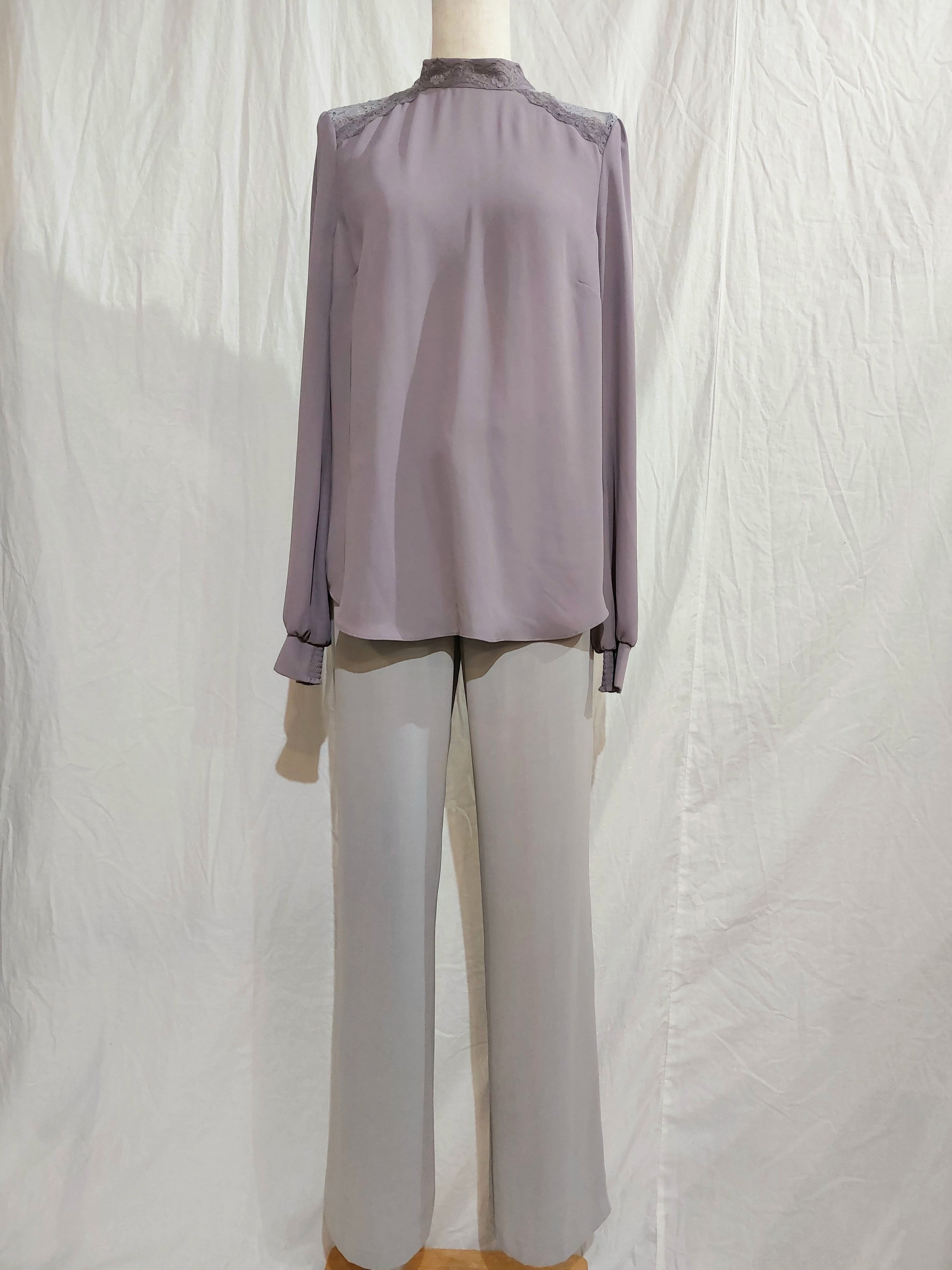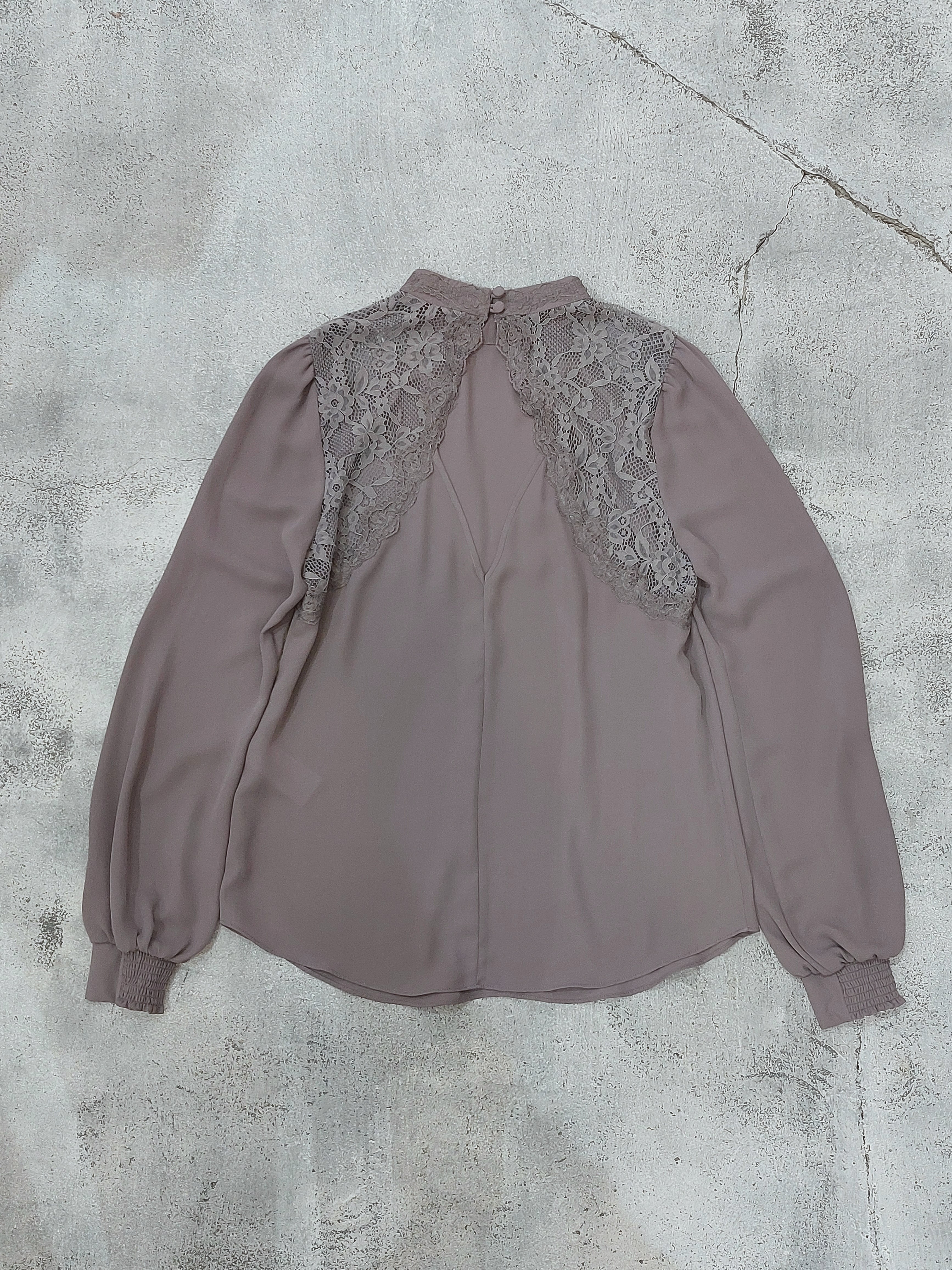 Lace switching stand collar blouse[m-408]レース切り替えスタンドカラーブラウス