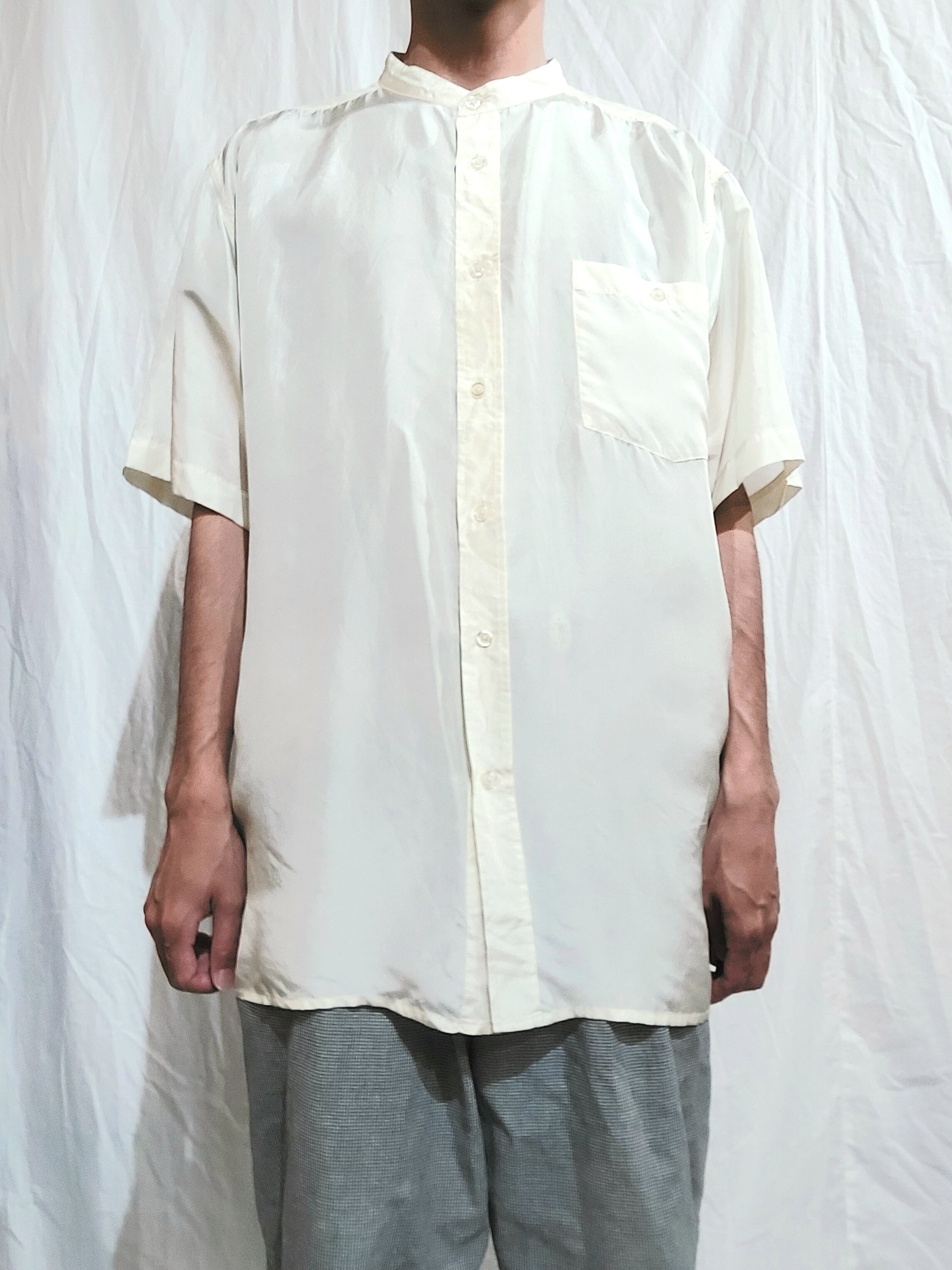 Stand collar silk shirt [fa-391] スタンドカラーシルクシャツ