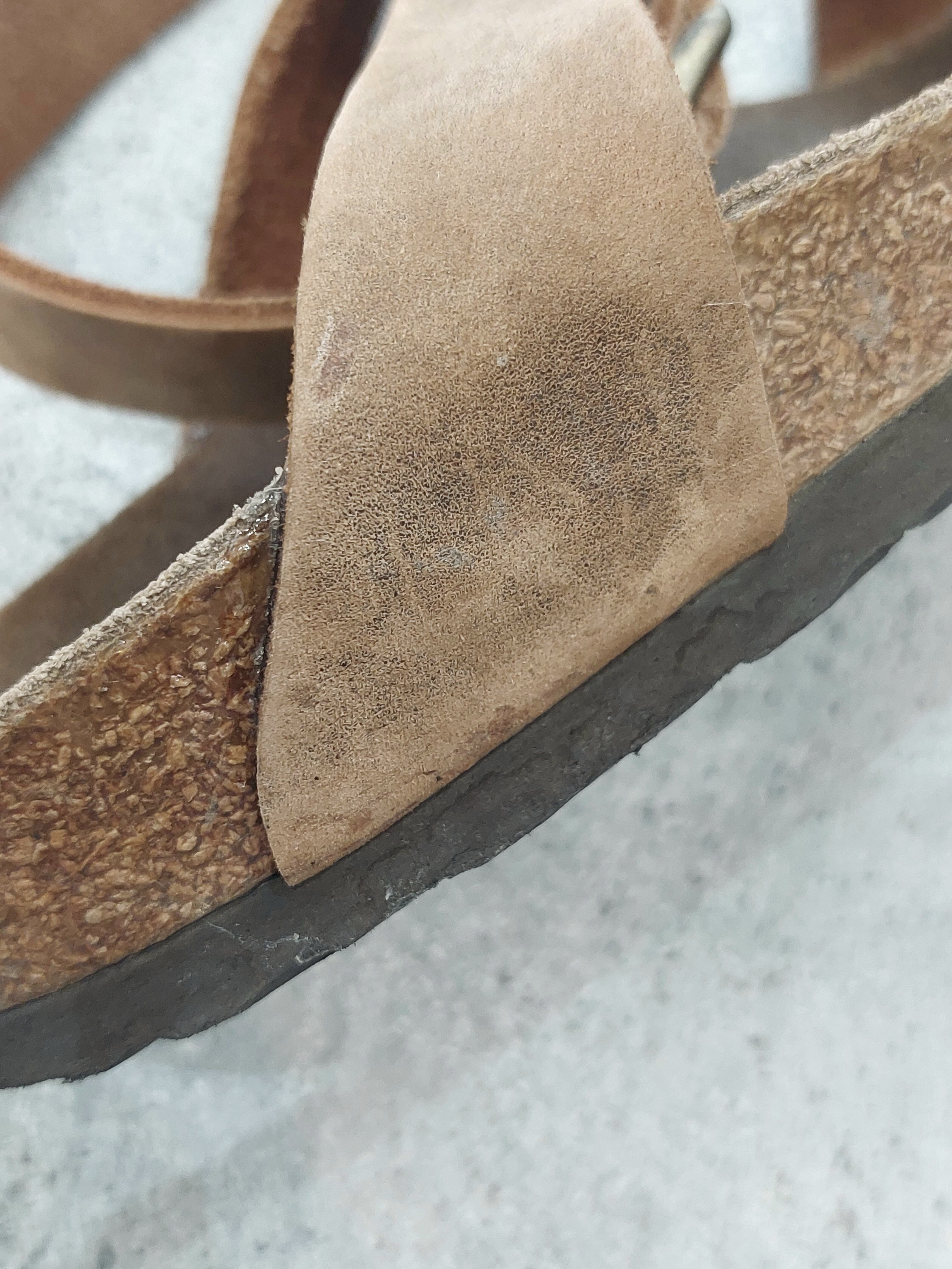状態:ヌバックレザーで、特有の色ムラがありたす。所々にスレ、シミががあります。ベルトの付け根をリペアしています。