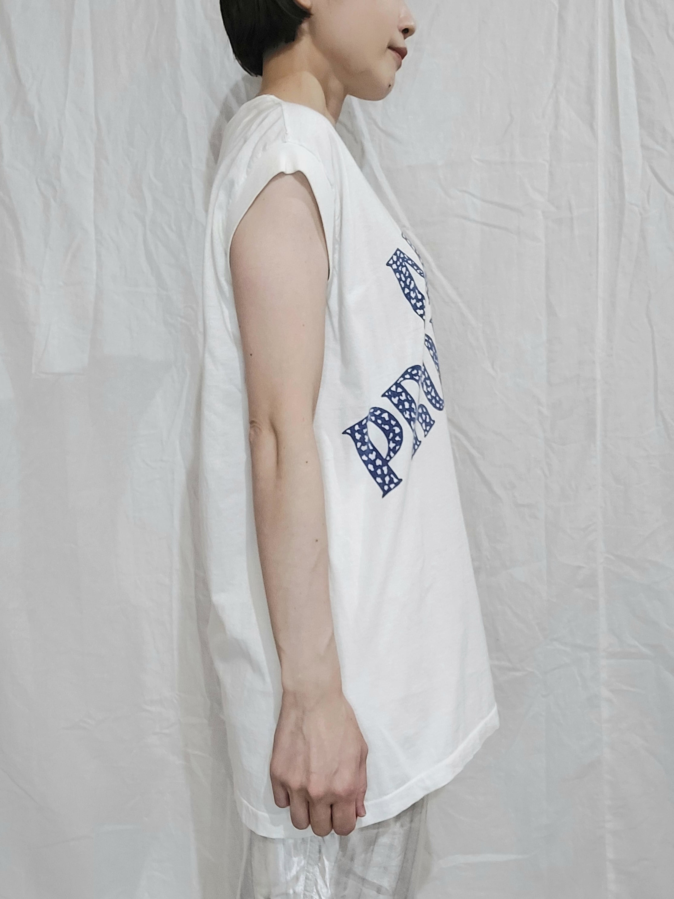 Vintage print sleeveless t-shirt / Made in Mauritius[e-78]モーリシャス製 ヴィンテージプリントノースリーブTシャツ