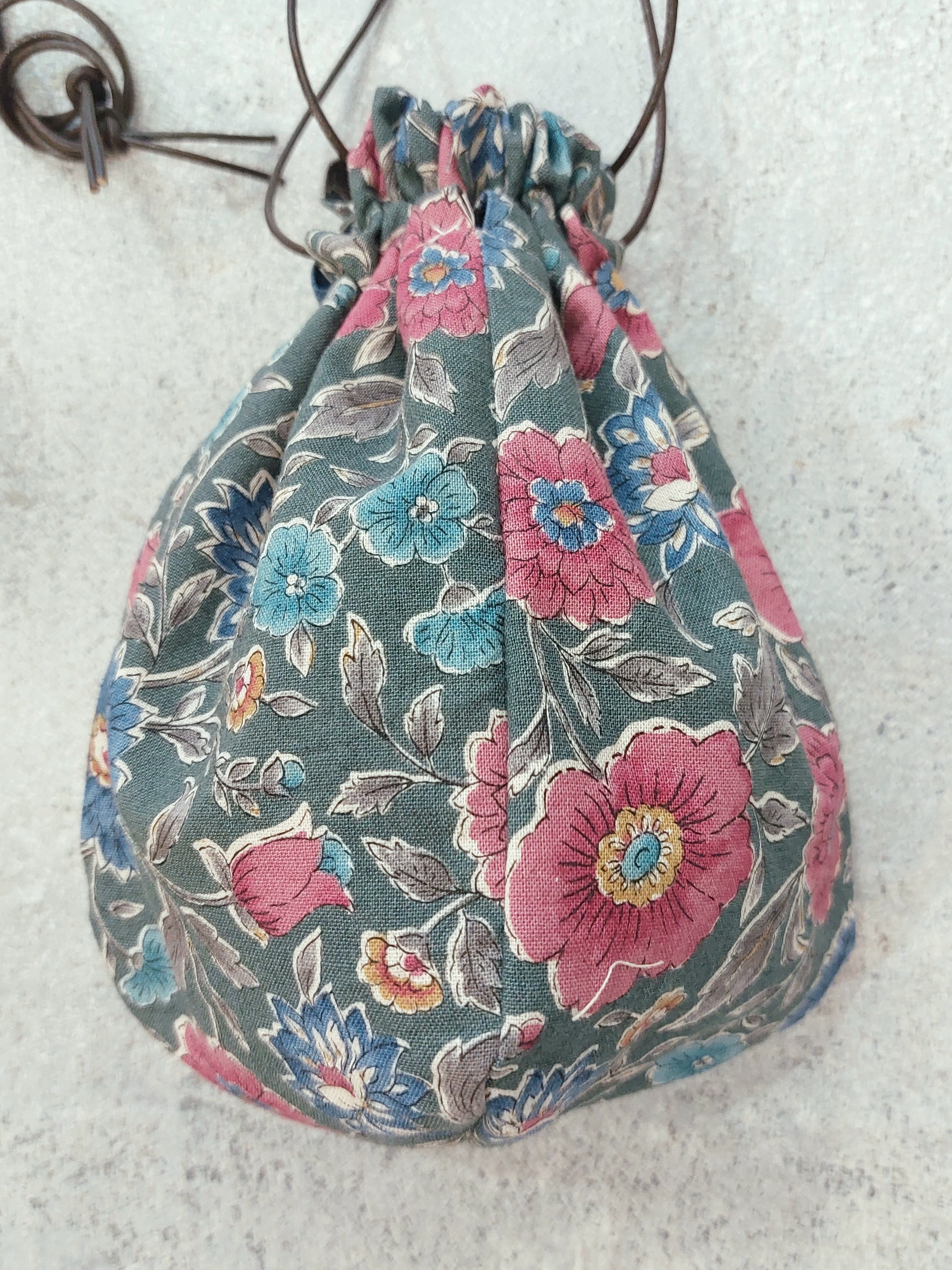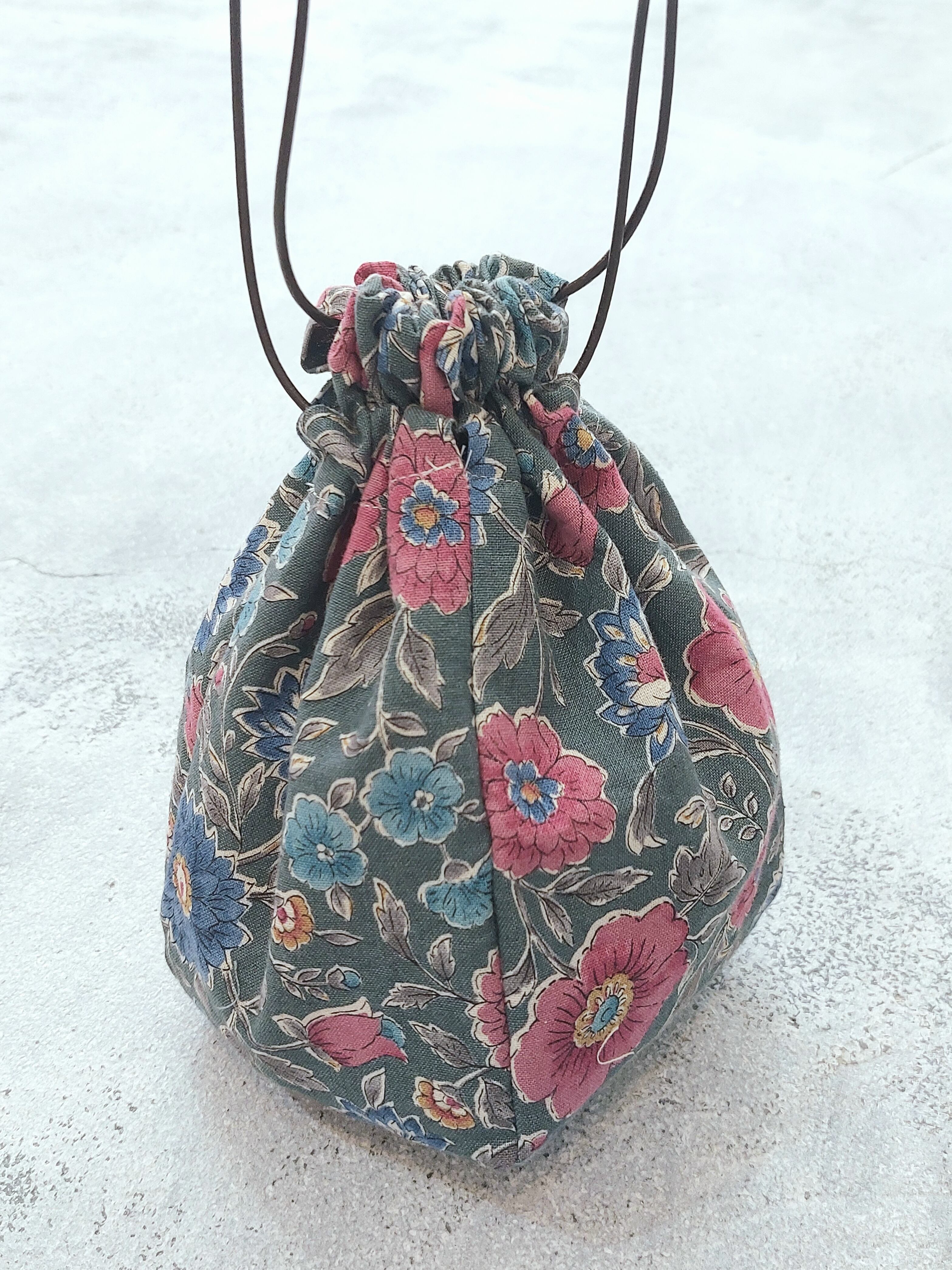 ハンドメイドの花柄巾着ショルダーバッグです。