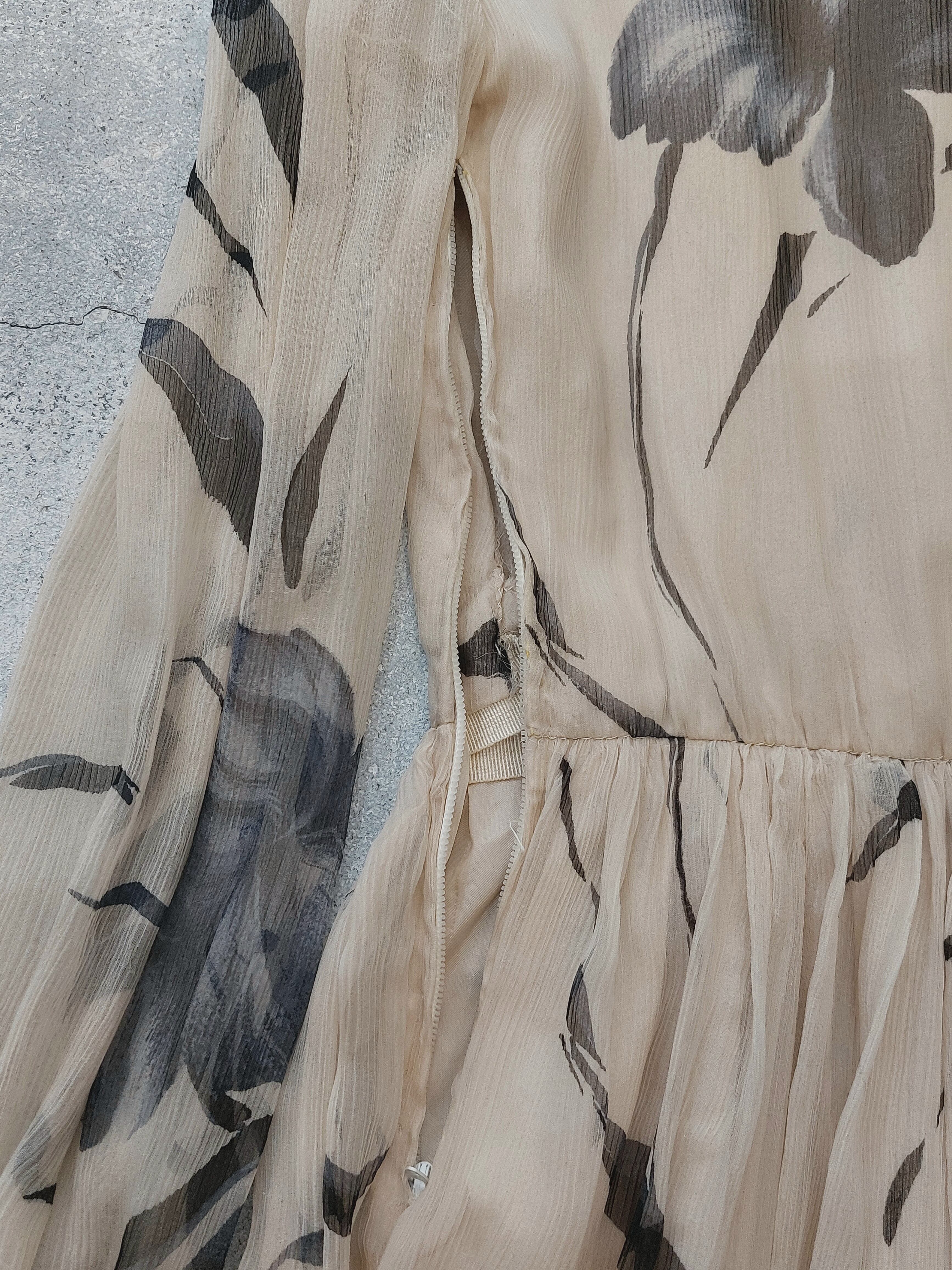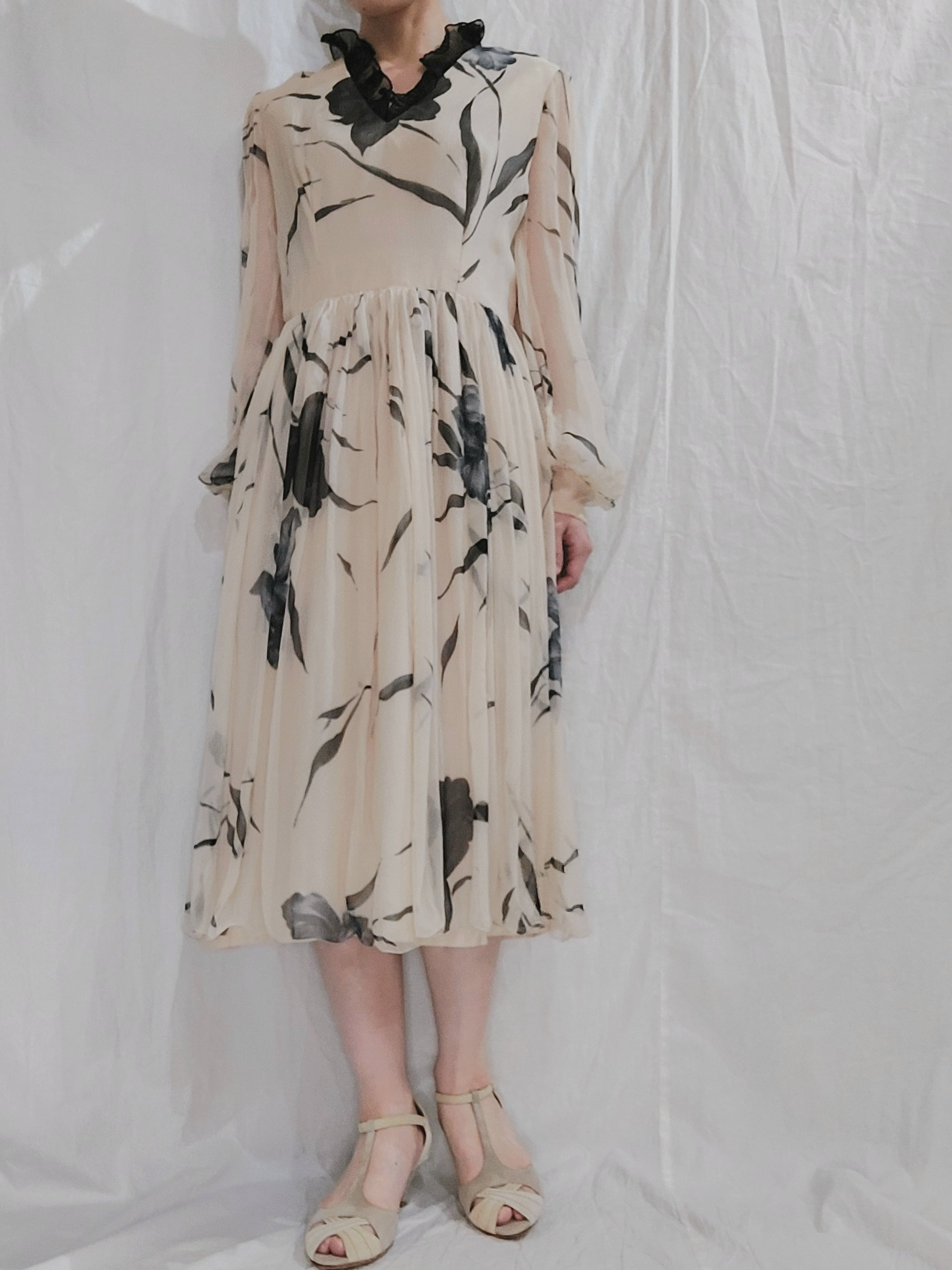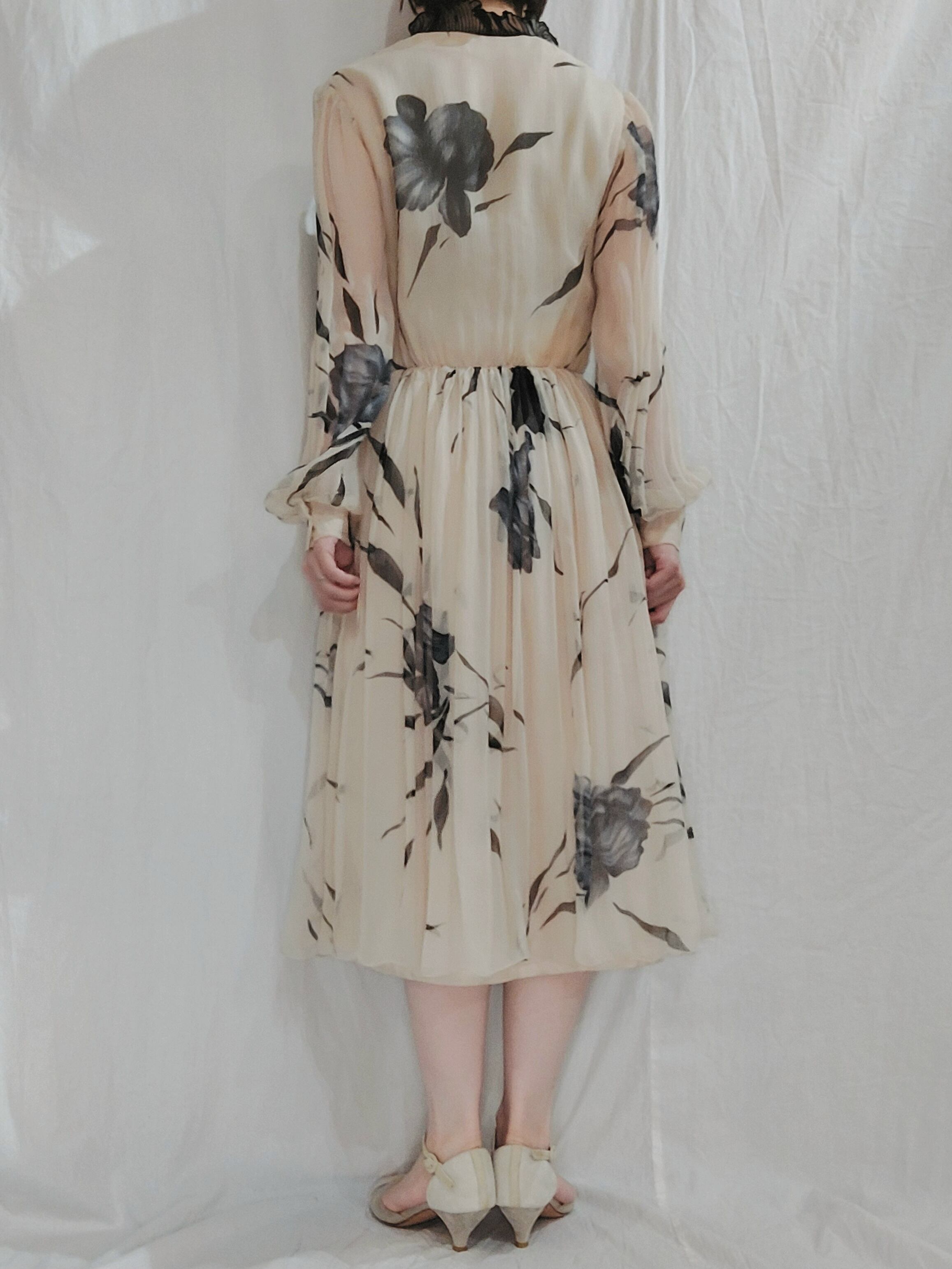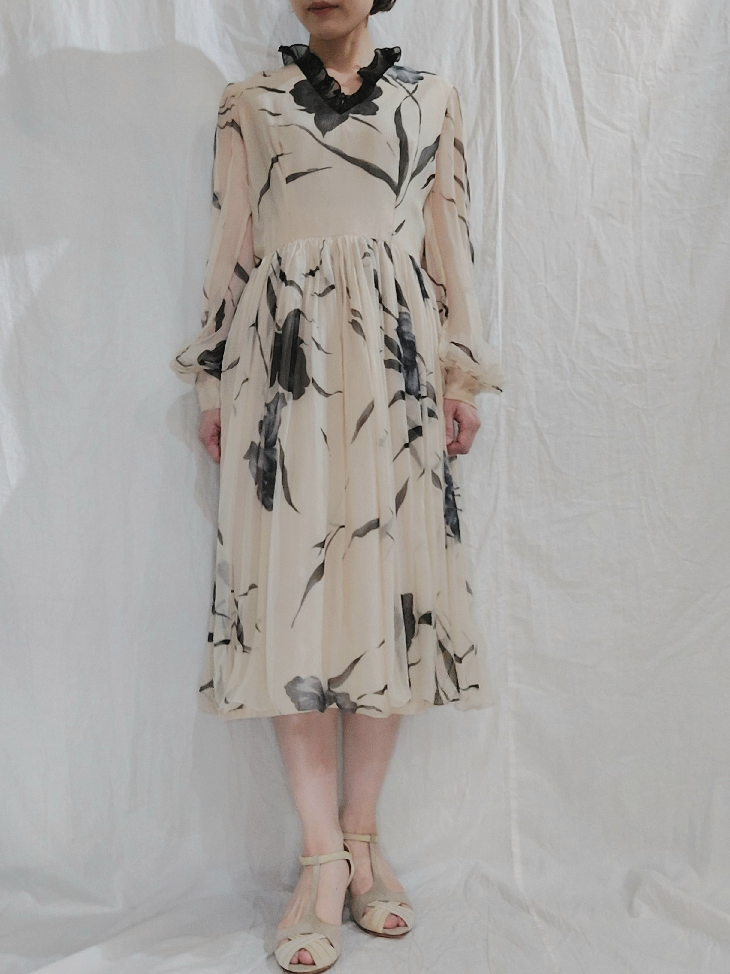 Vintage botanical pattern sheer dress[fa-479]ヴィンテージ ボタニカル柄シアードレス