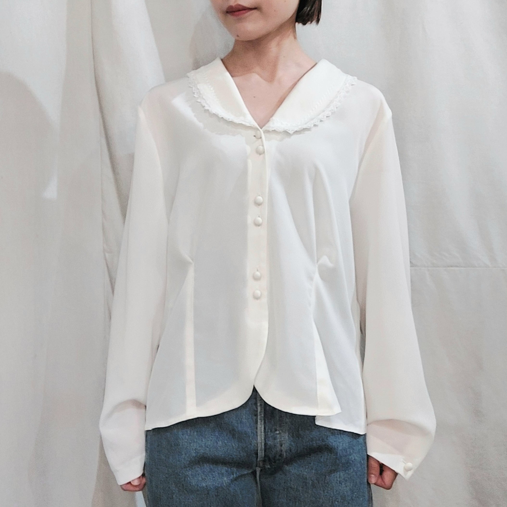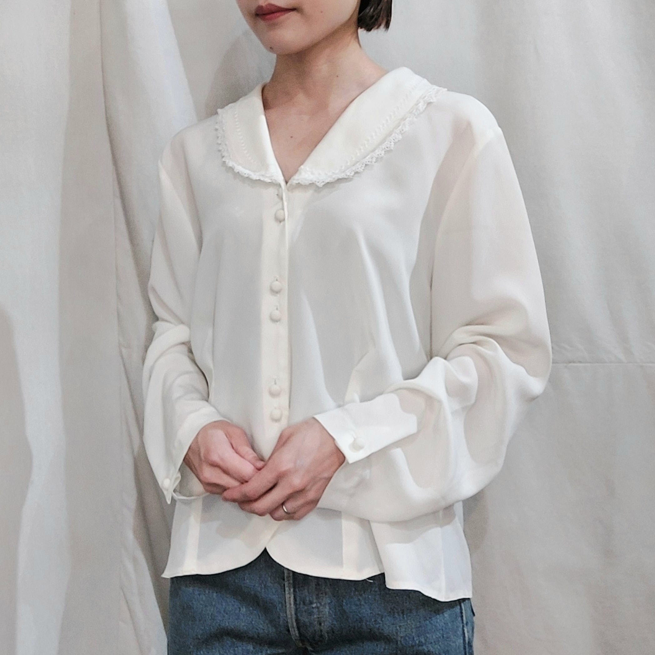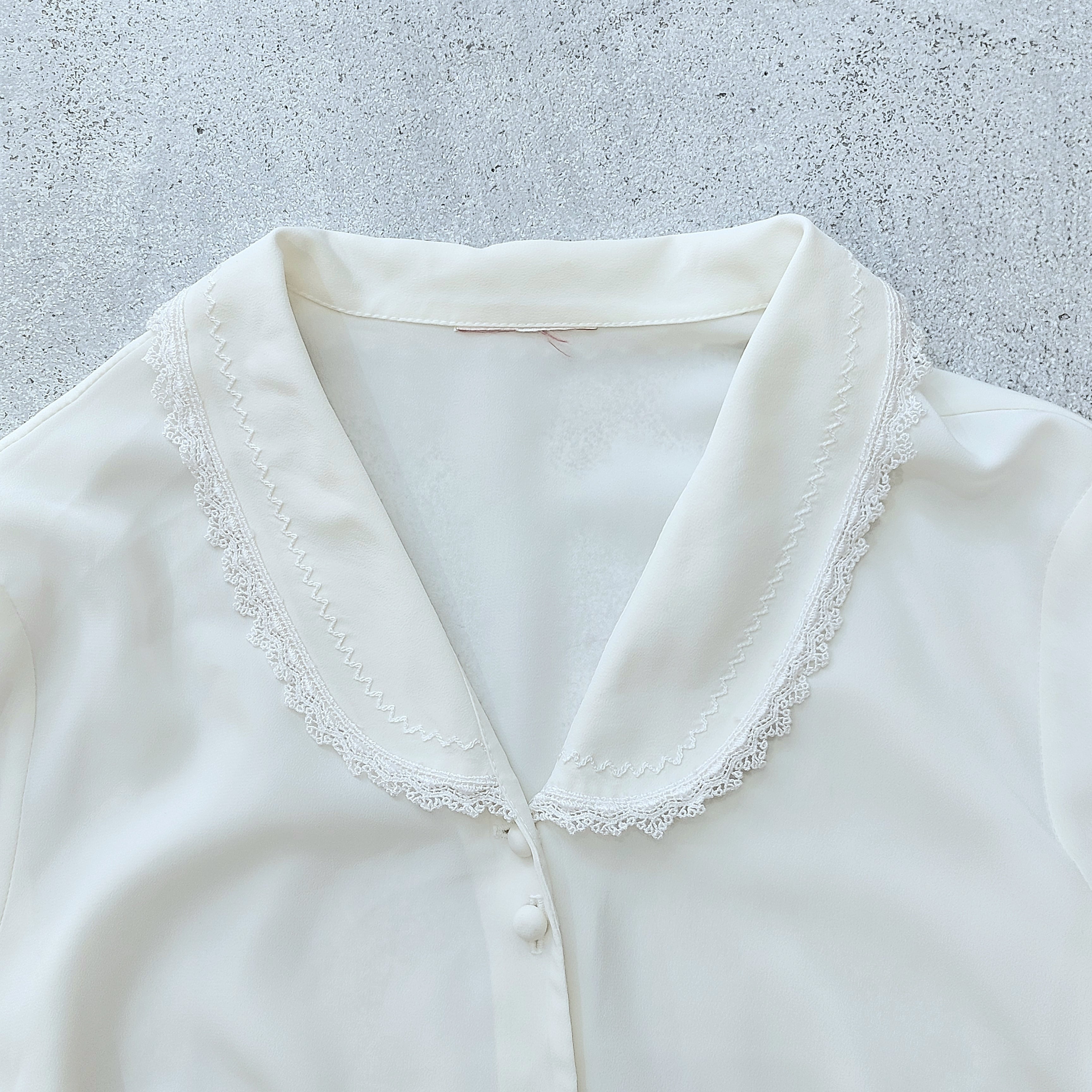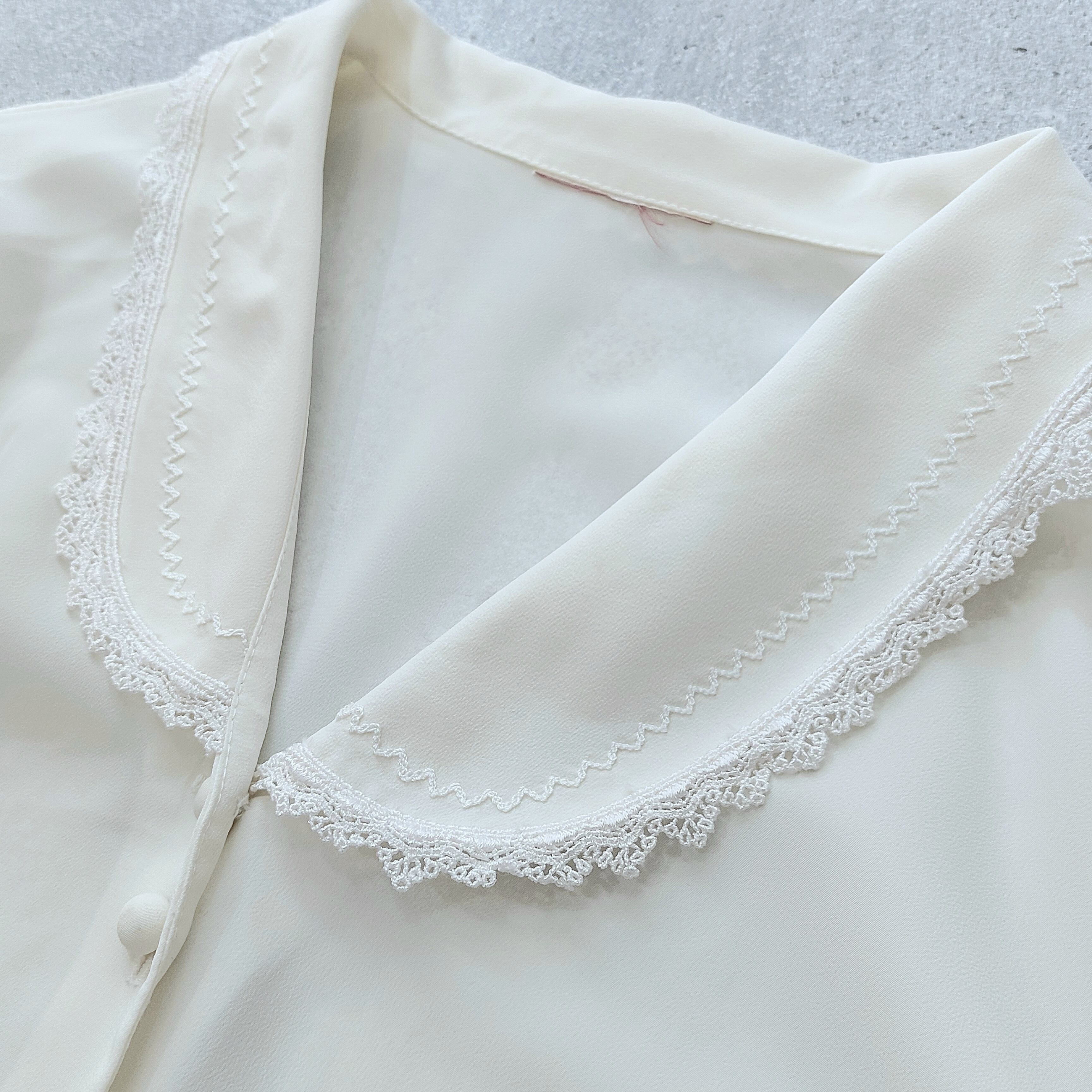 レースの縁取りが可愛らしい丸襟ブラウスです。