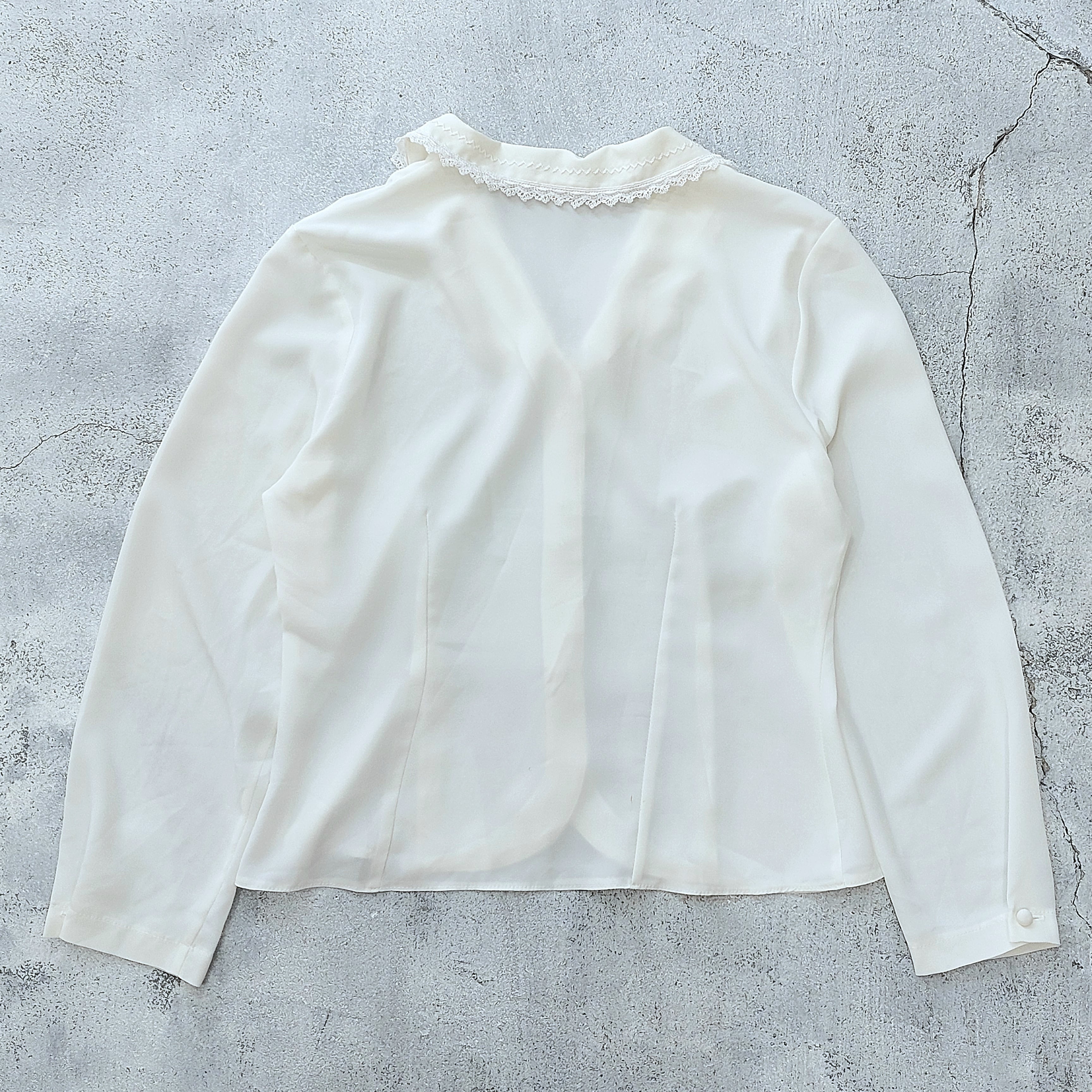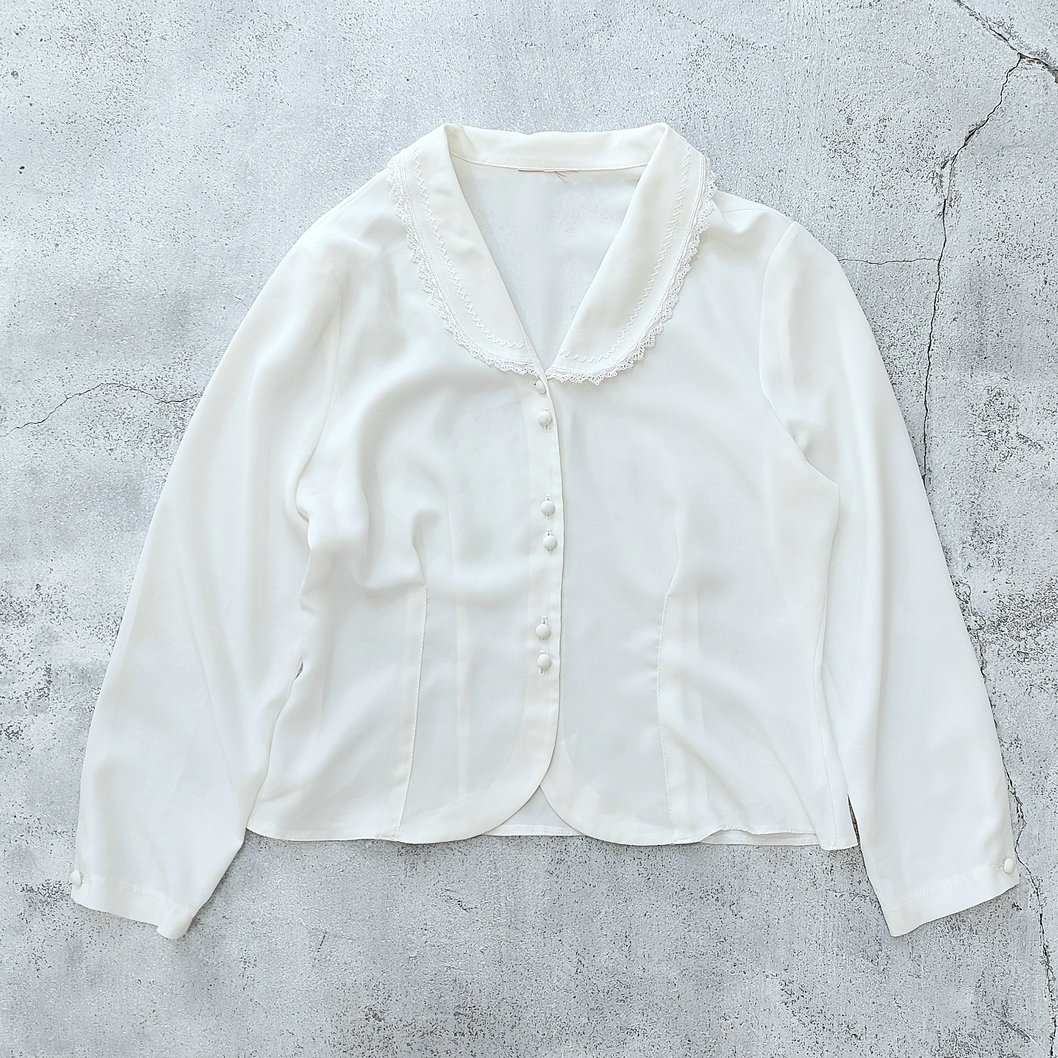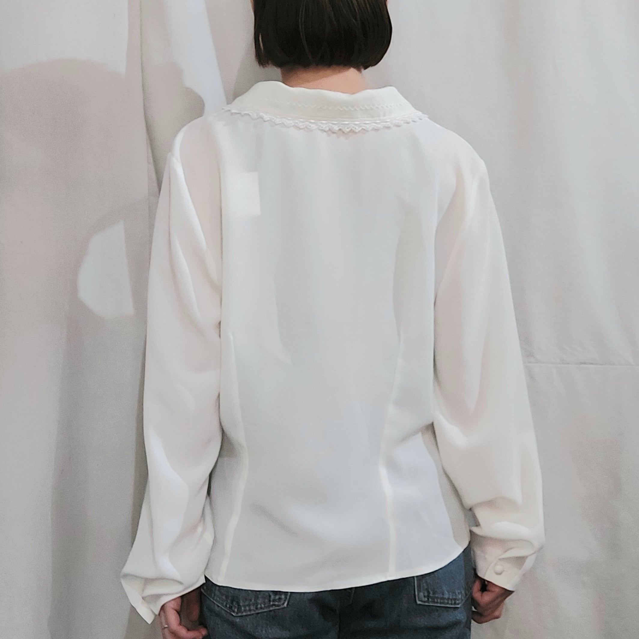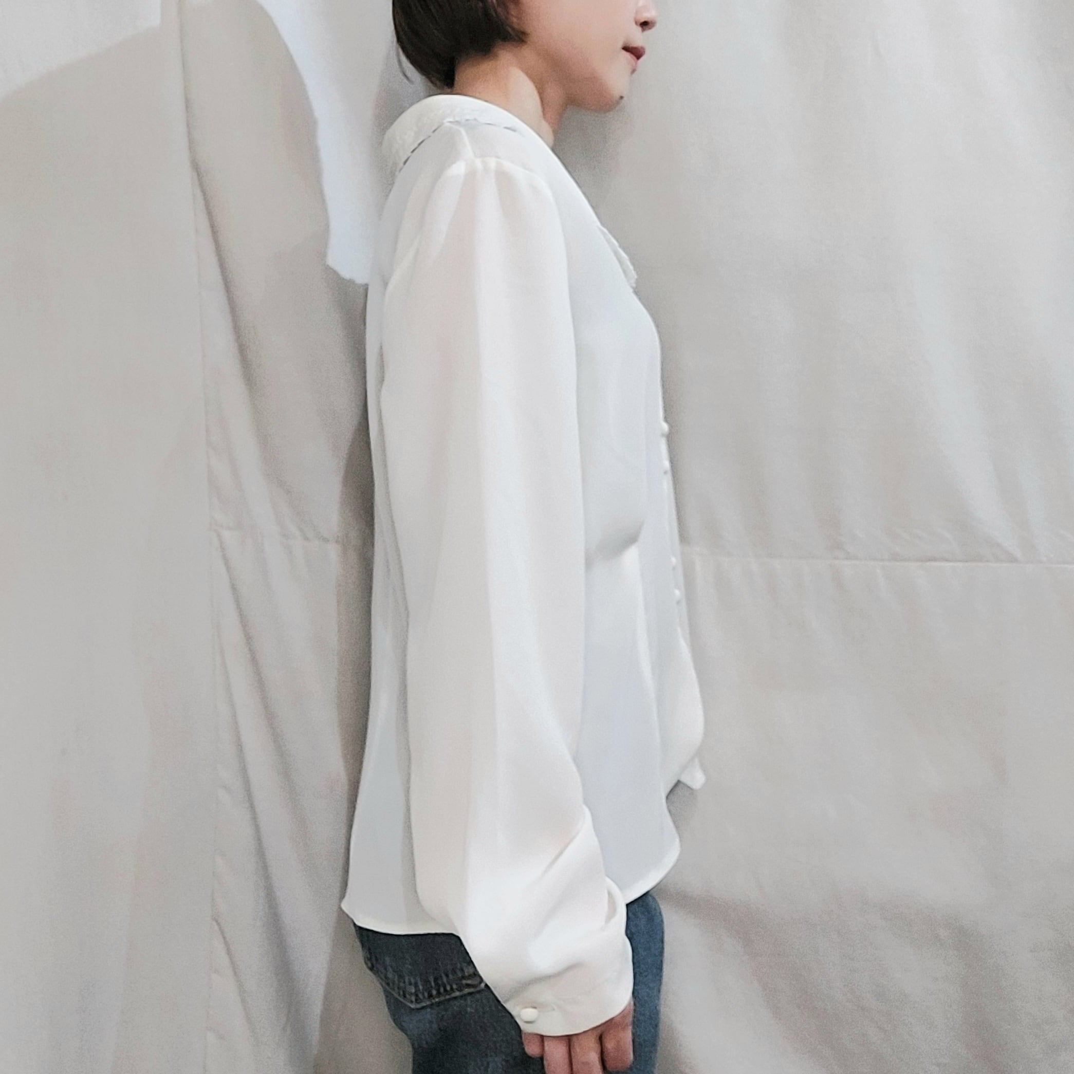 レースの縁取りが可愛らしい丸襟ブラウスです。