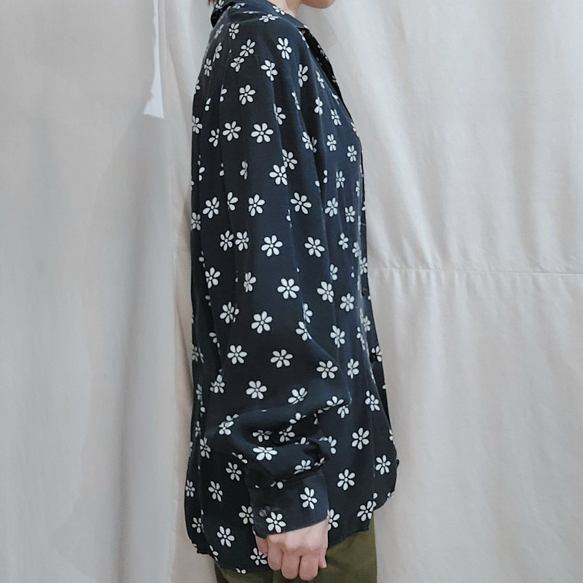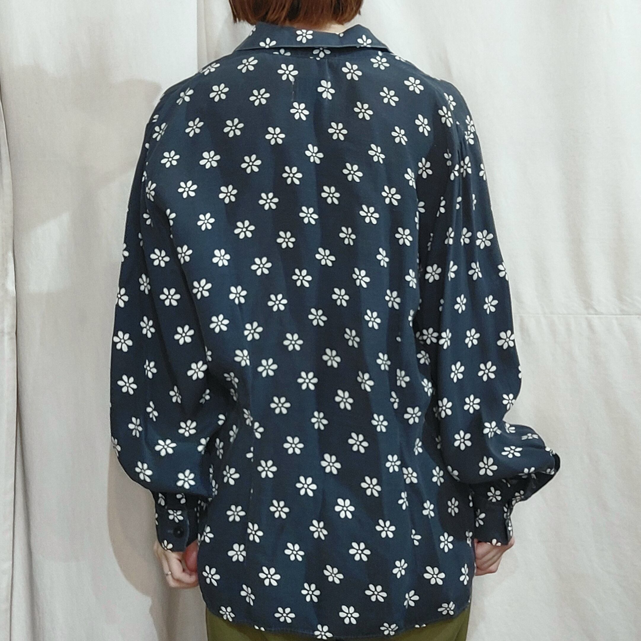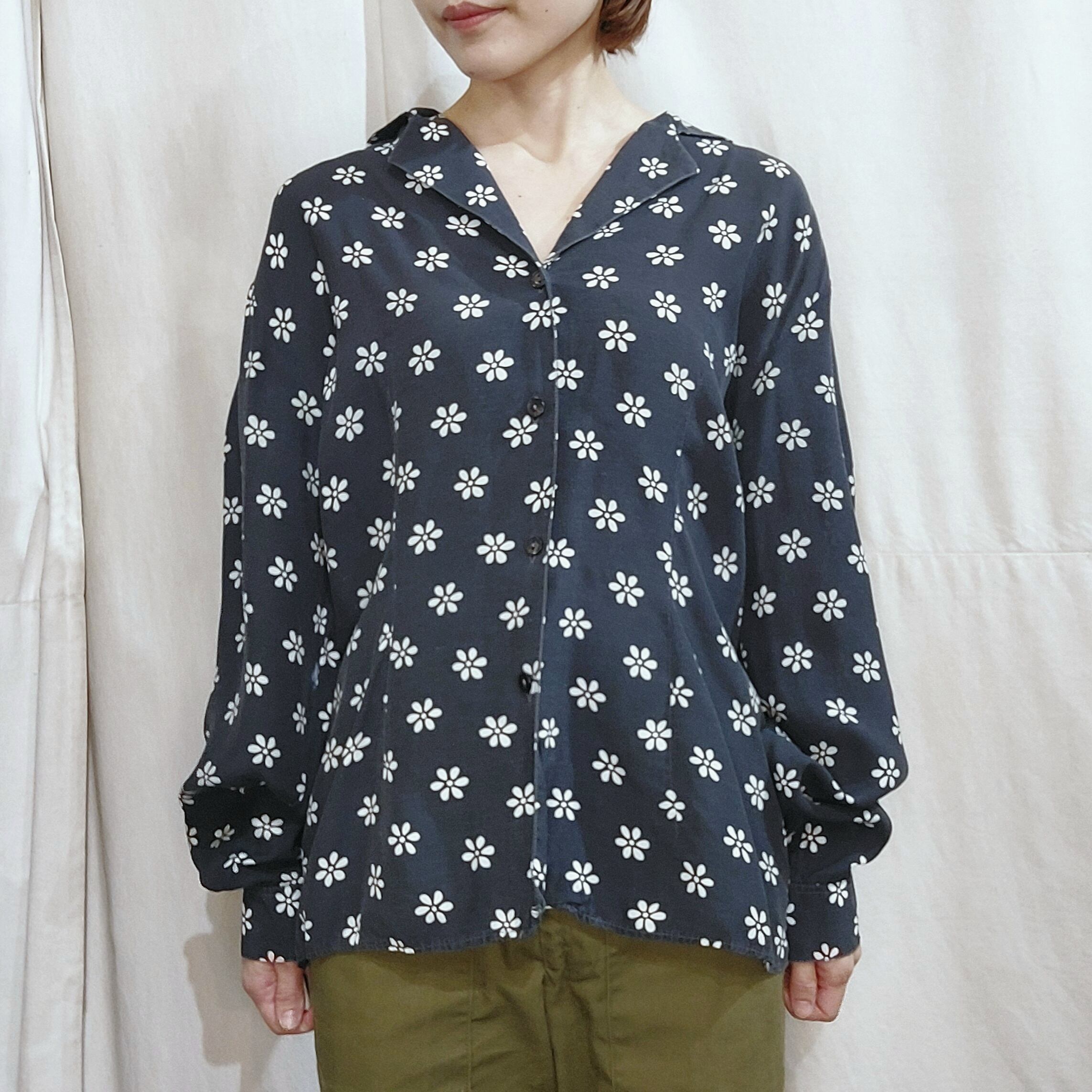 BENETTON Frower pattern open collar shirt / Made in Italy[fa-549]