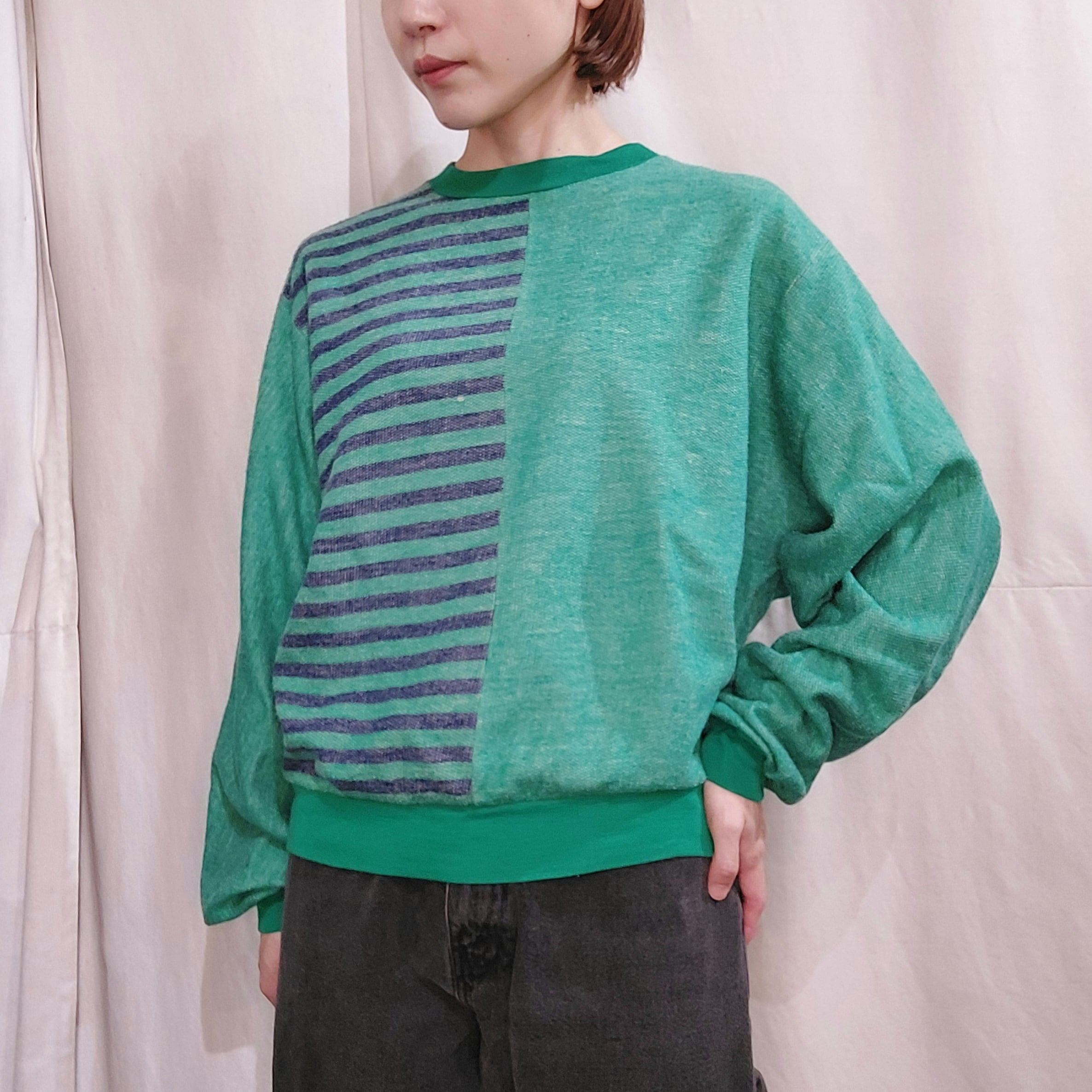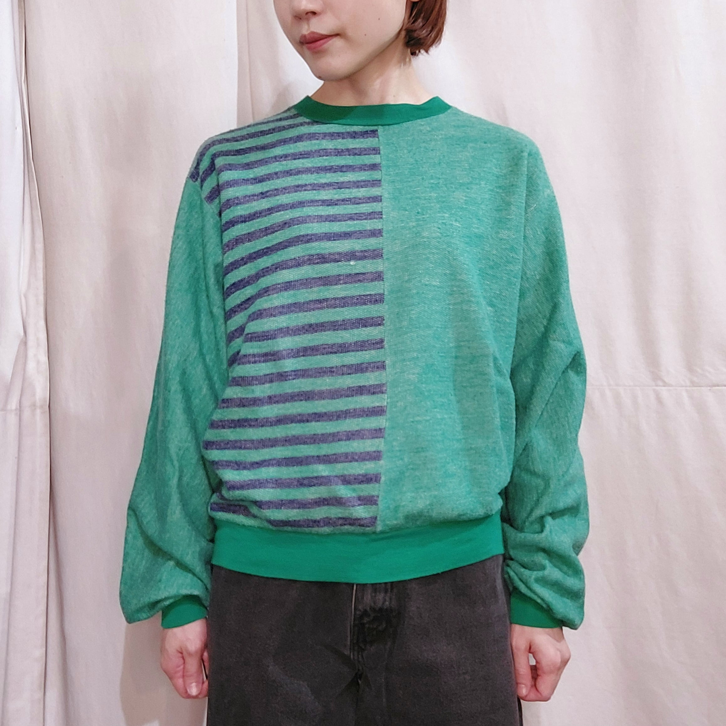 Border switching sweatshirt / Made in Italy[3248]イタリア製ボーダー切り替えスウェット