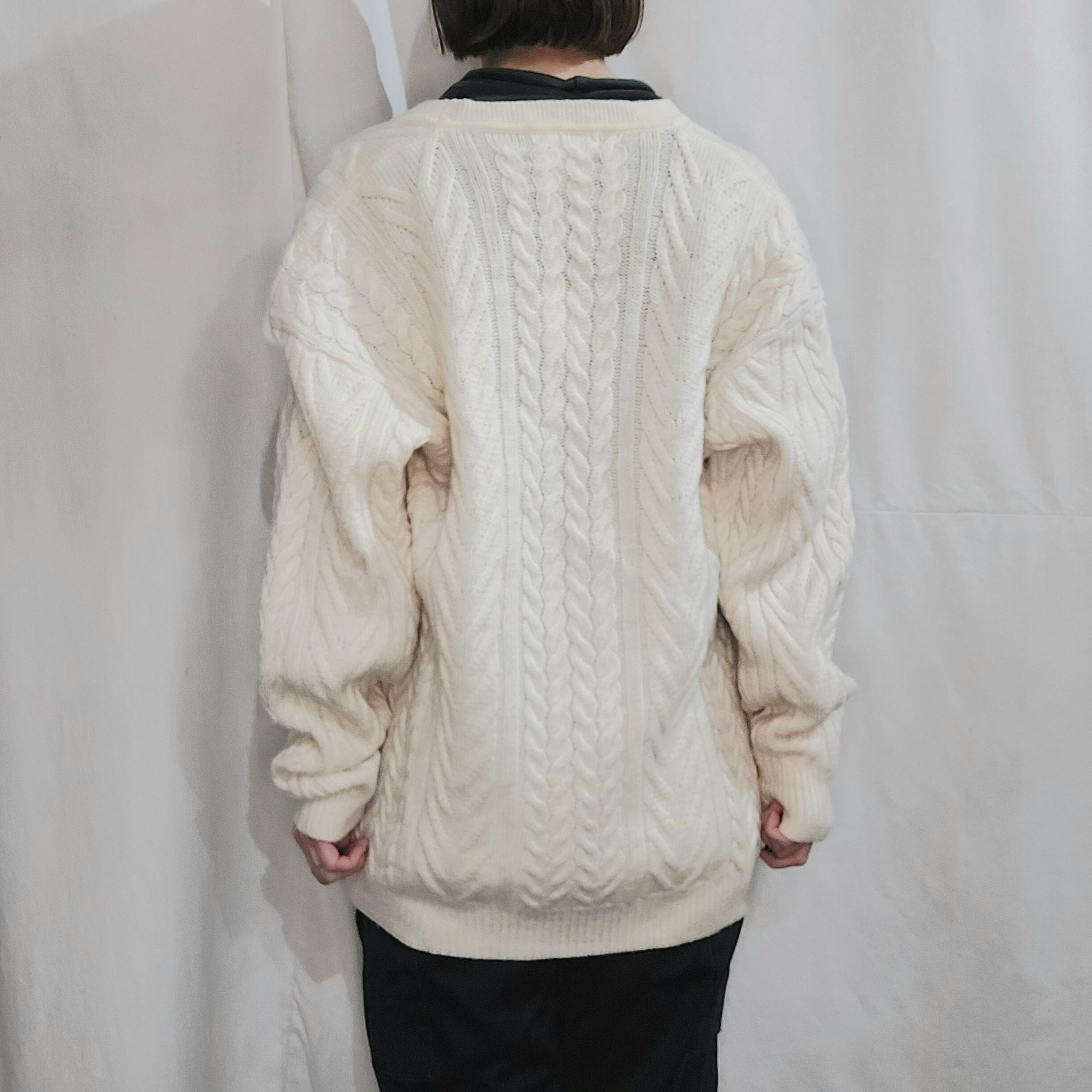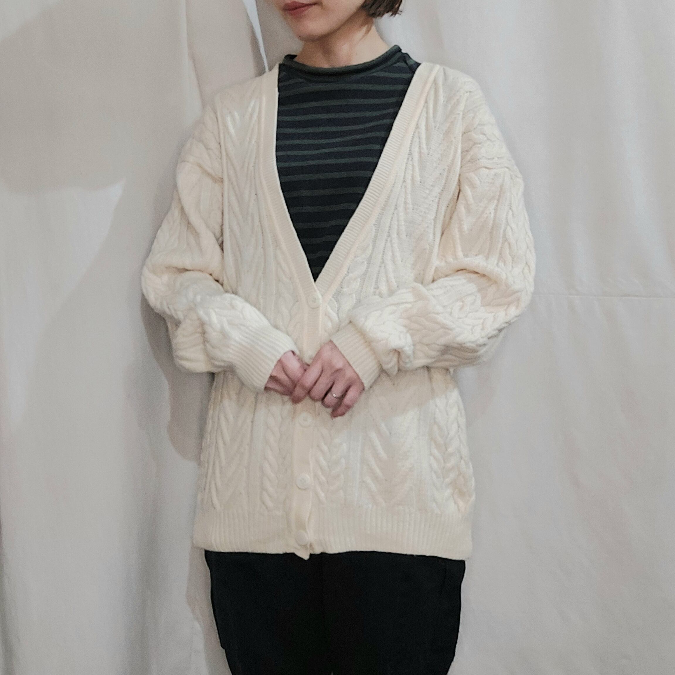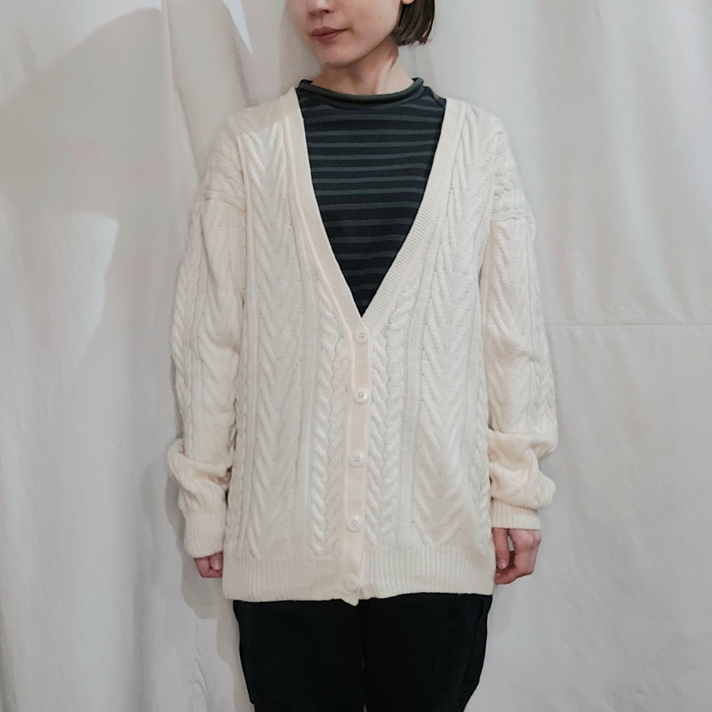 ケーブル編みウールニットカーディガンです。