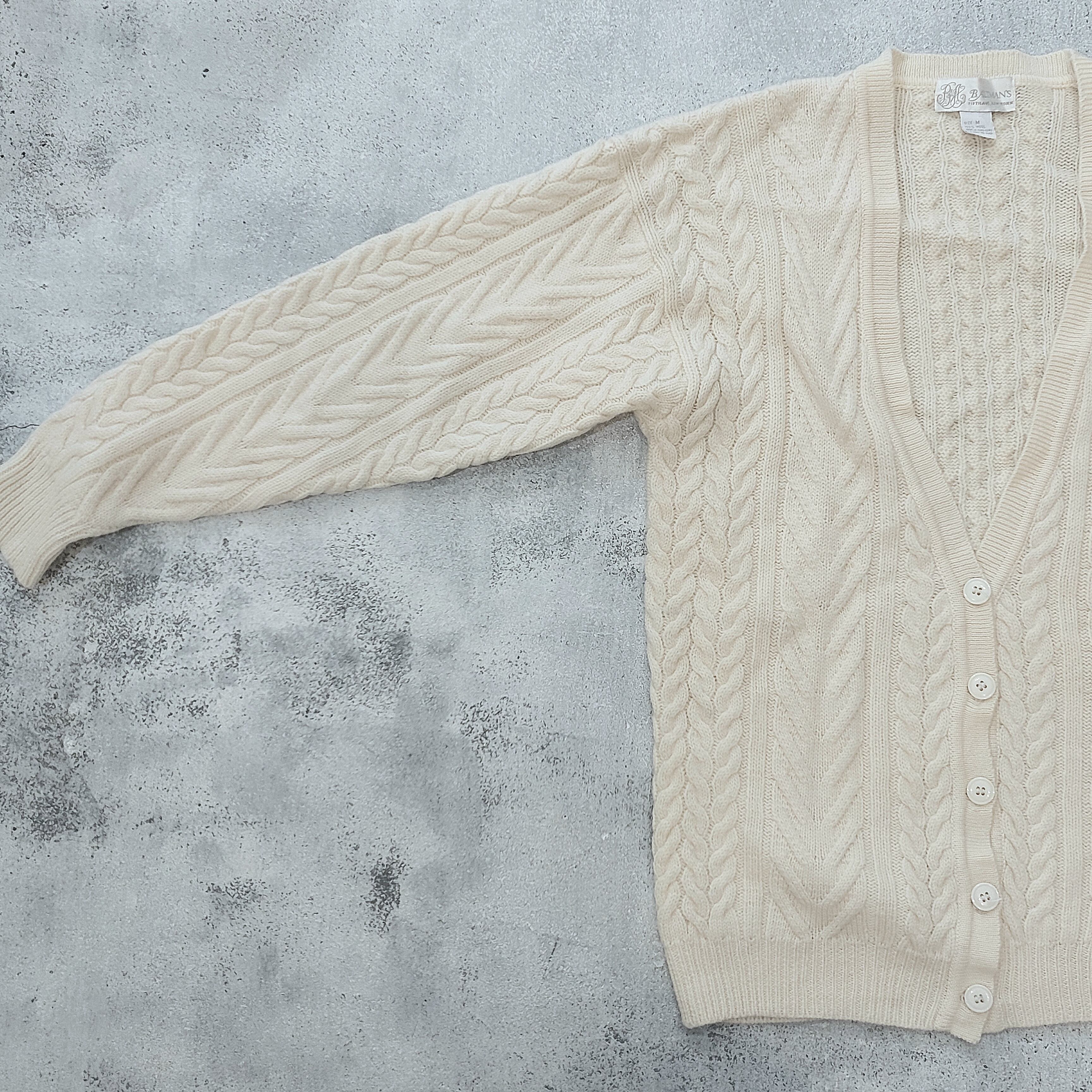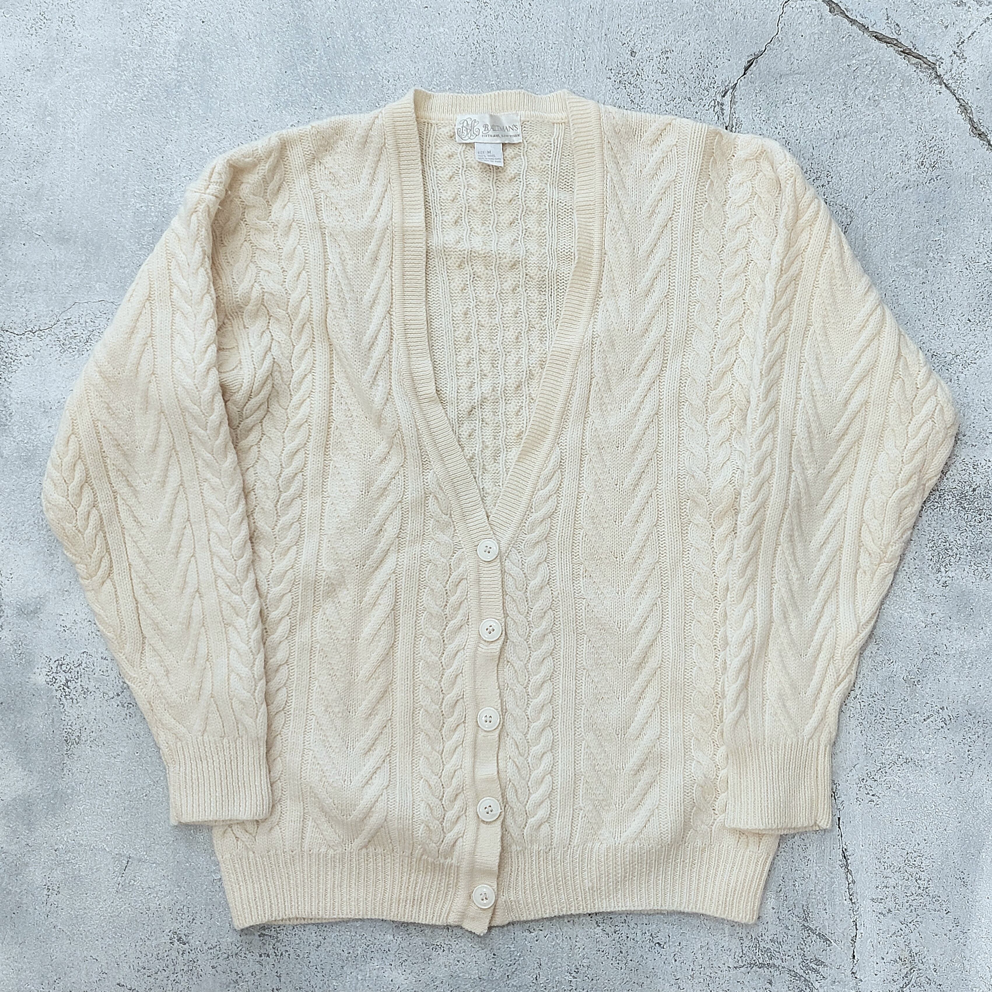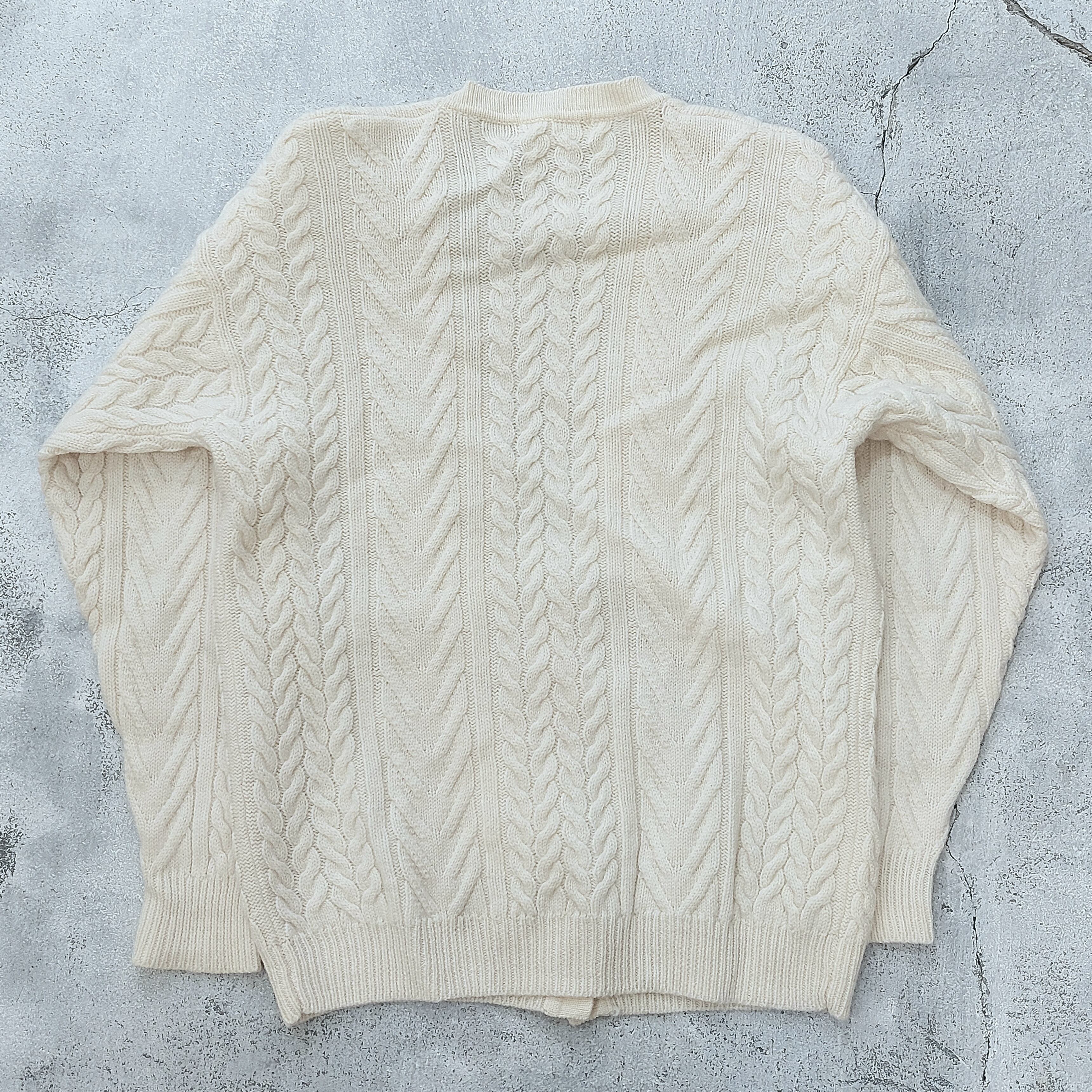 ケーブル編みウールニットカーディガンです。