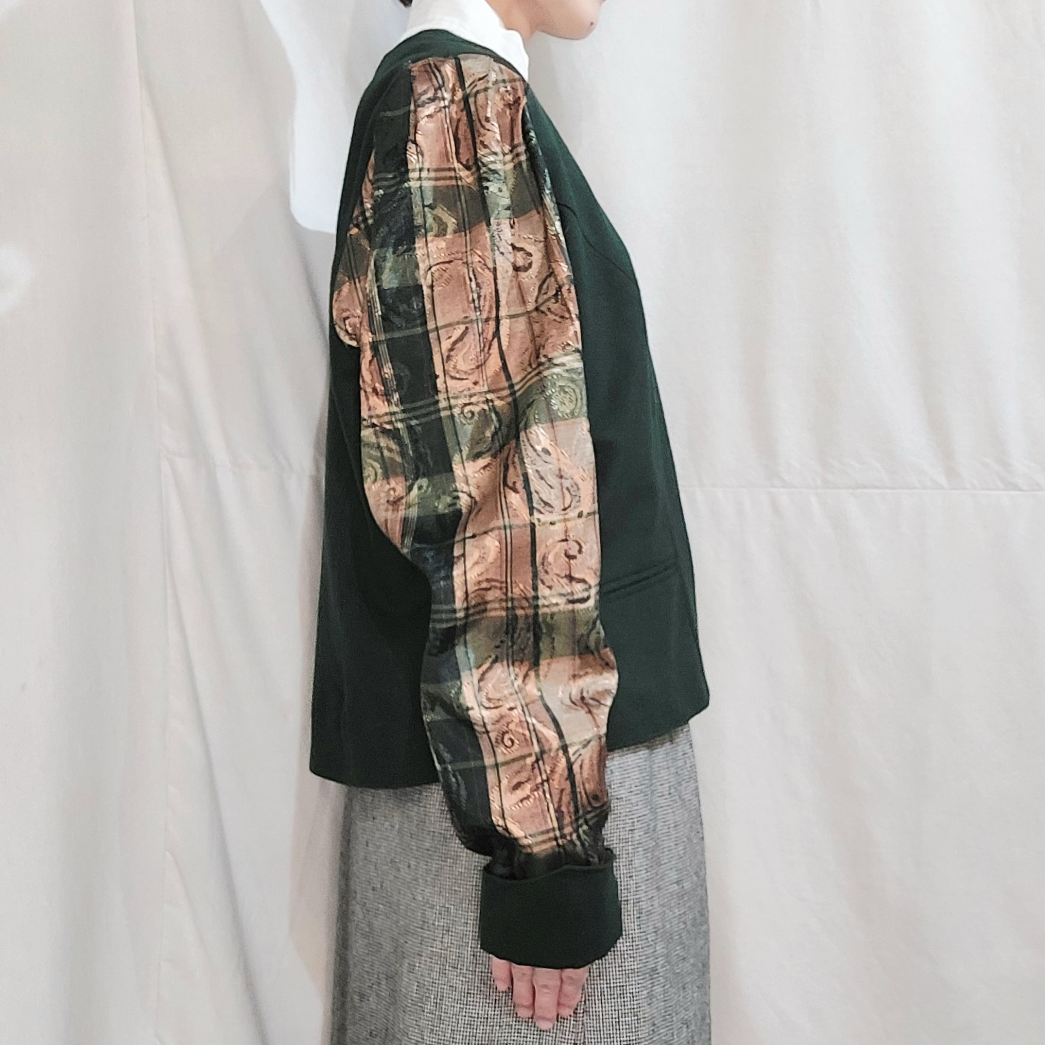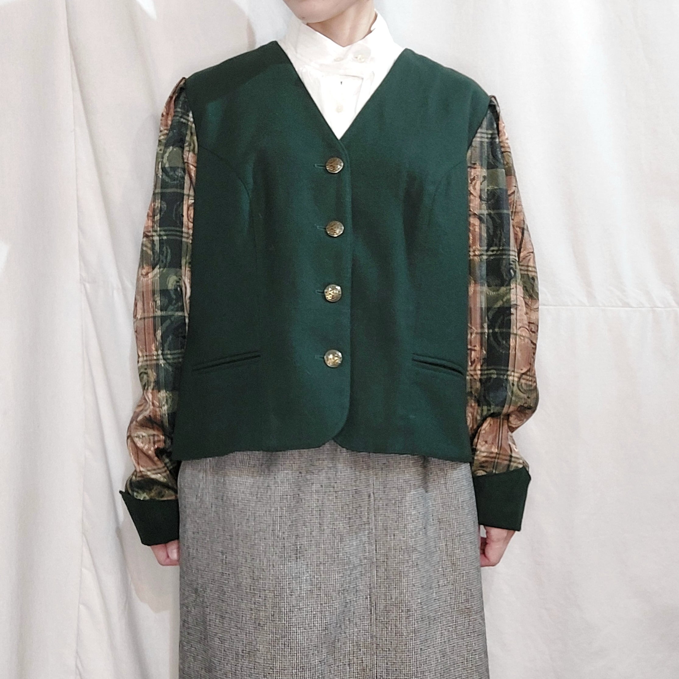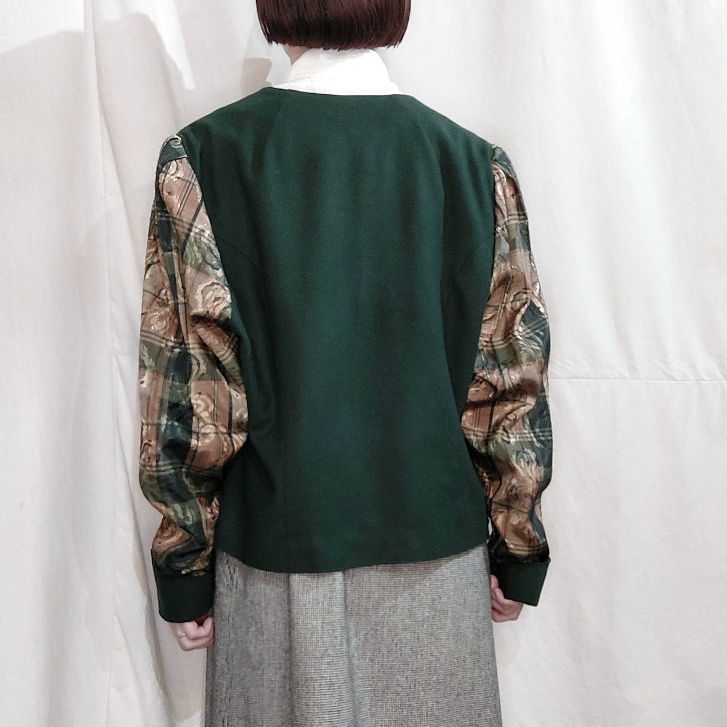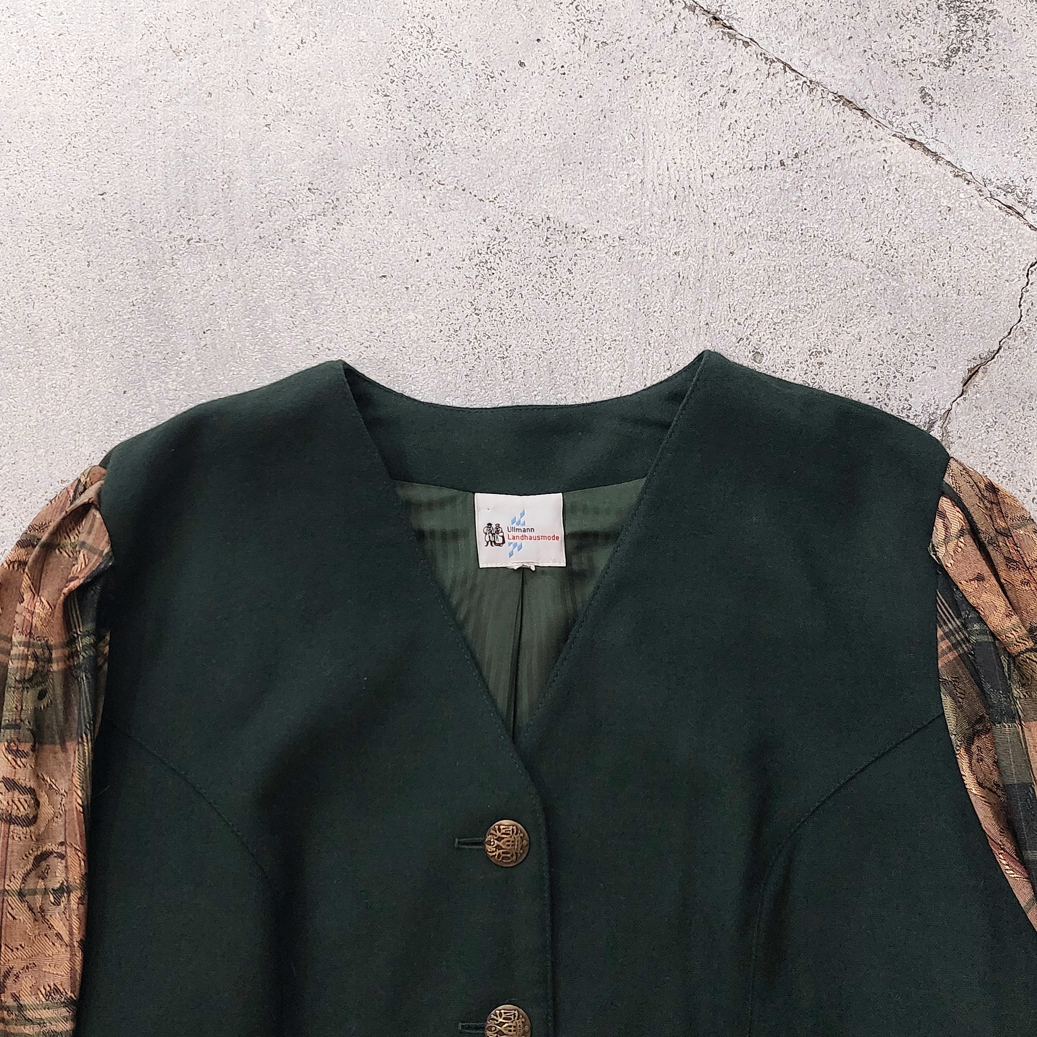 袖が織り地の切り替えになったチロルジャケットです。
