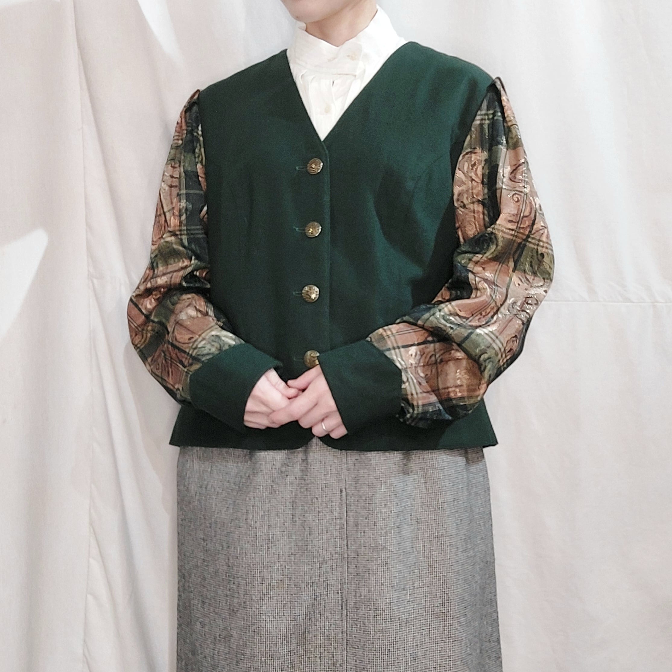 襟つきブラウスなどと合わせていただくのもおすすめです。