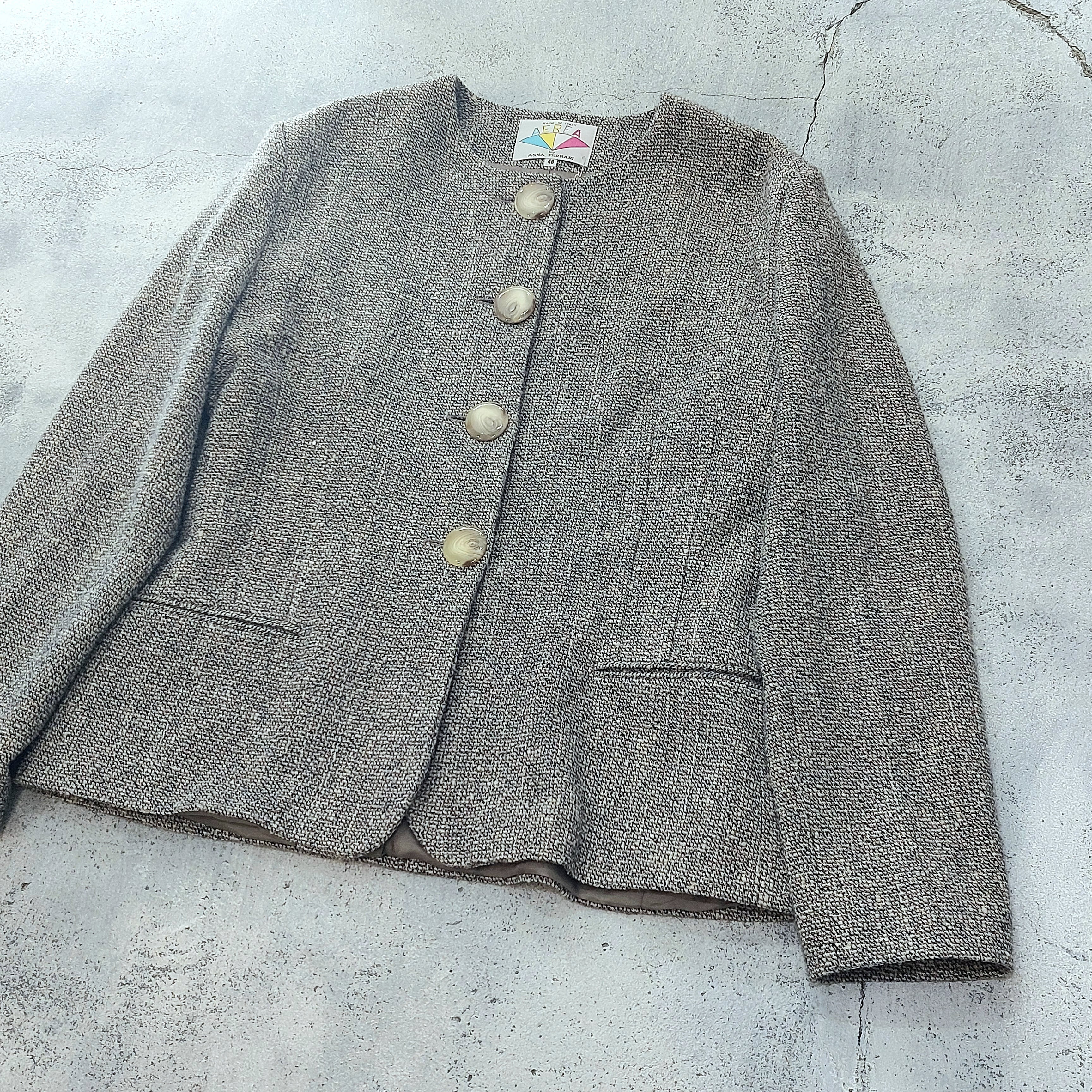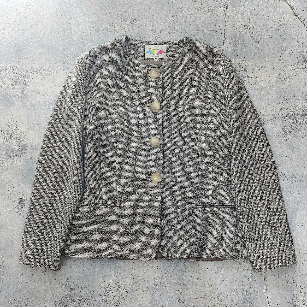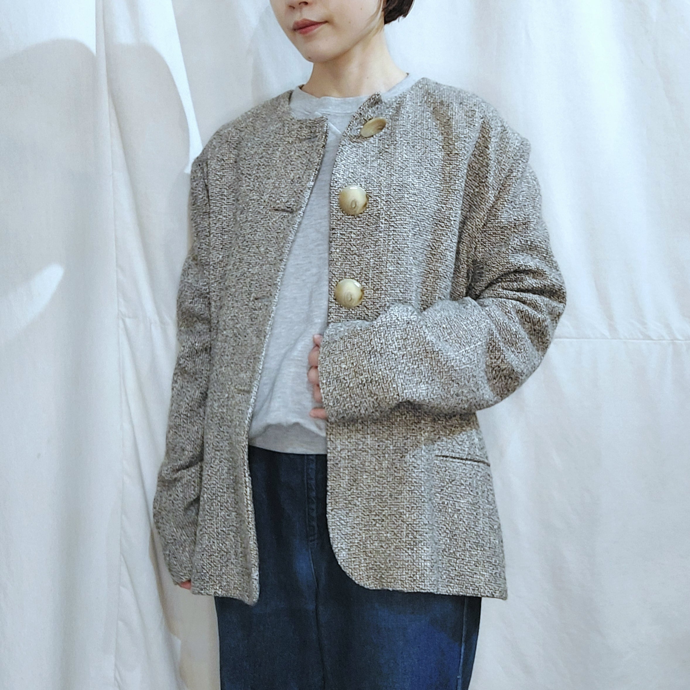 No collar wool jacket / Made in Italy[M-1277]イタリア製 ノーカラーウールジャケット