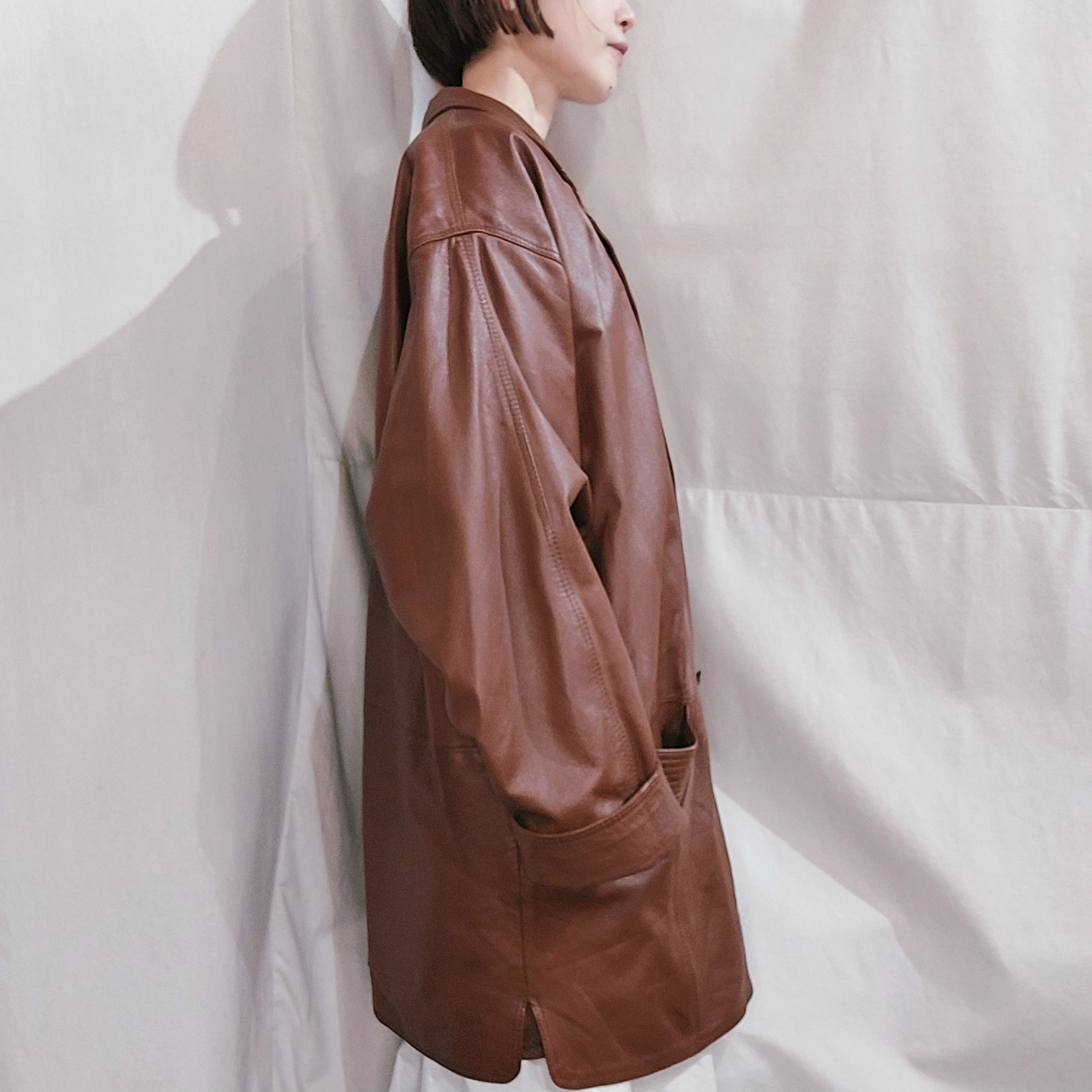 実寸サイズ(平置き):肩幅58㎝×袖丈(袖口伸ばした状態)56㎝(袖口折り返した状態)50㎝×裄丈86㎝×身幅63.5㎝×着丈78.5㎝