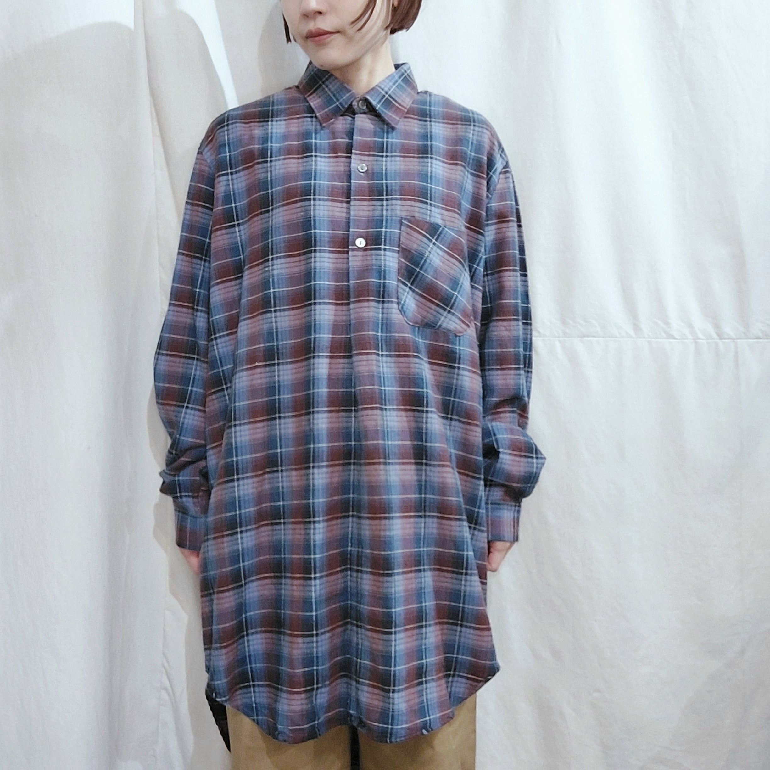 Check pattern grandpa shirt / Made in Portugal[3328]ポルトガル製 チェック柄グランパシャツ