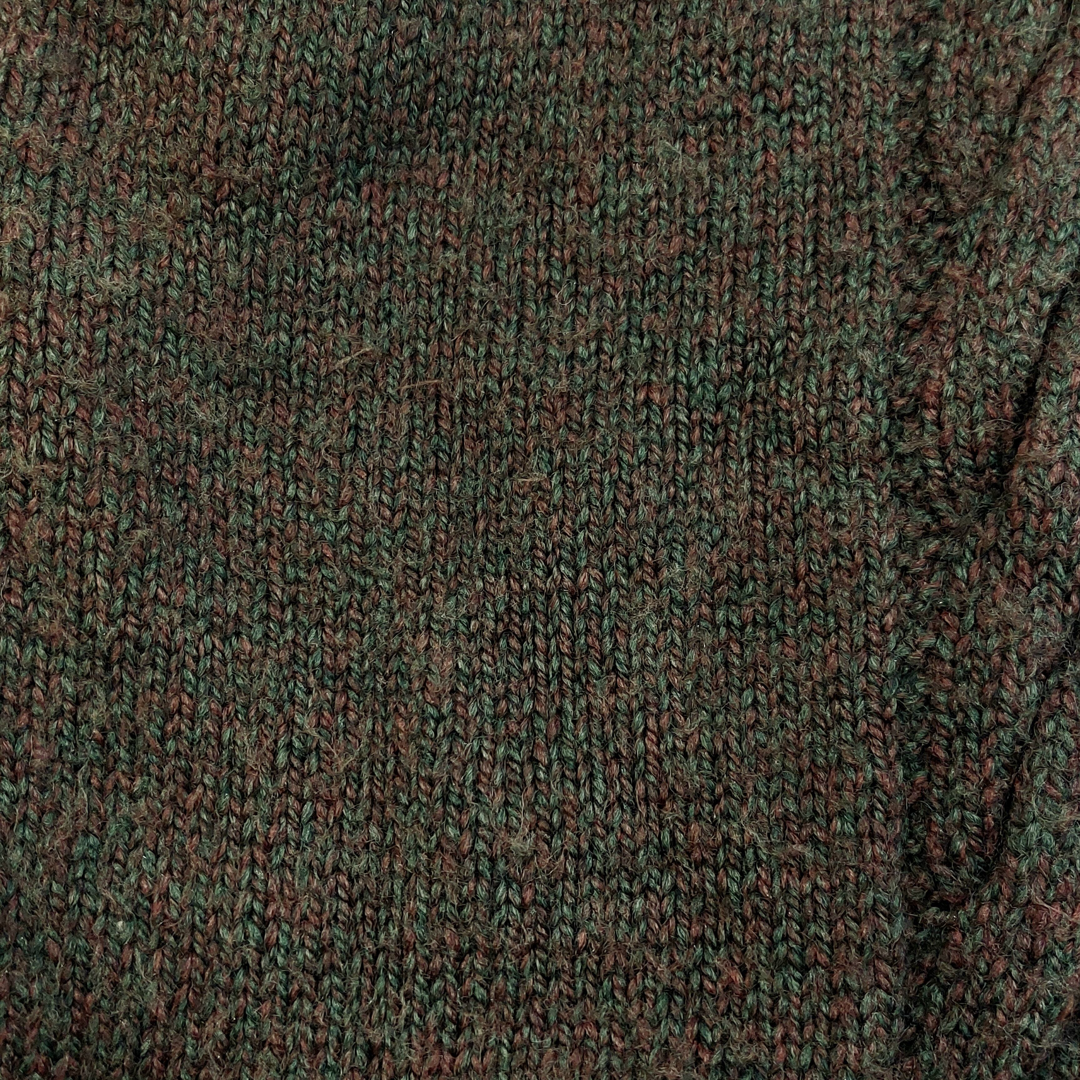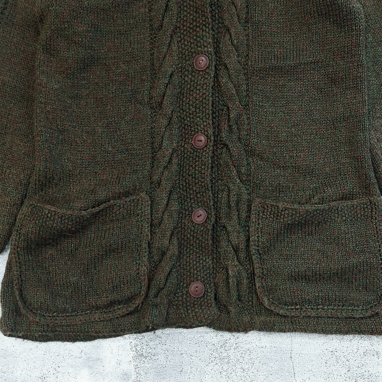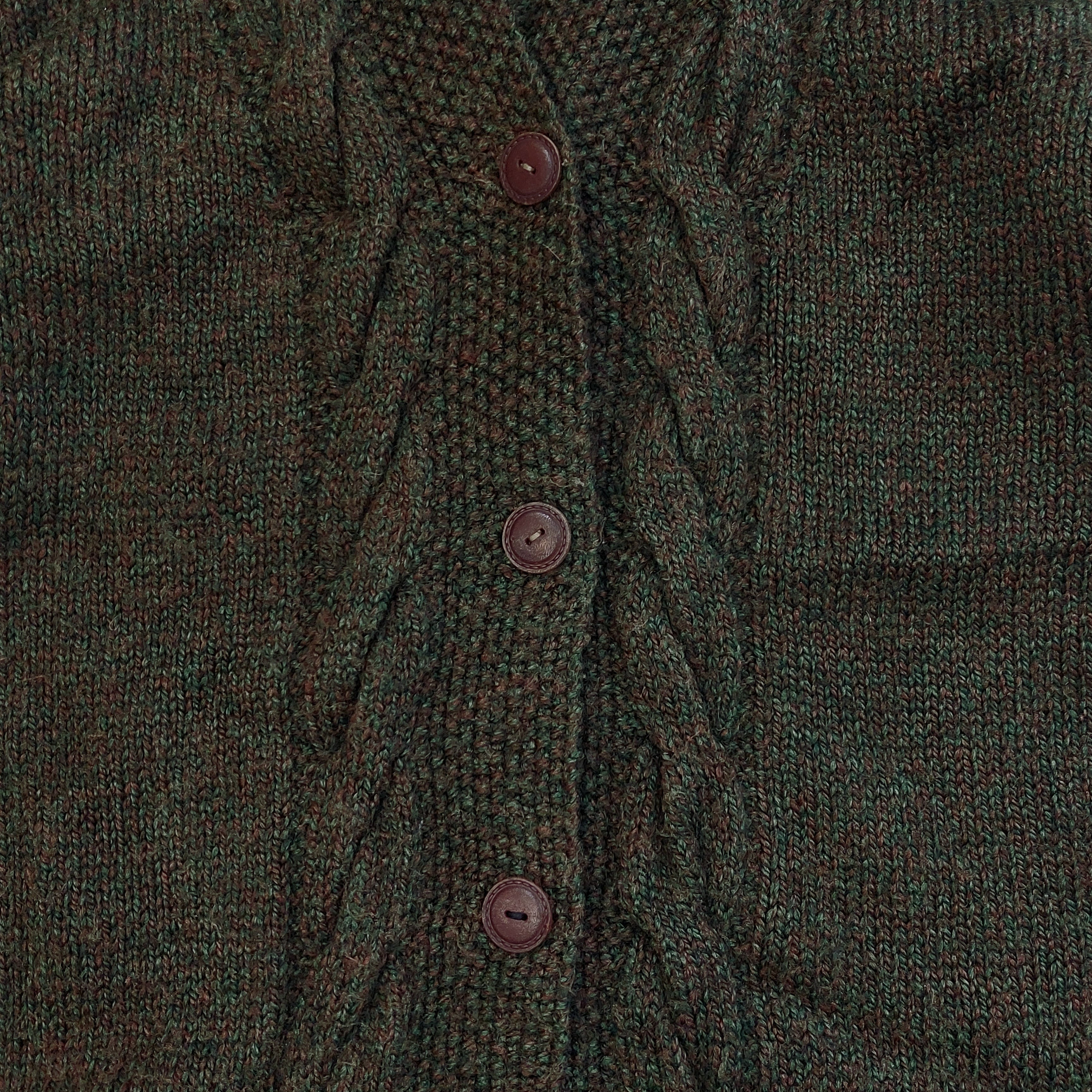 カーキとブラウンのミックスカラーの糸で編まれたロングニットカーディガンです。
