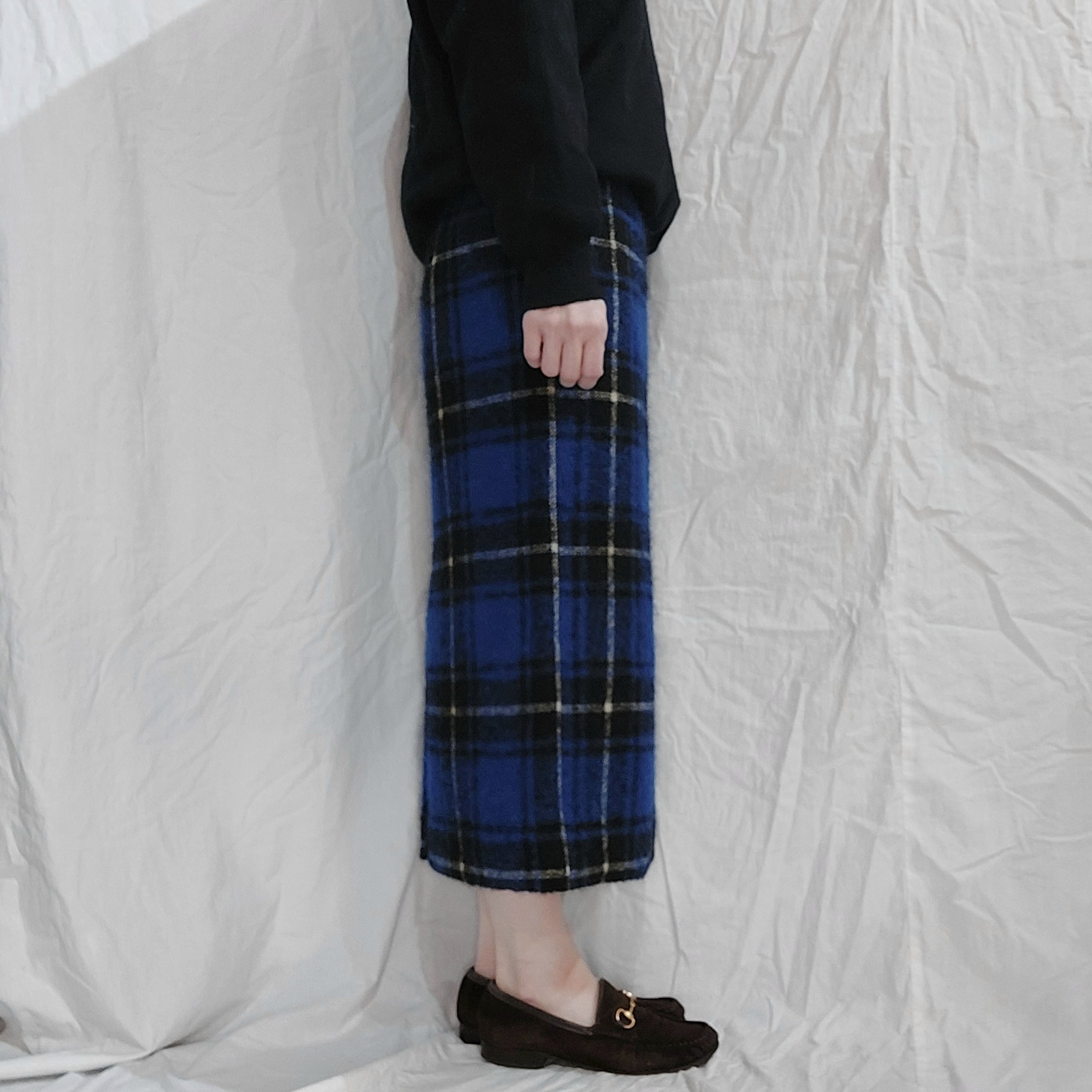 イタリア製ASPESIのチェック柄モヘア&アルパカブレンドウールタイトスカートです。