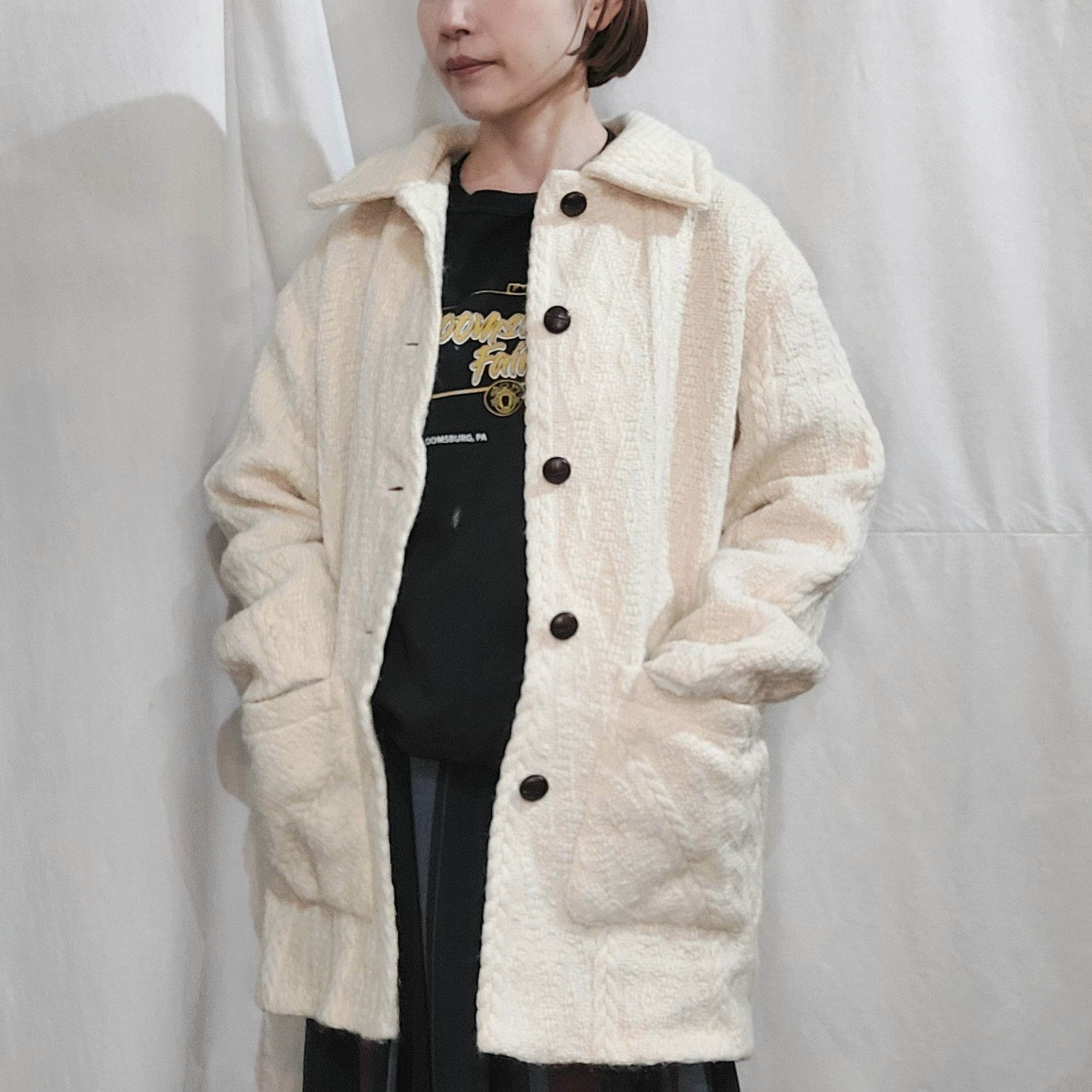 Wool knit coat / Made in Ireland[fa-607]