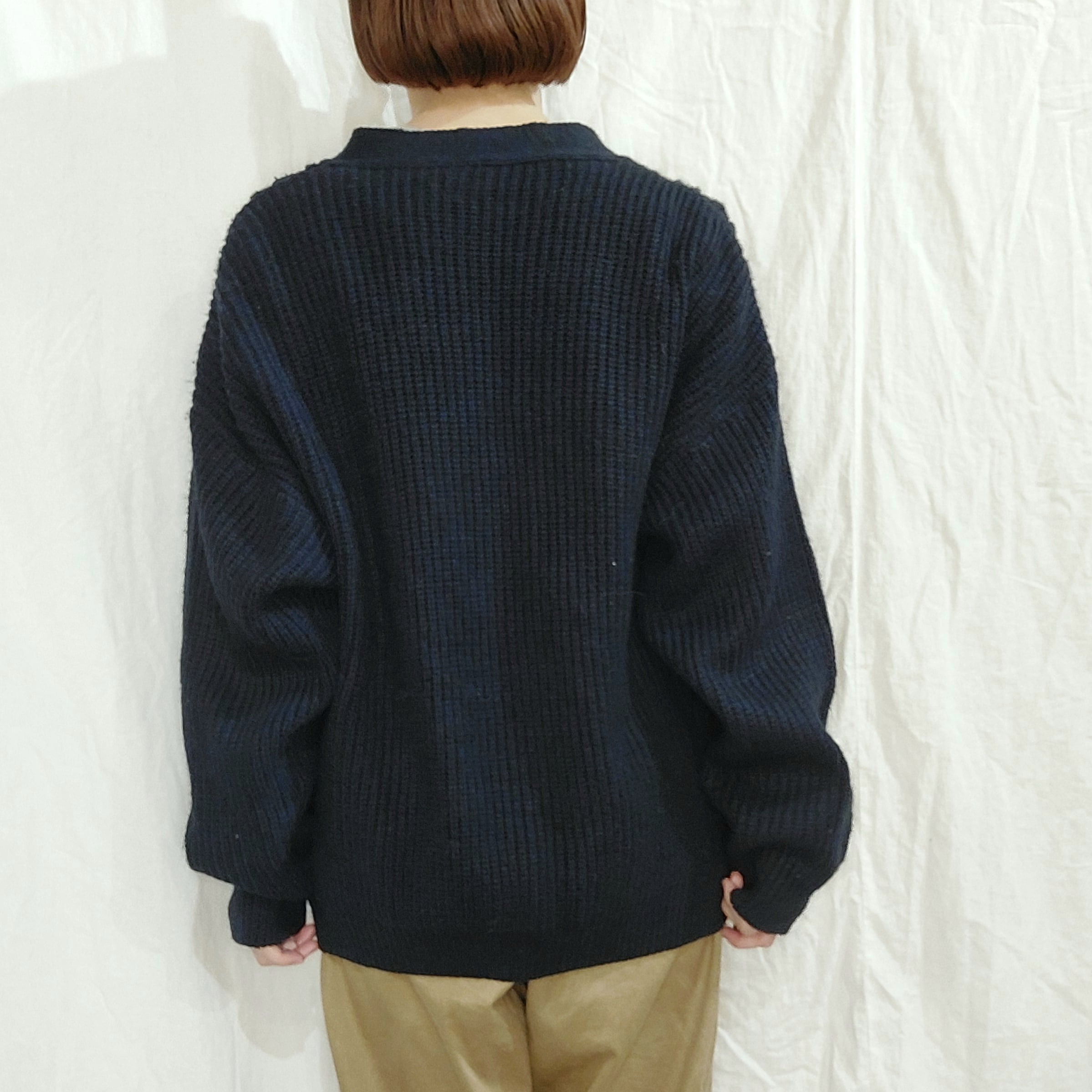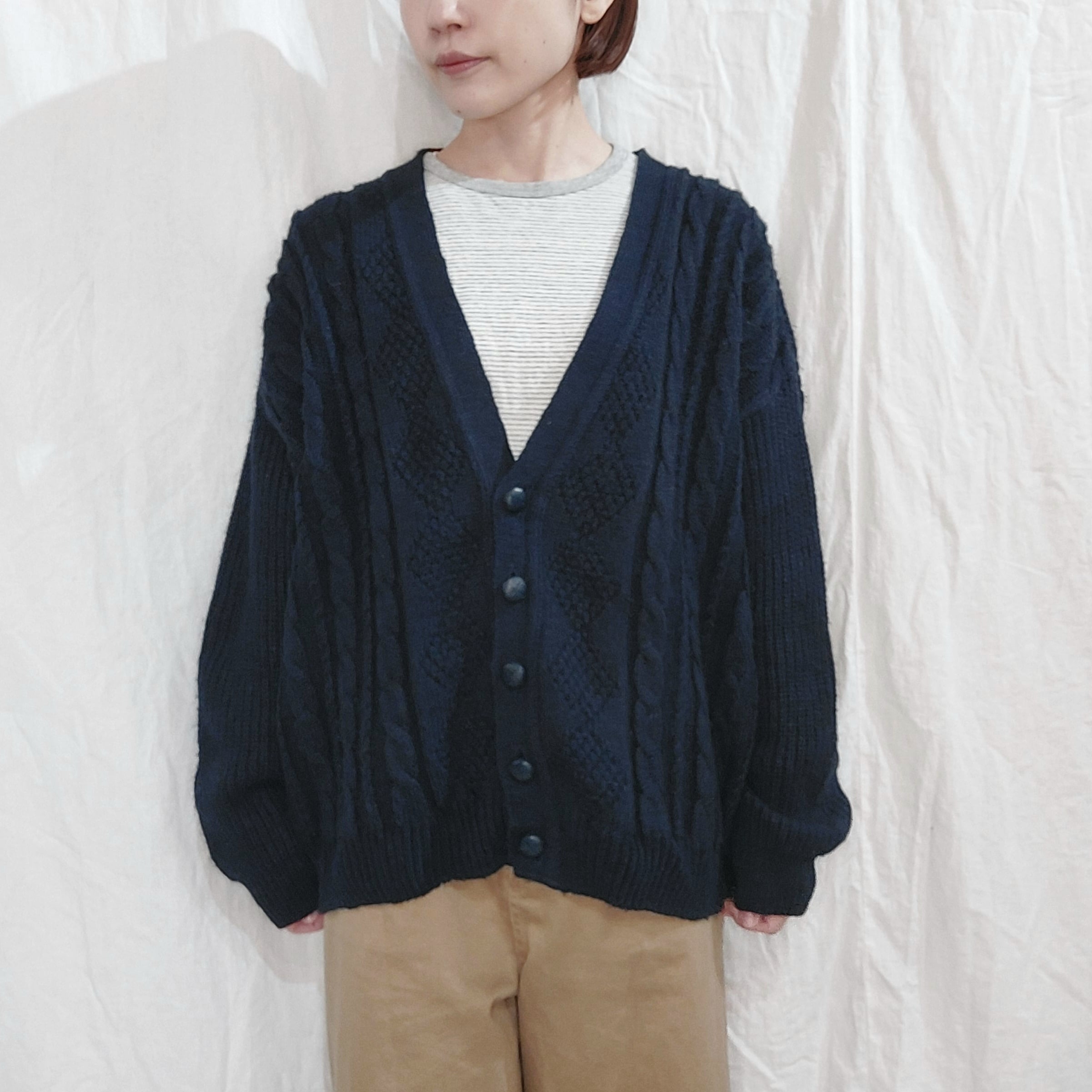 Cable knit v-neck cardigan / Made in France[fa-571]フランス製 ケーブルニットVネックカーディガン