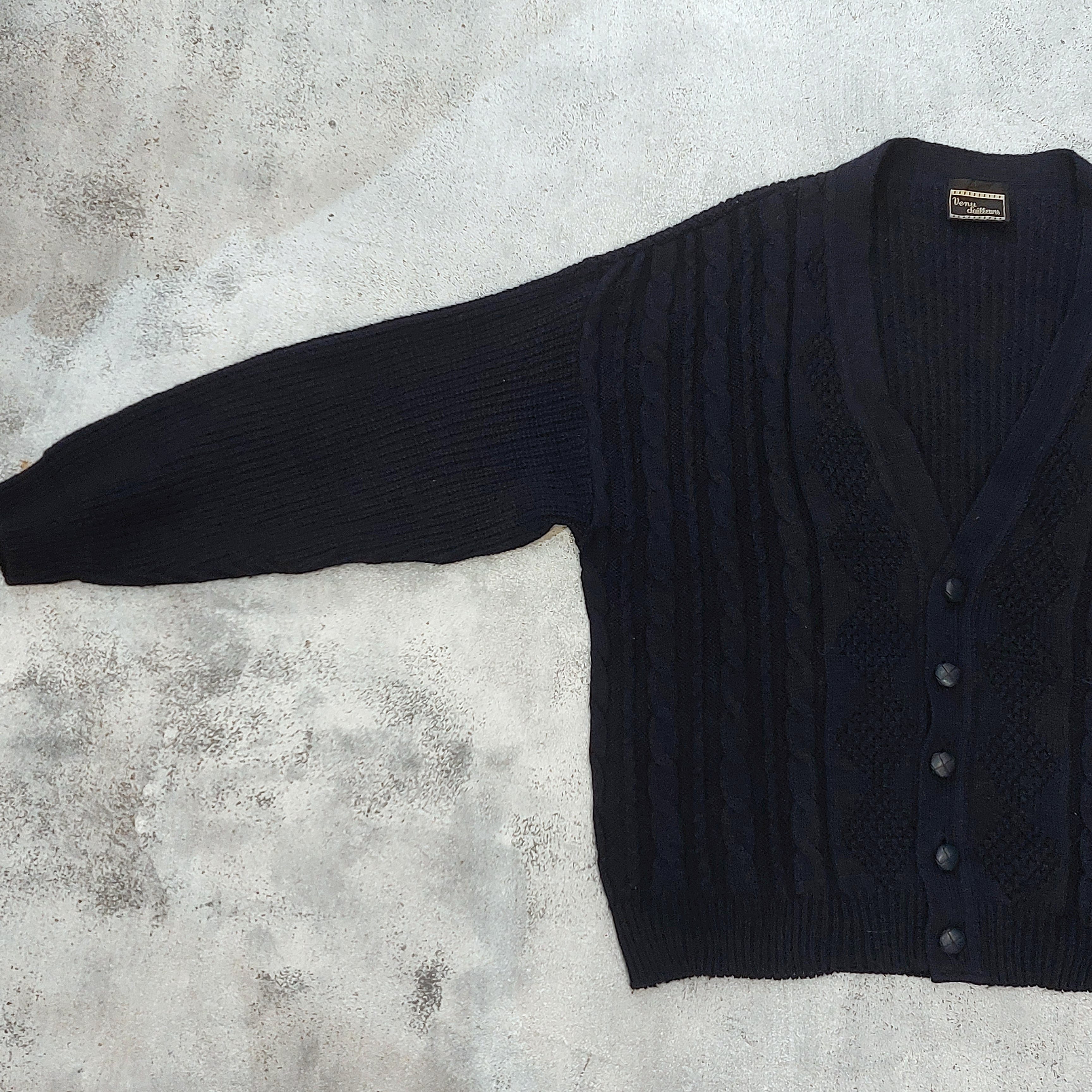 フランス製のケーブル編みニットVネックカーディガンです。