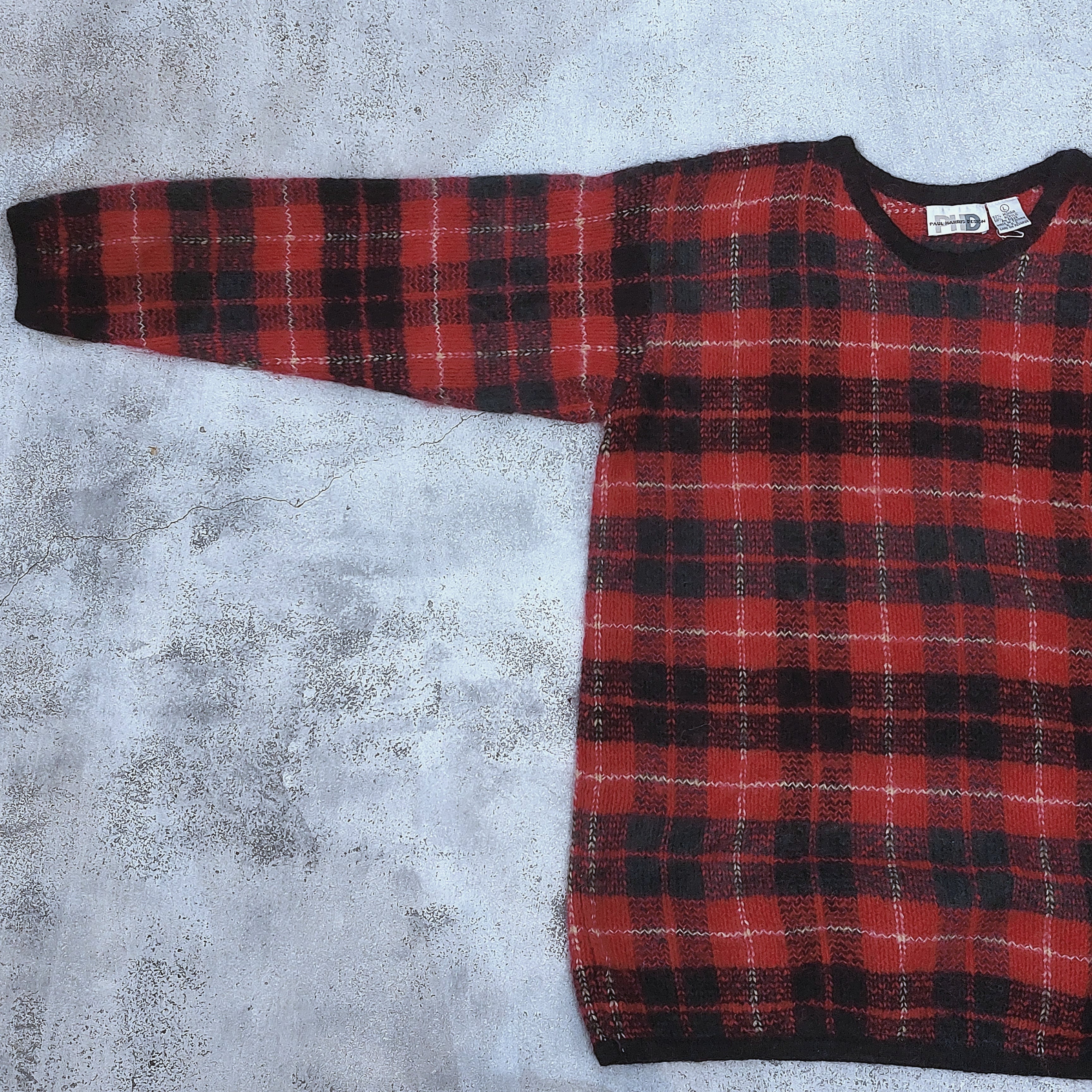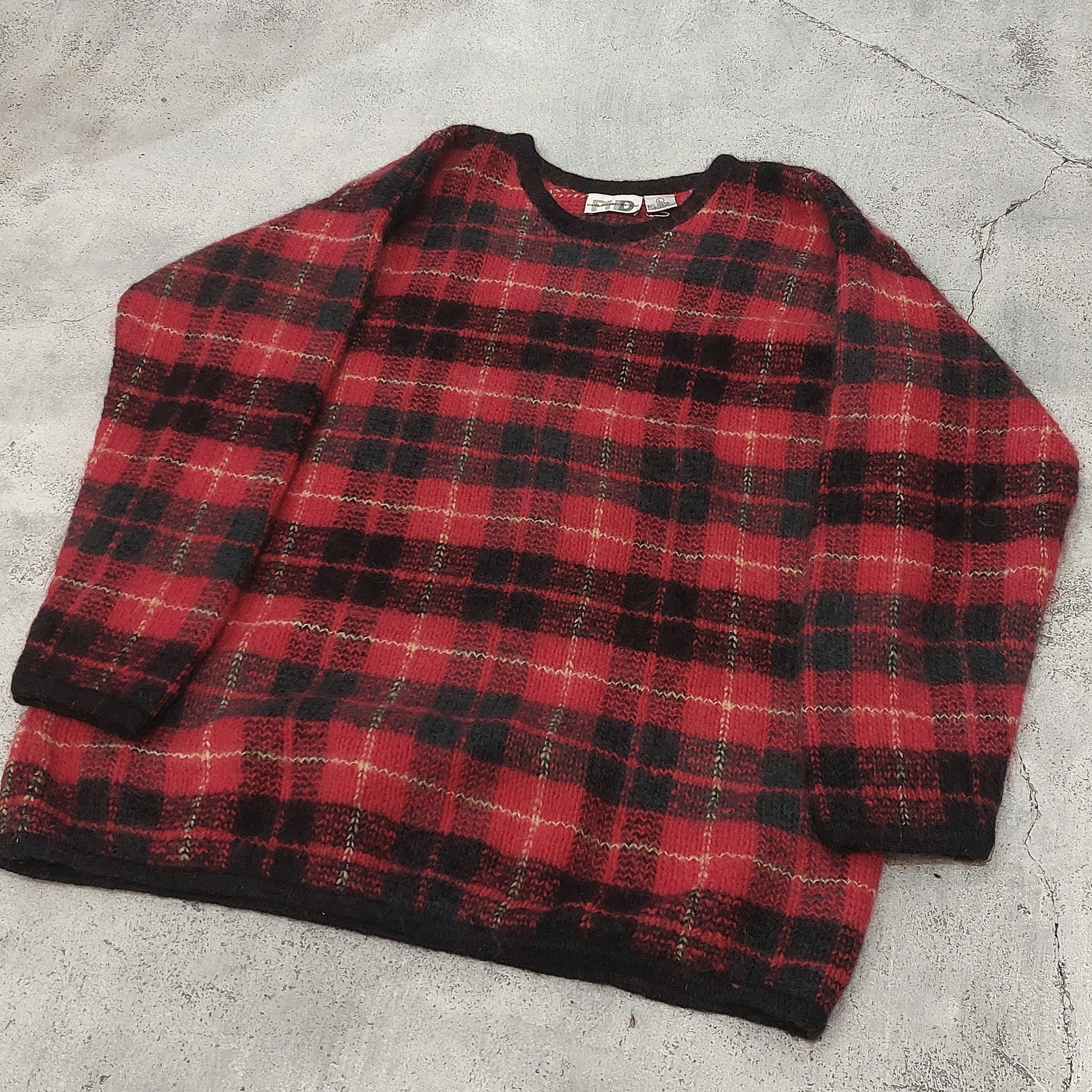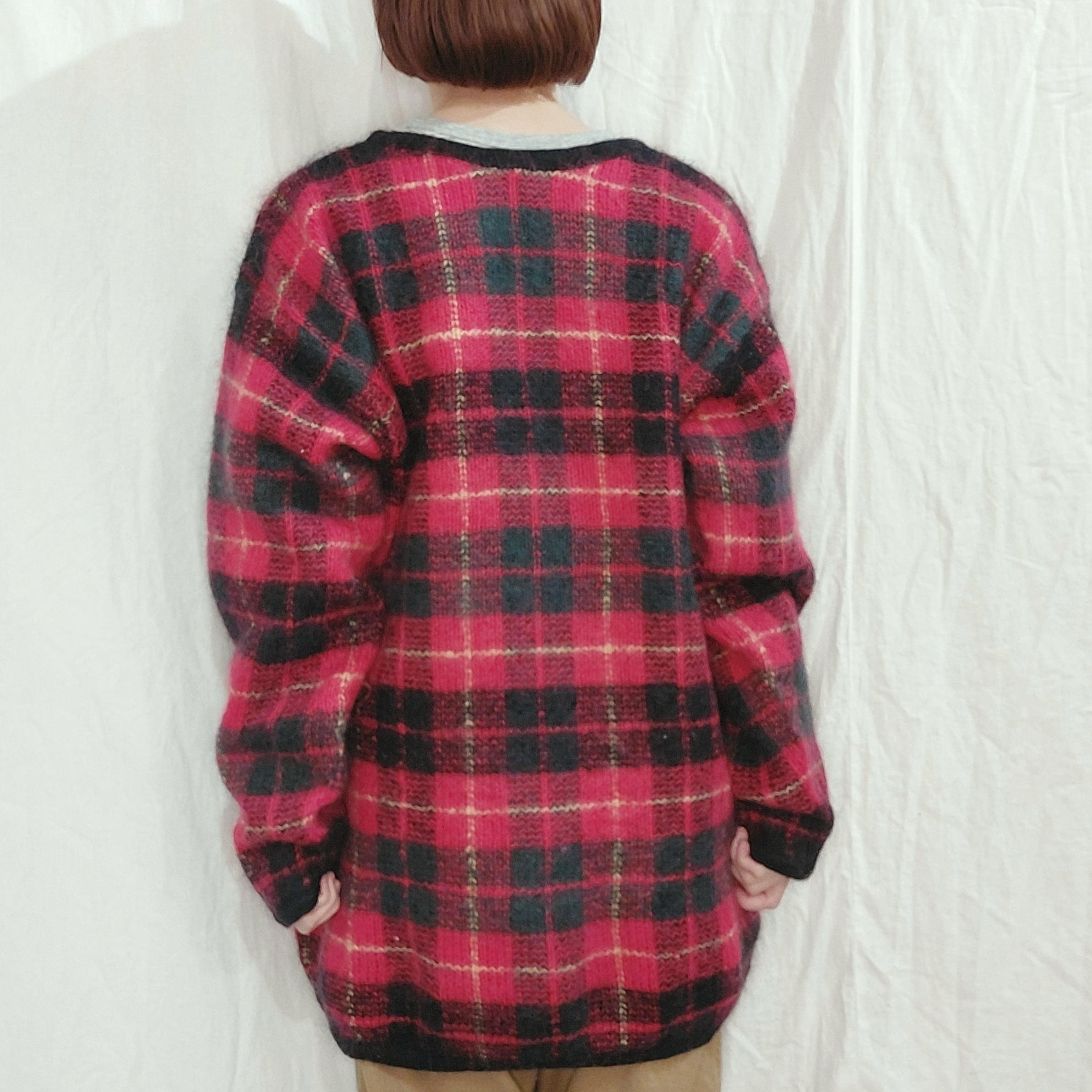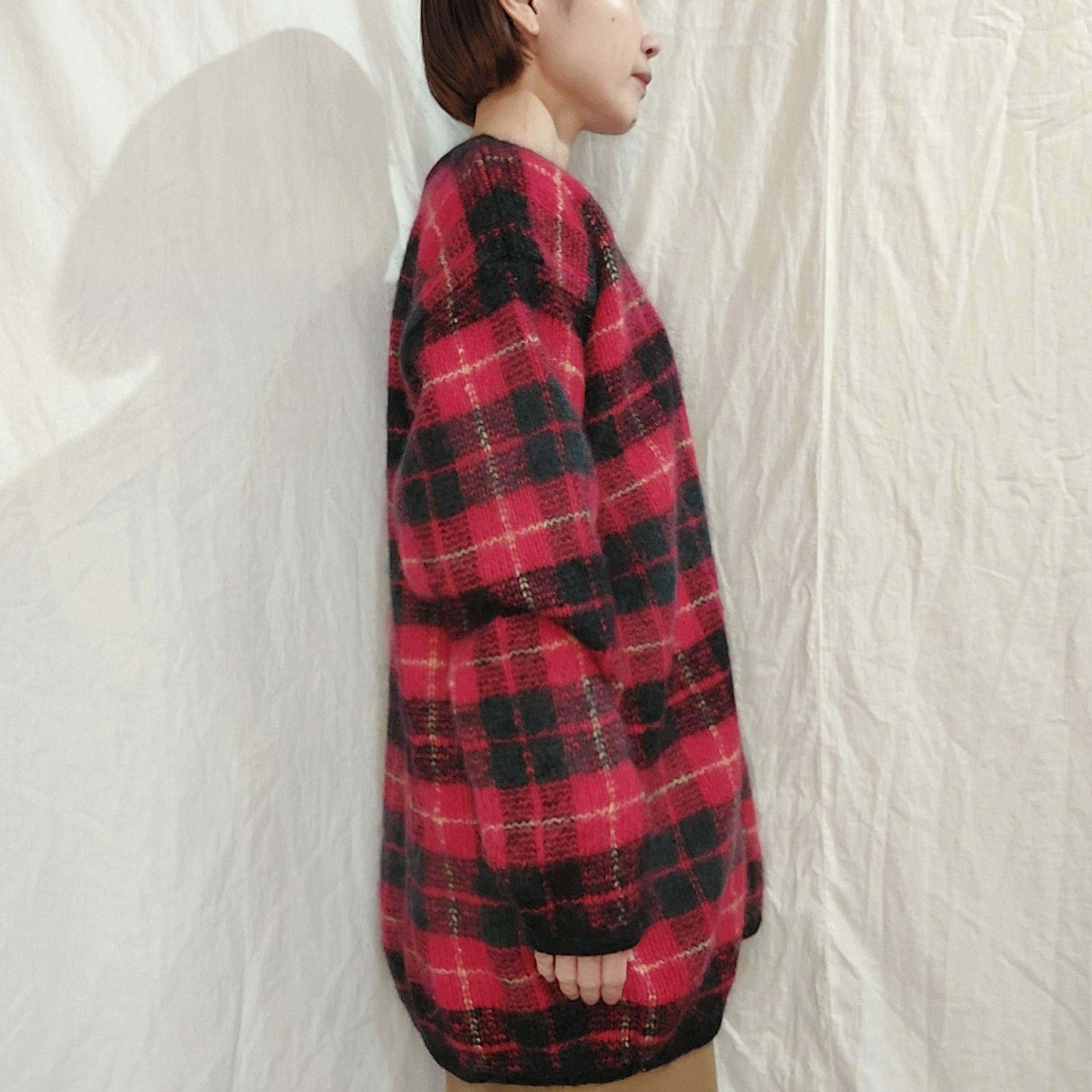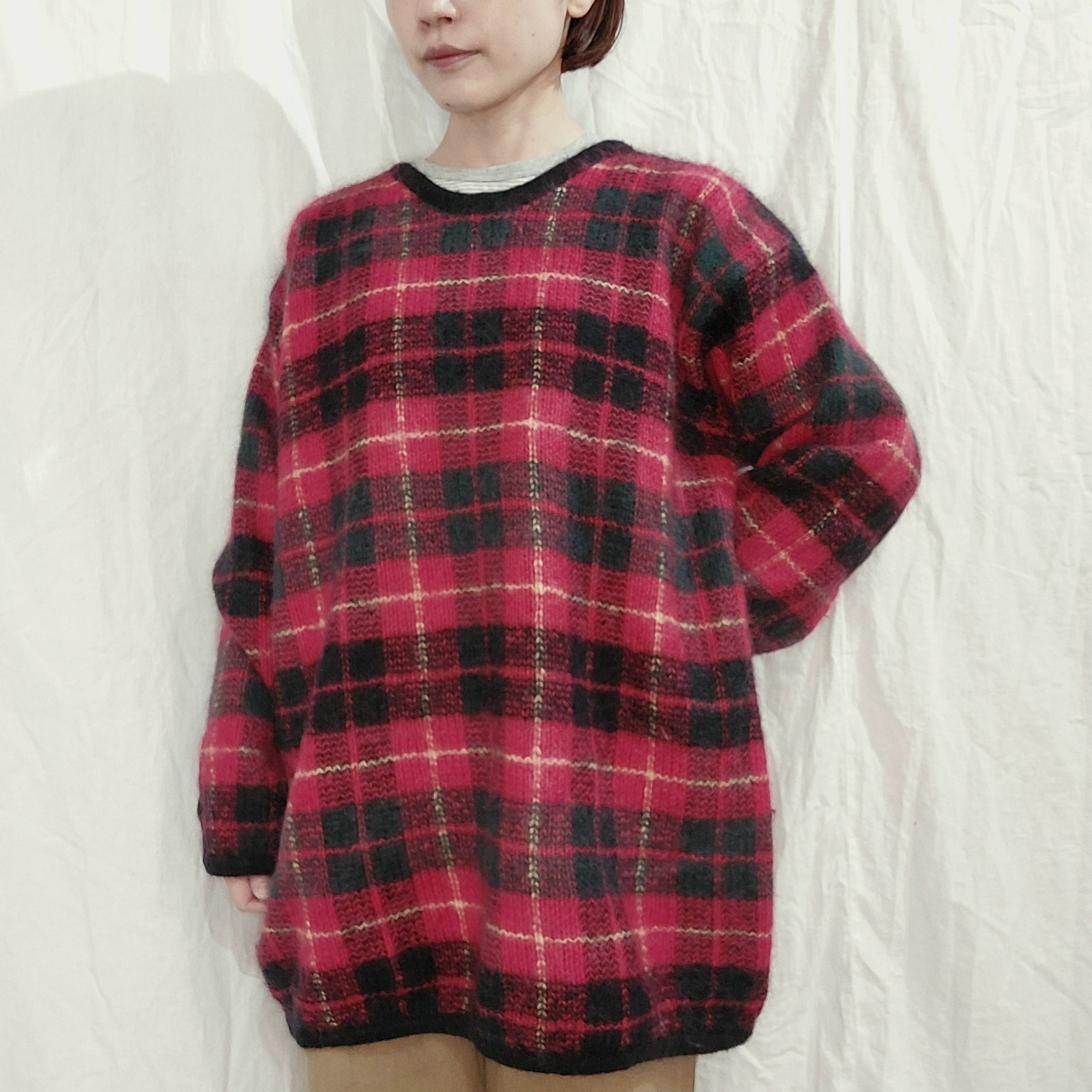 チェック柄モヘアブレンドニットセーターです。