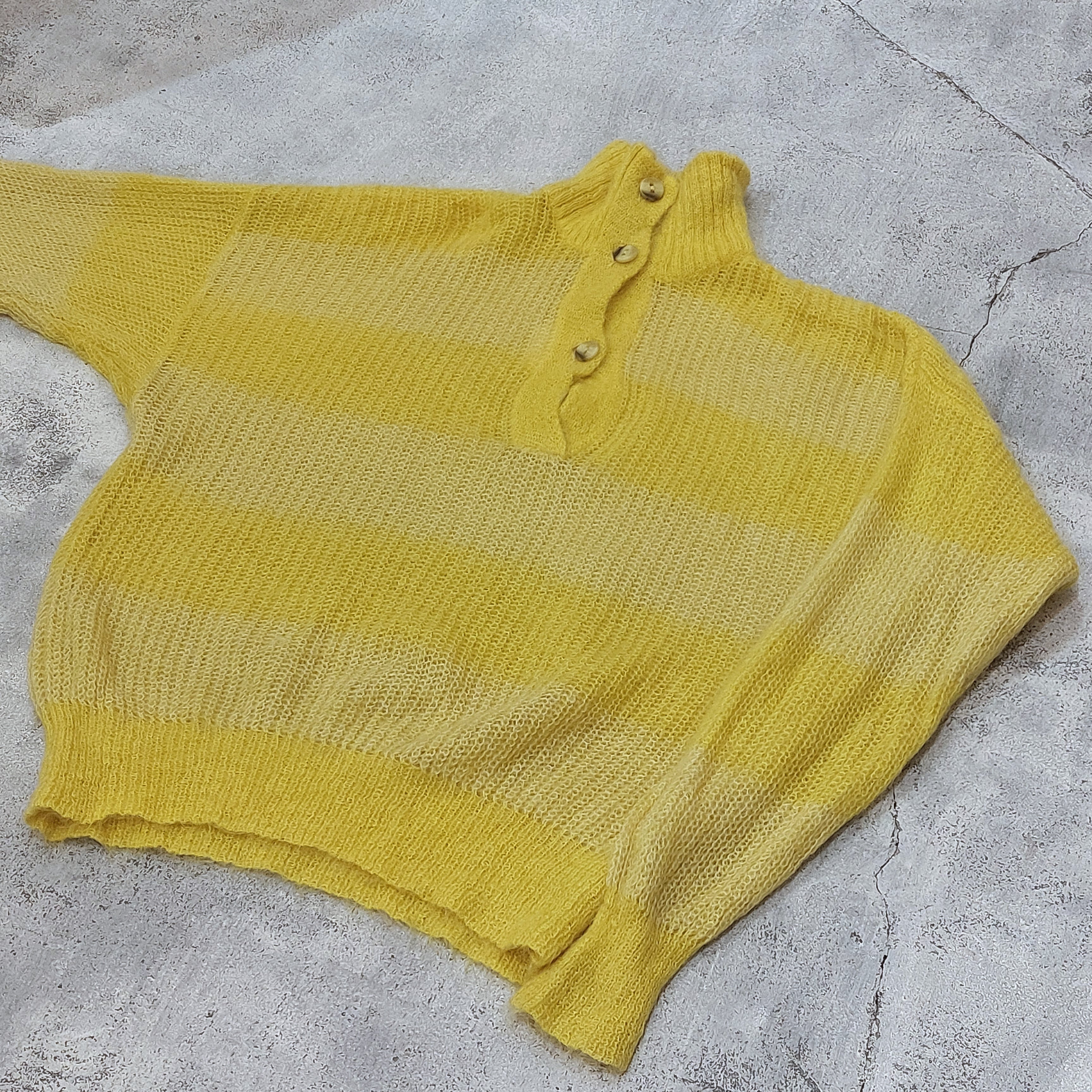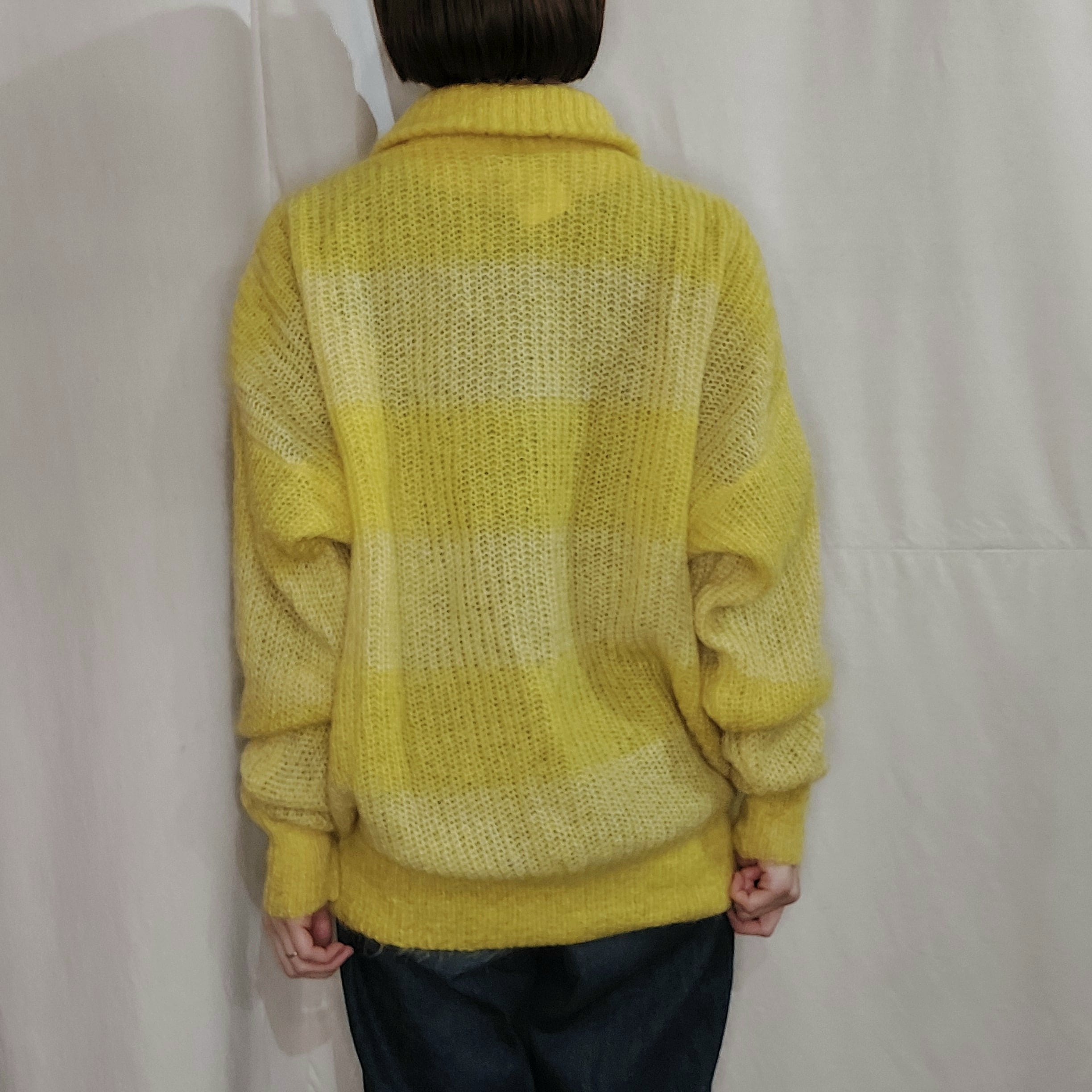 Border pattern mohair blended collared knit sweater / Made in Italy[fa-627]イタリア製 ボーダー柄モヘアブレンド襟付きセーター