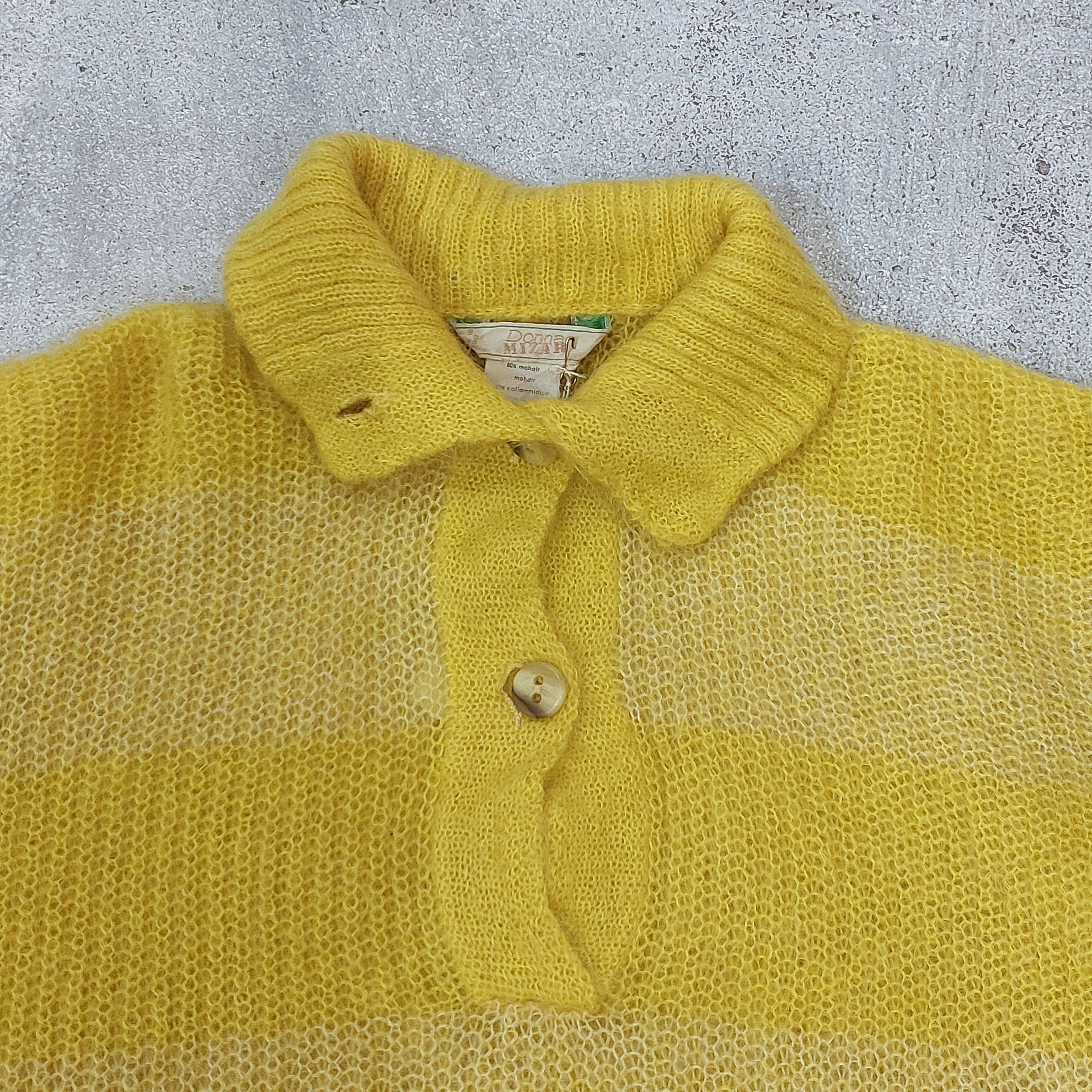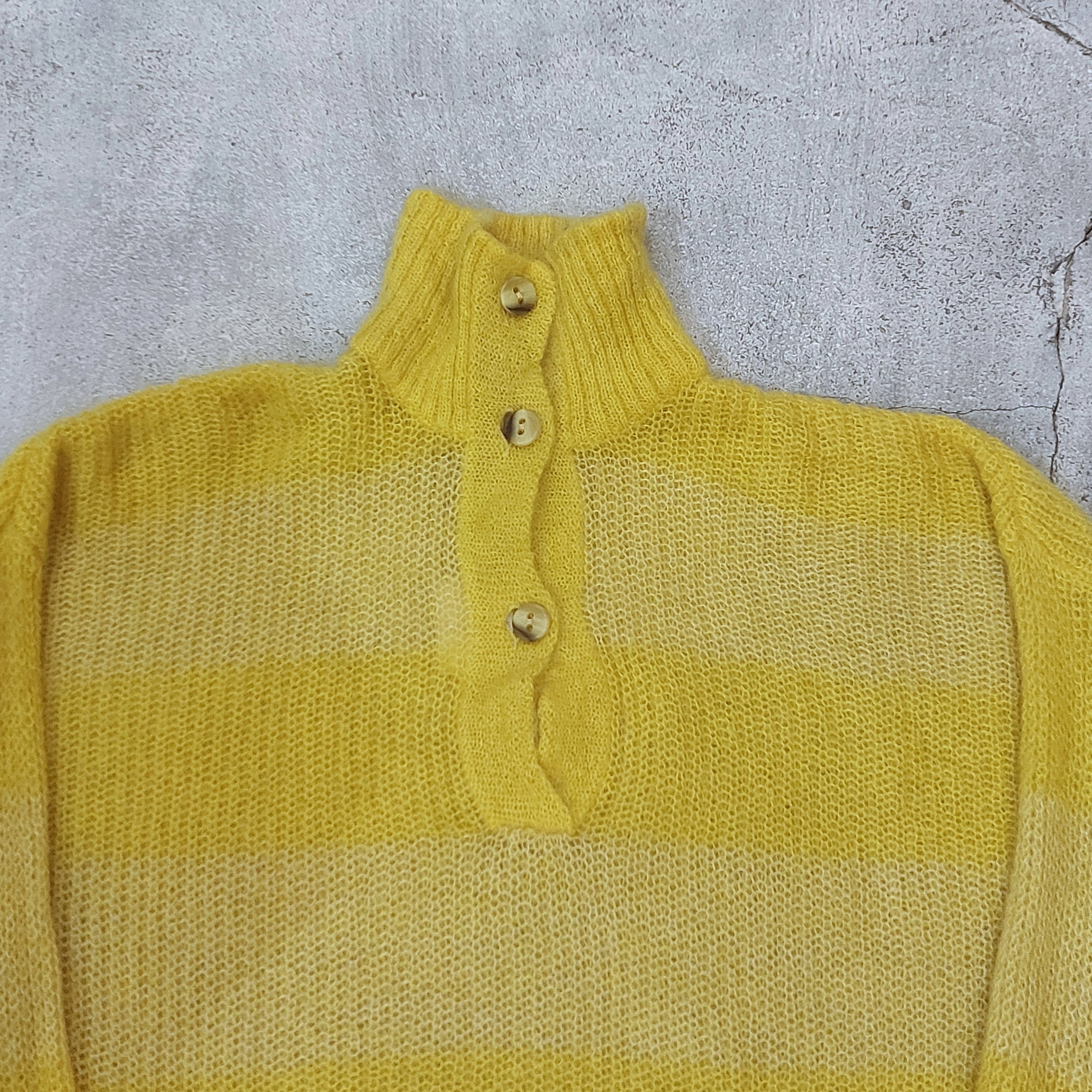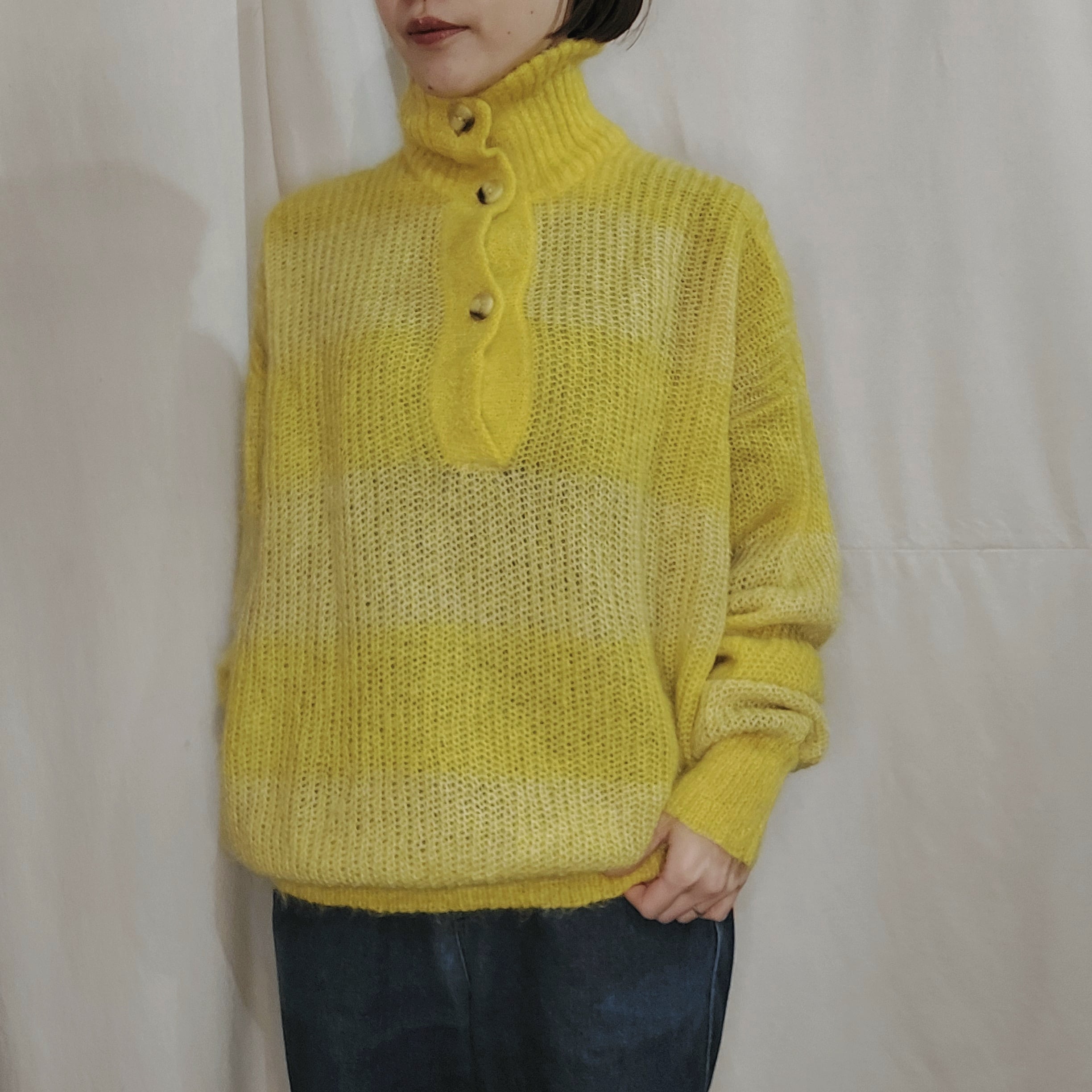 イタリア製ボーダー柄モヘアブレンド襟付きセーターです。