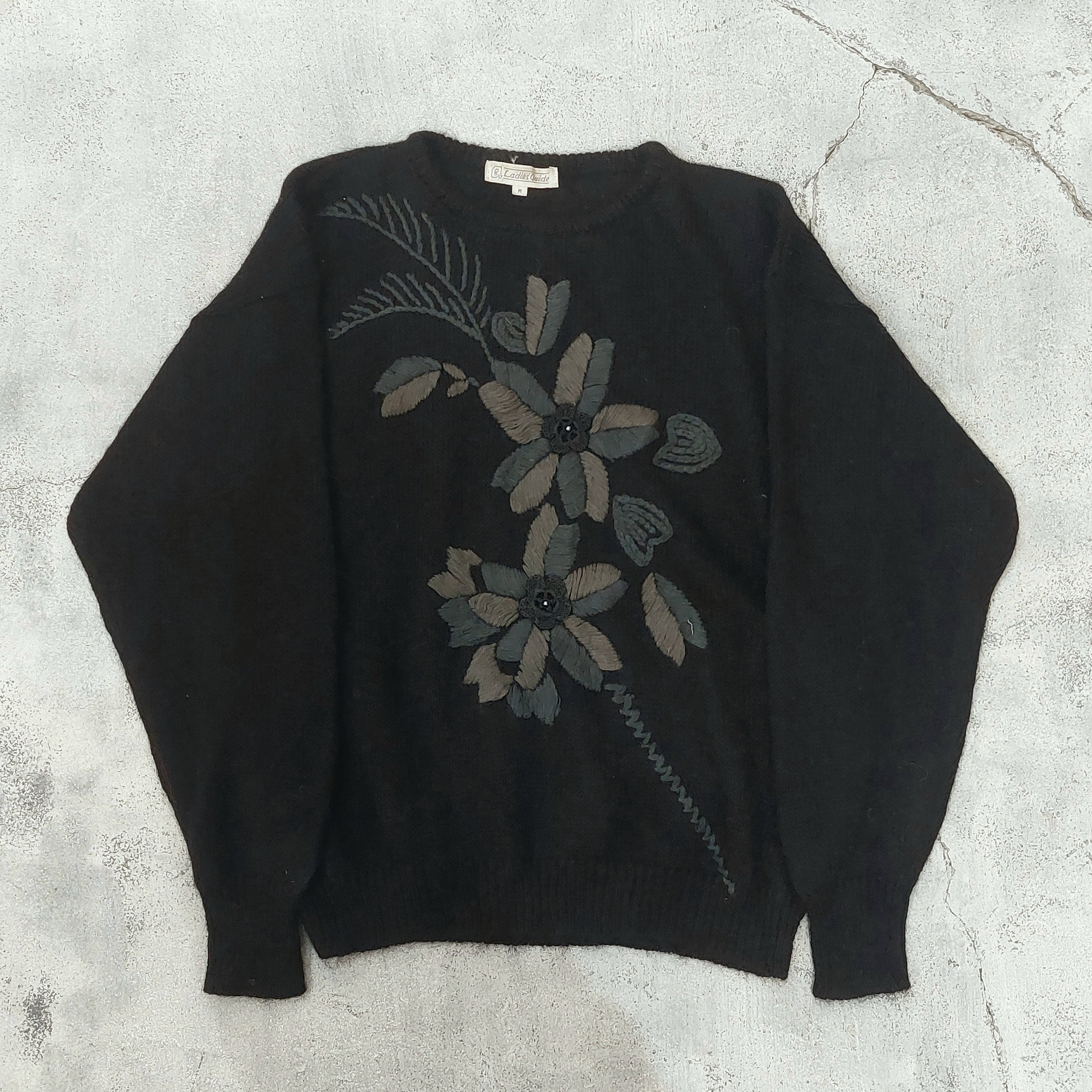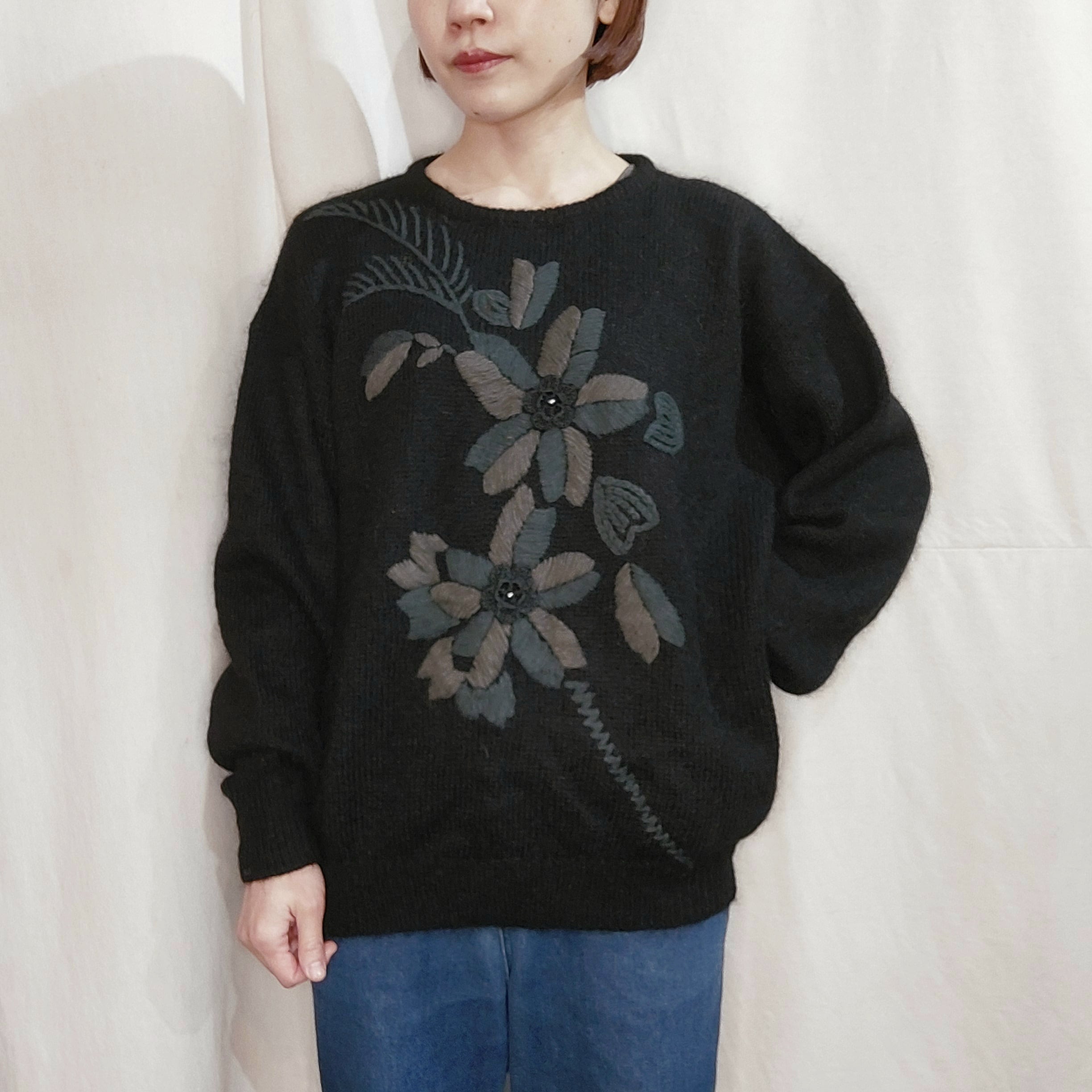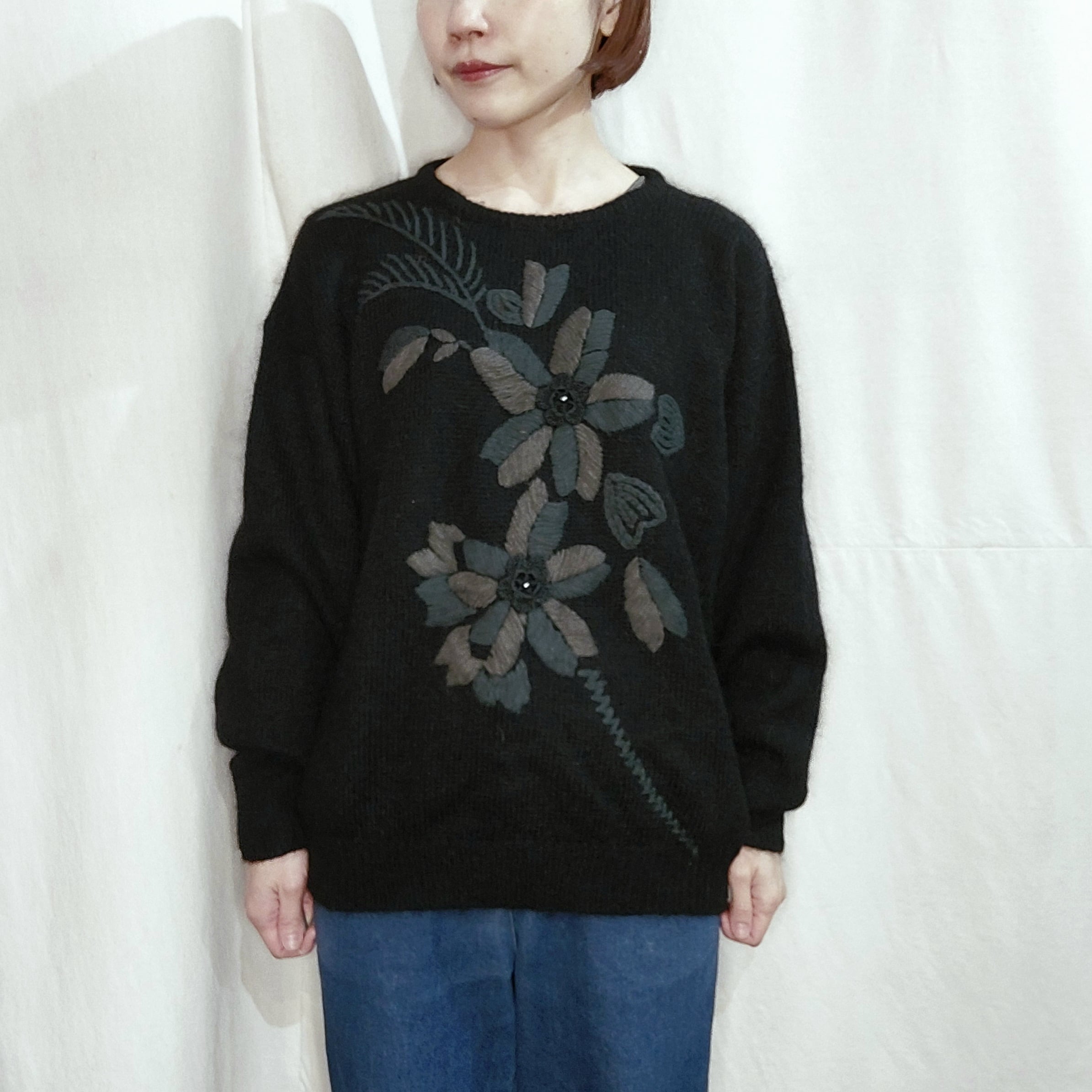 Flower embroidery mohair blended knit sweater[fa-616]花刺繍モヘアブレンドニットセーター