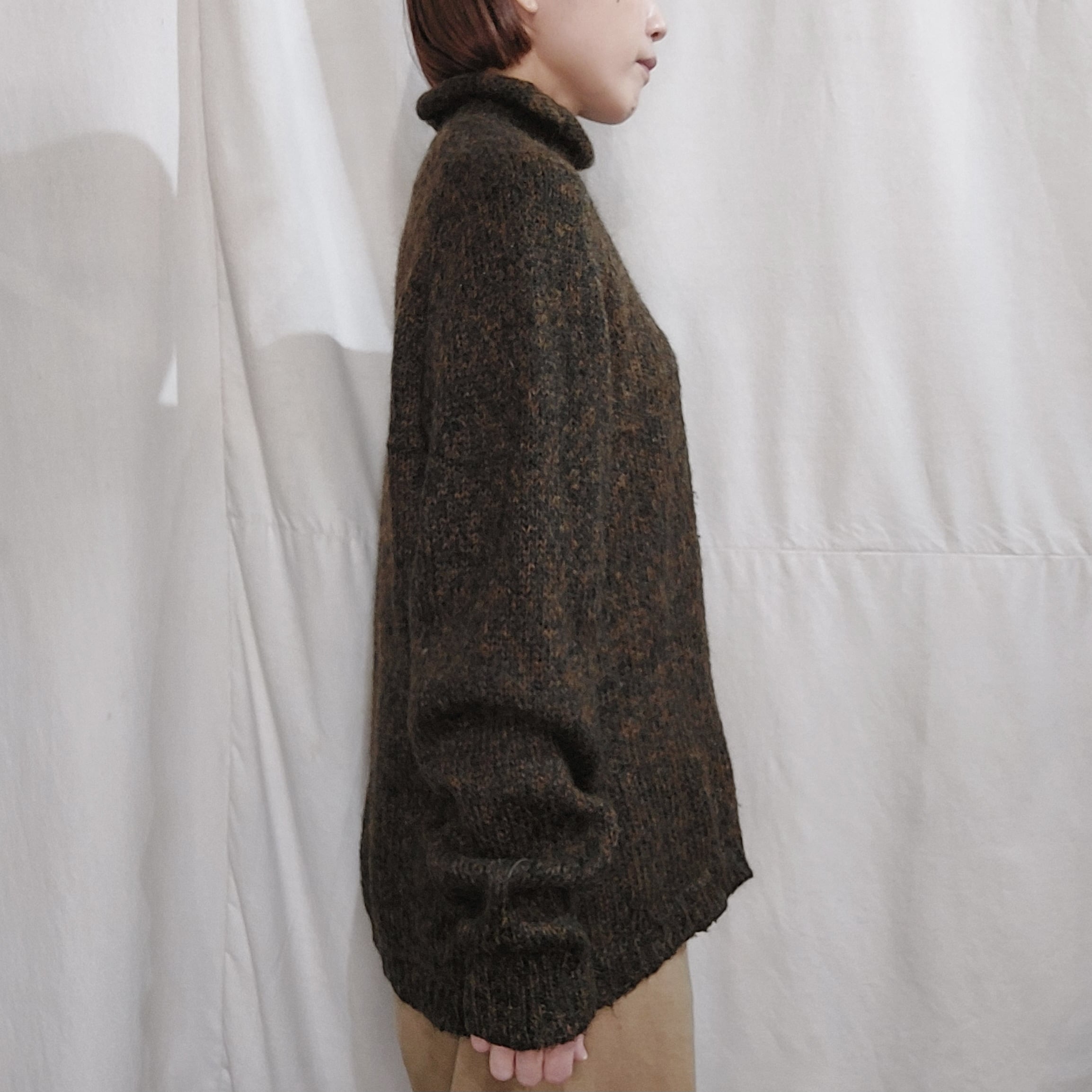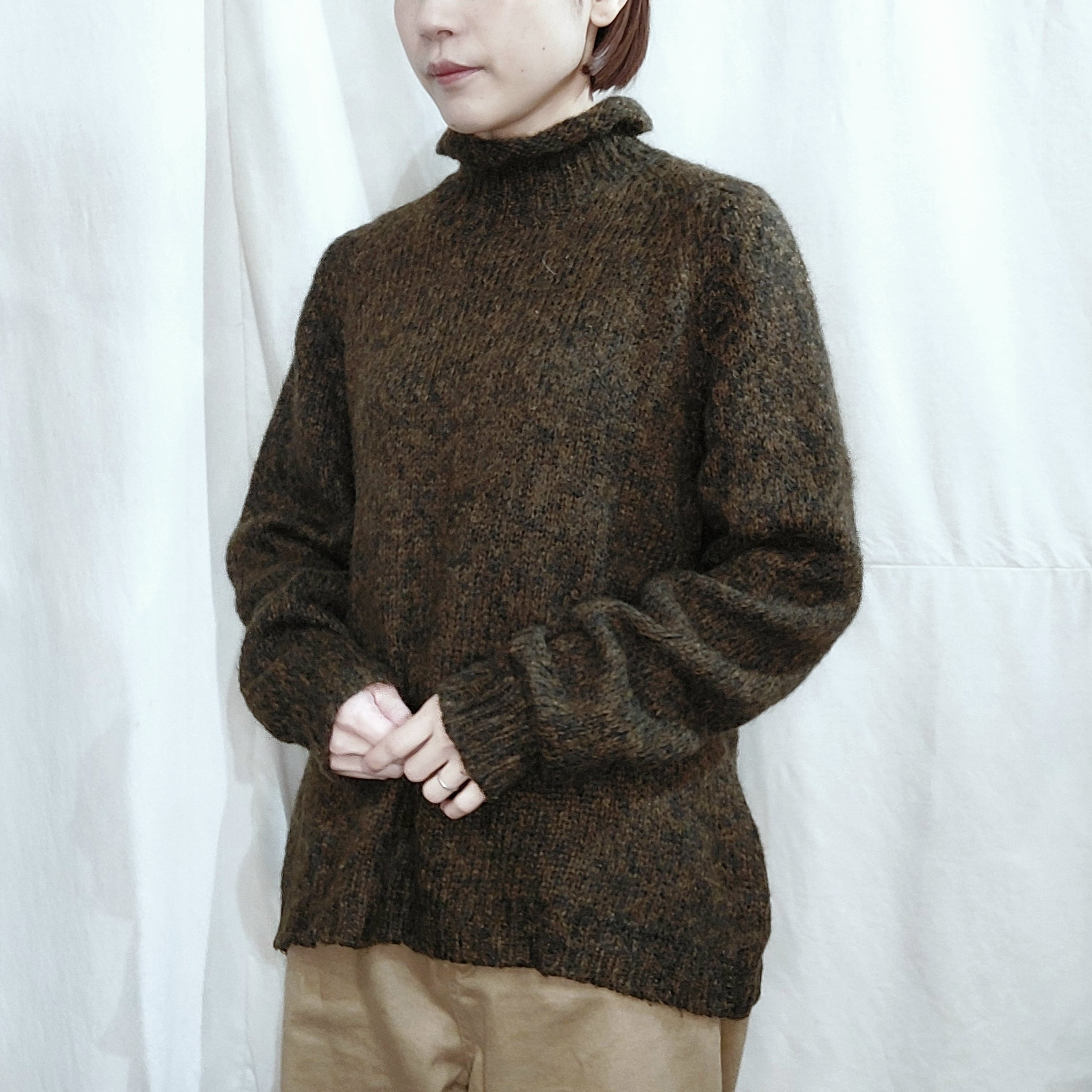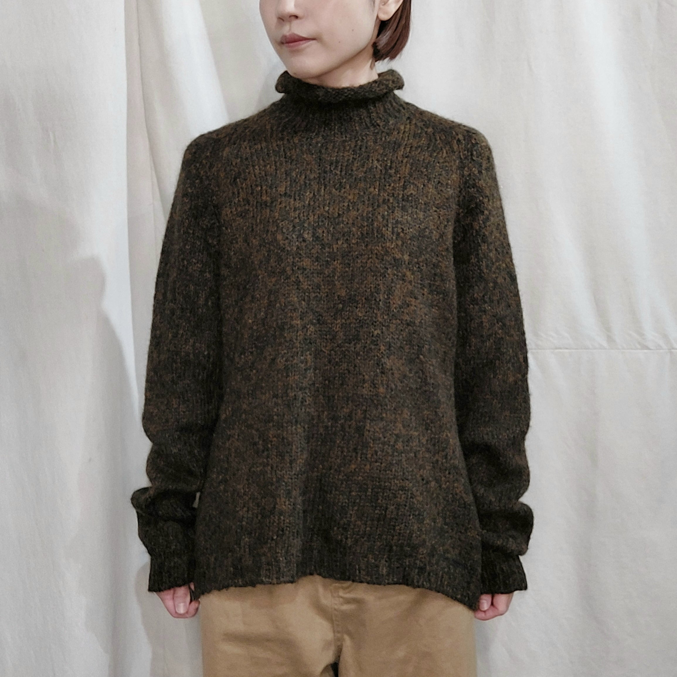 イタリア製キッドモヘアブレンドロールネックニットセーターです。