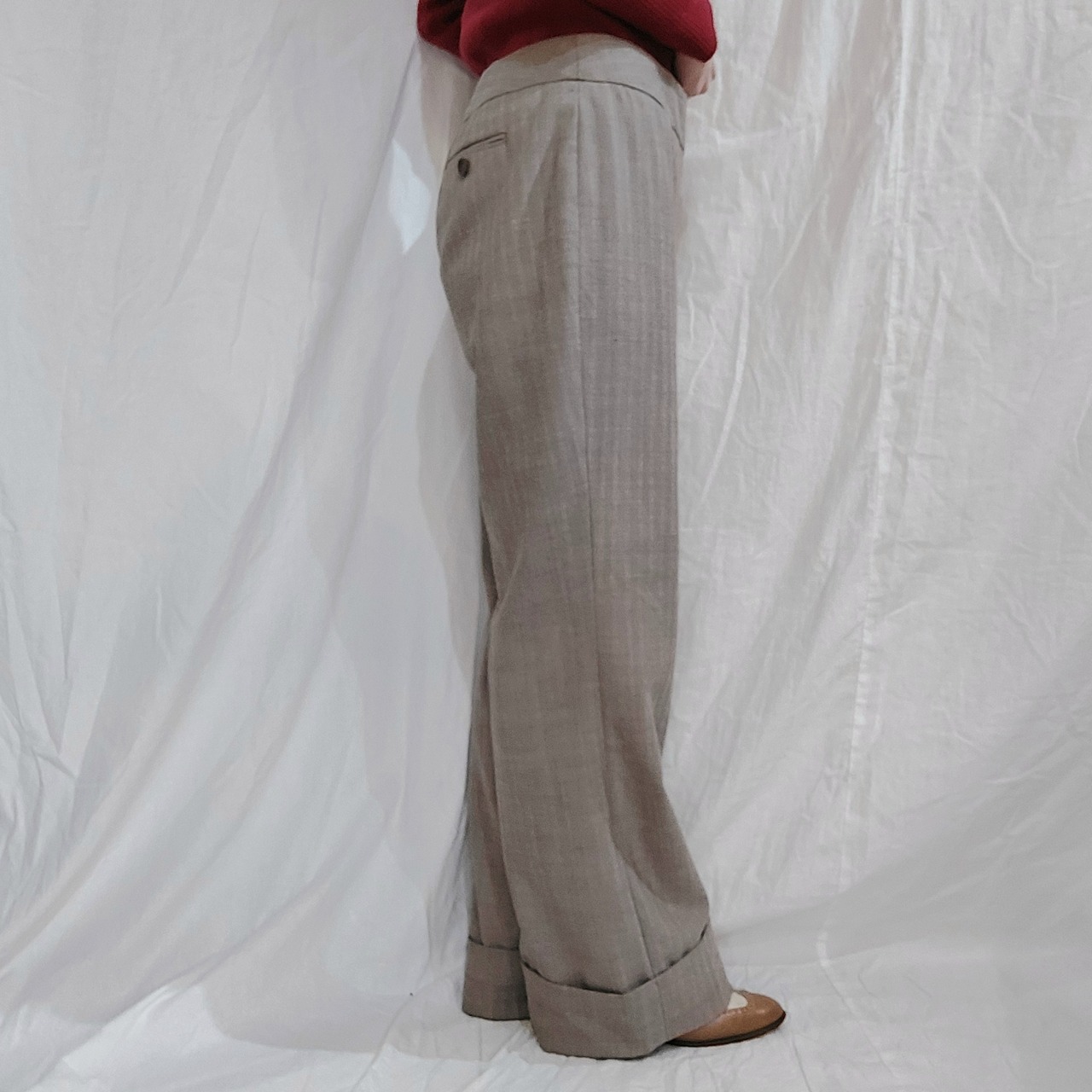 Herringbone wool blended flare slacks[fa-649]ヘリンボーン柄ウールブレンドフレアスラックス