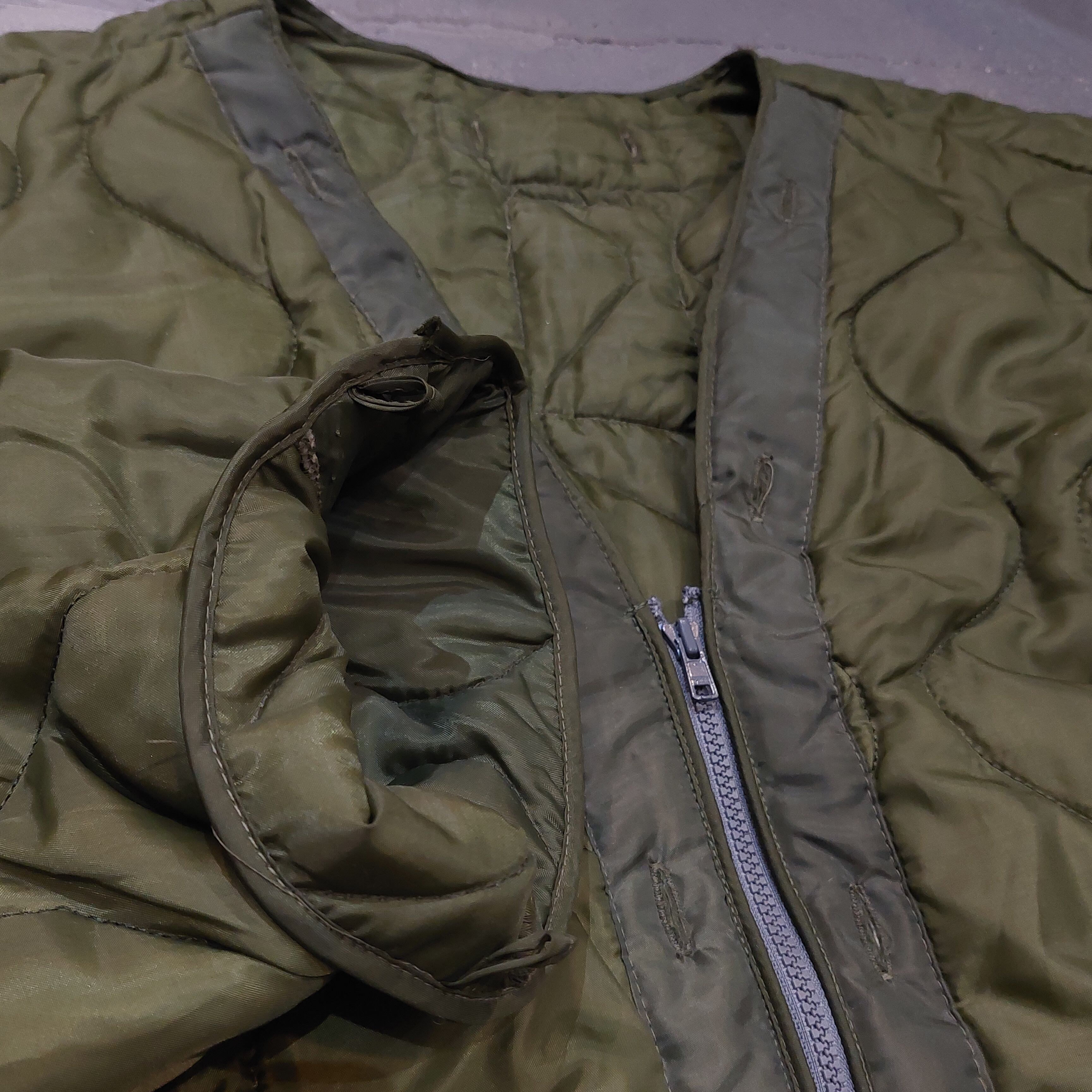 おそらく民間品かレプリカのキルティングライナーにファスナーと、イギリス軍のファティーグパンツのポケットを付けました。