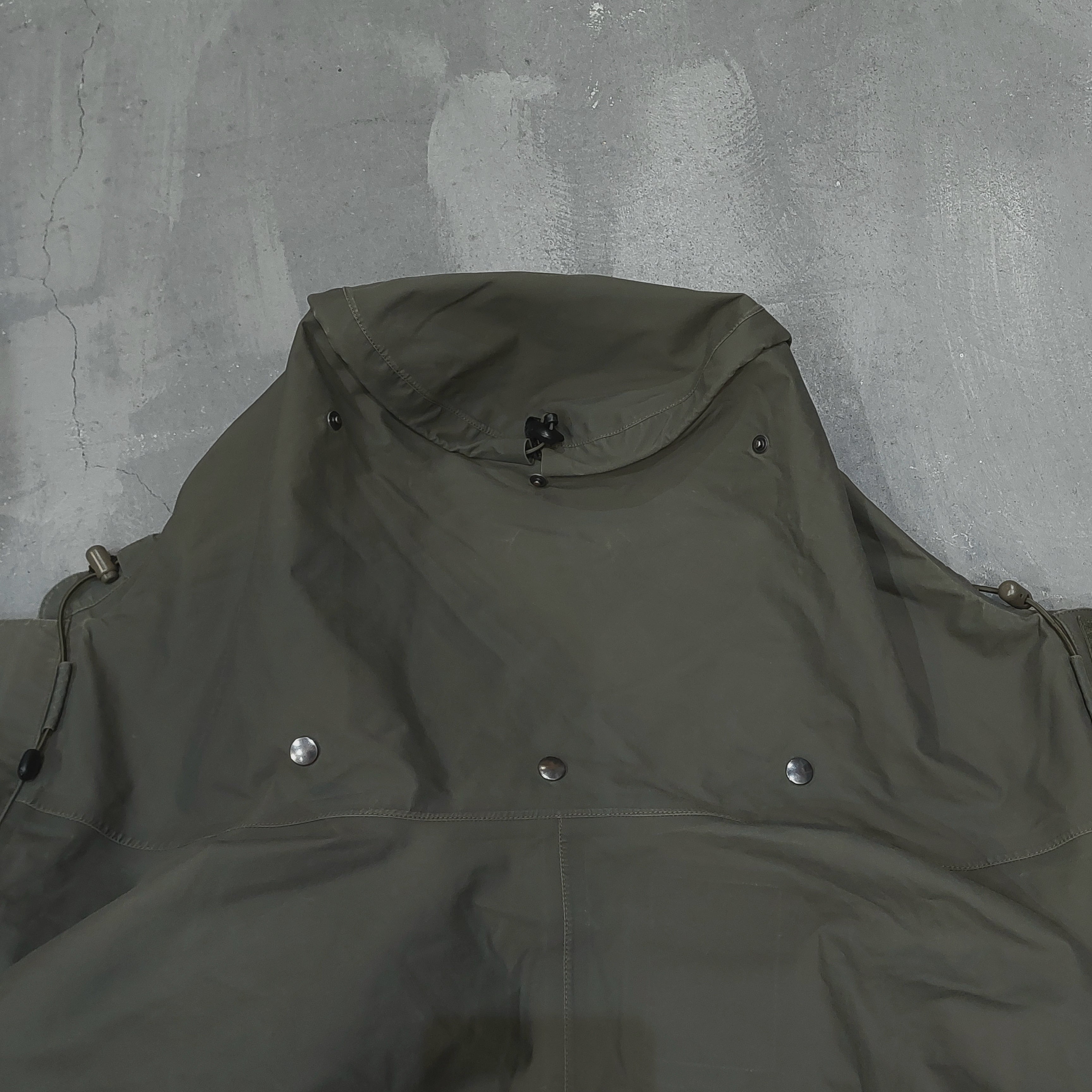 フードやウエスト、裾にドローコードが通してあり絞って調整できます。