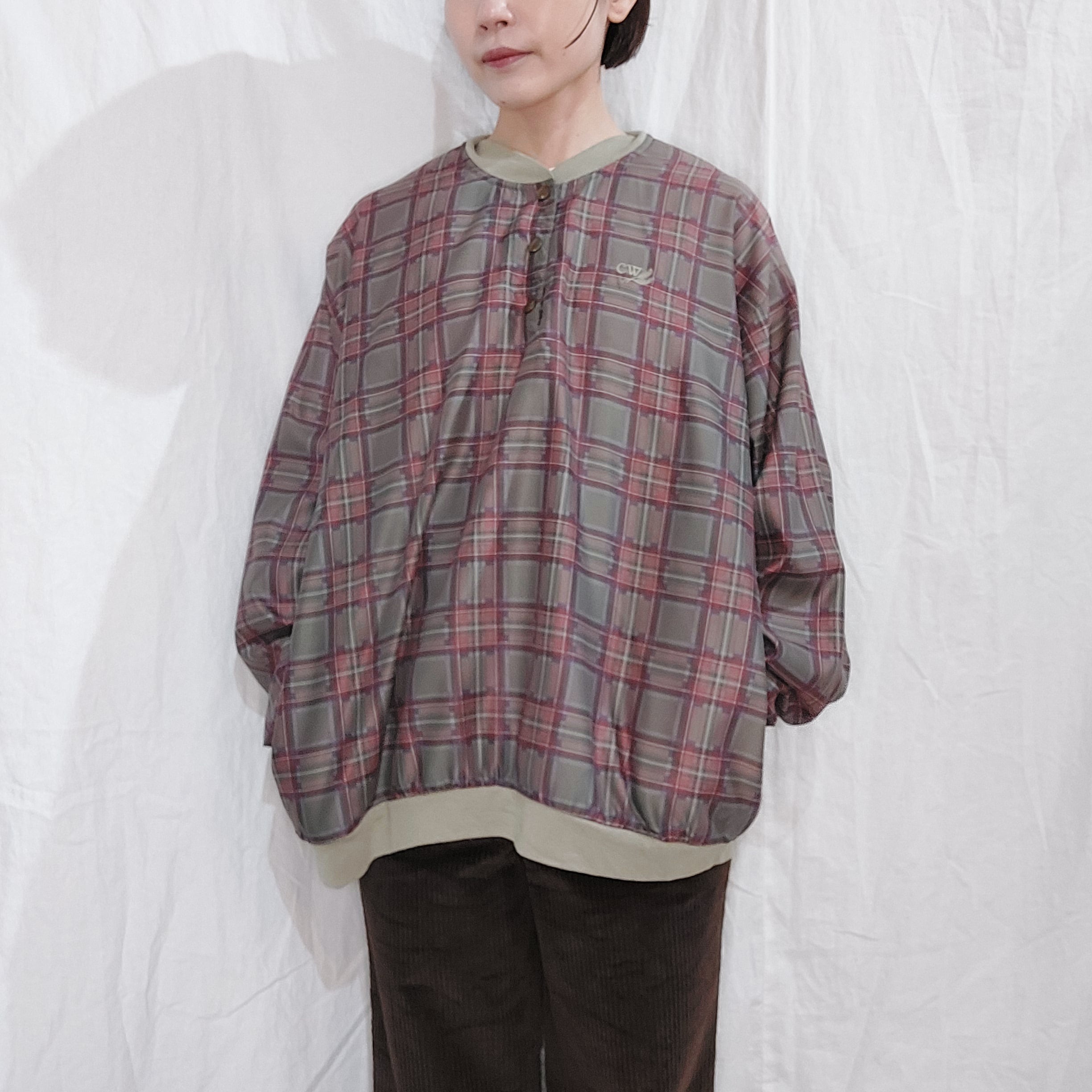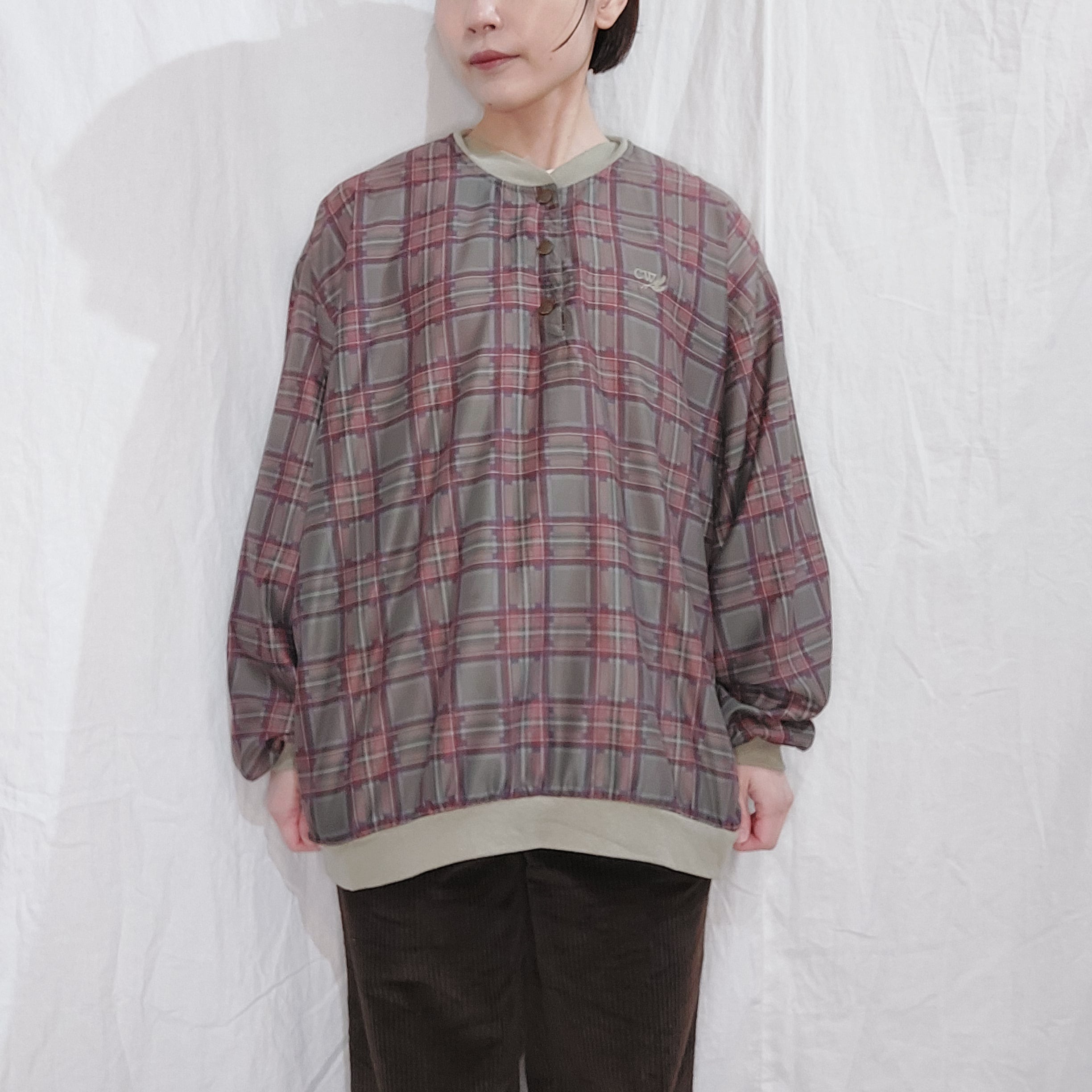 チェック柄ヘンリーネックプルオーバージャケットです。