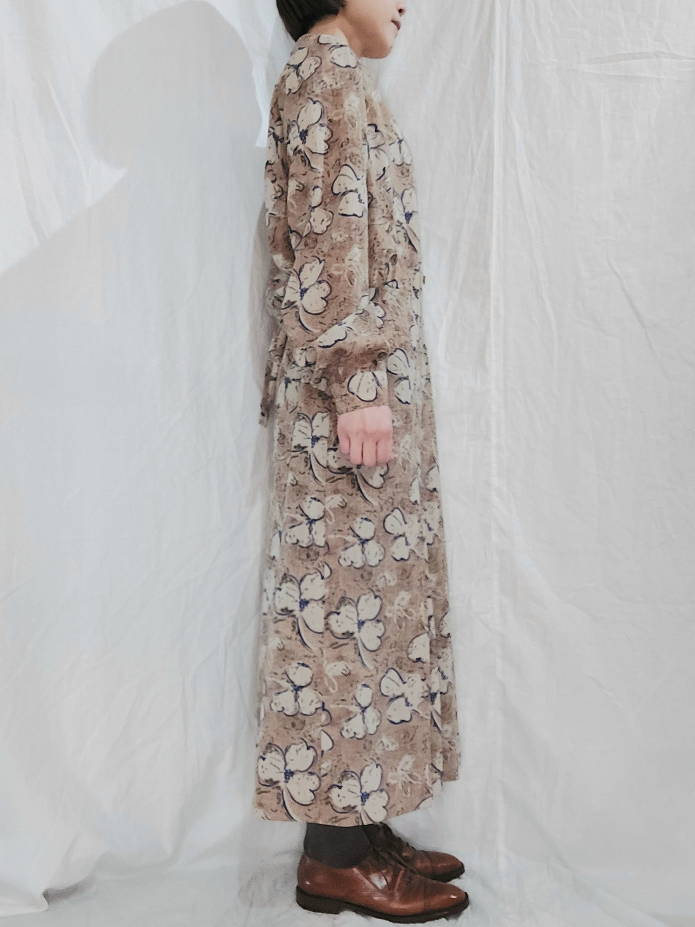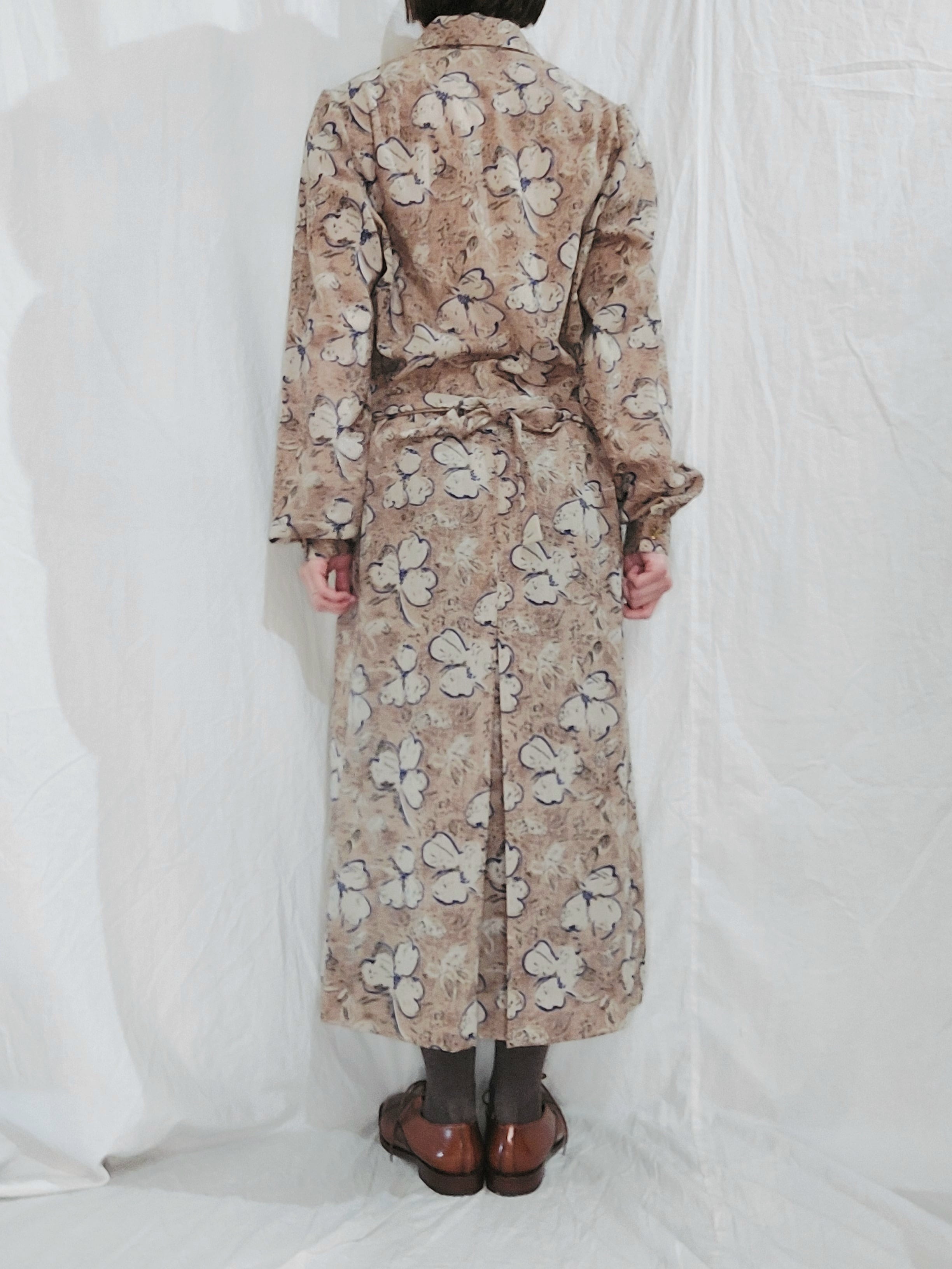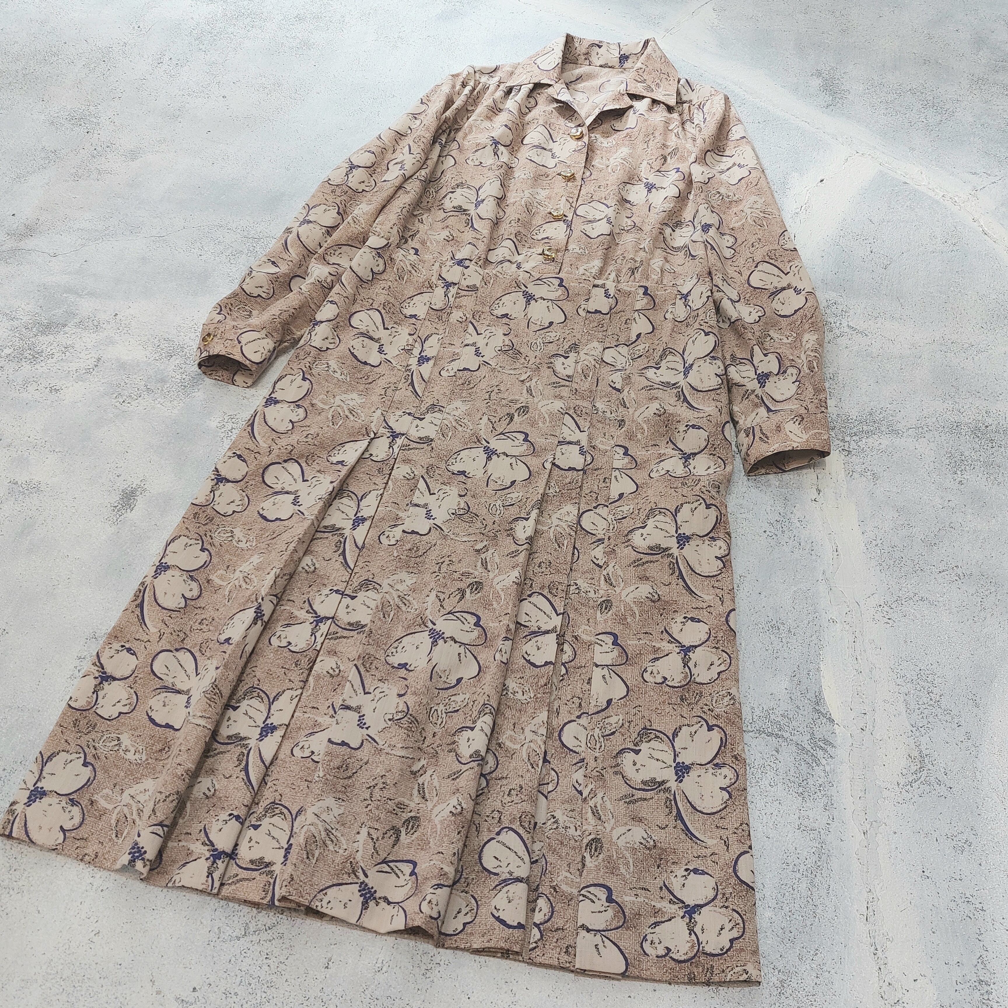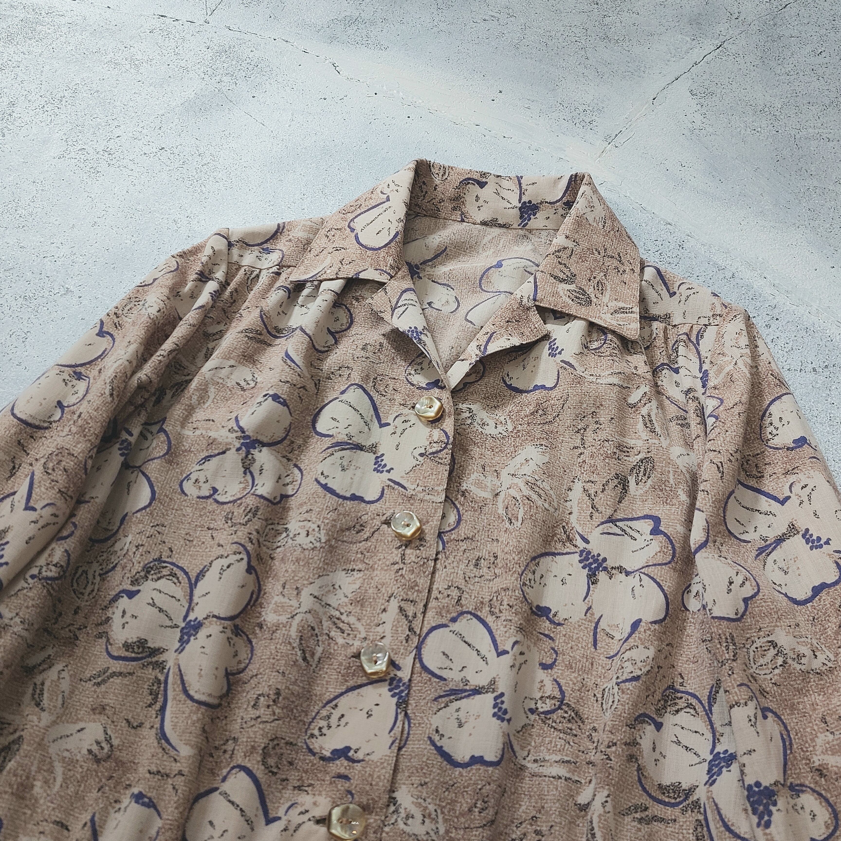 Flower pattern open collar one-piece[m-1424]花柄開襟ワンピース
