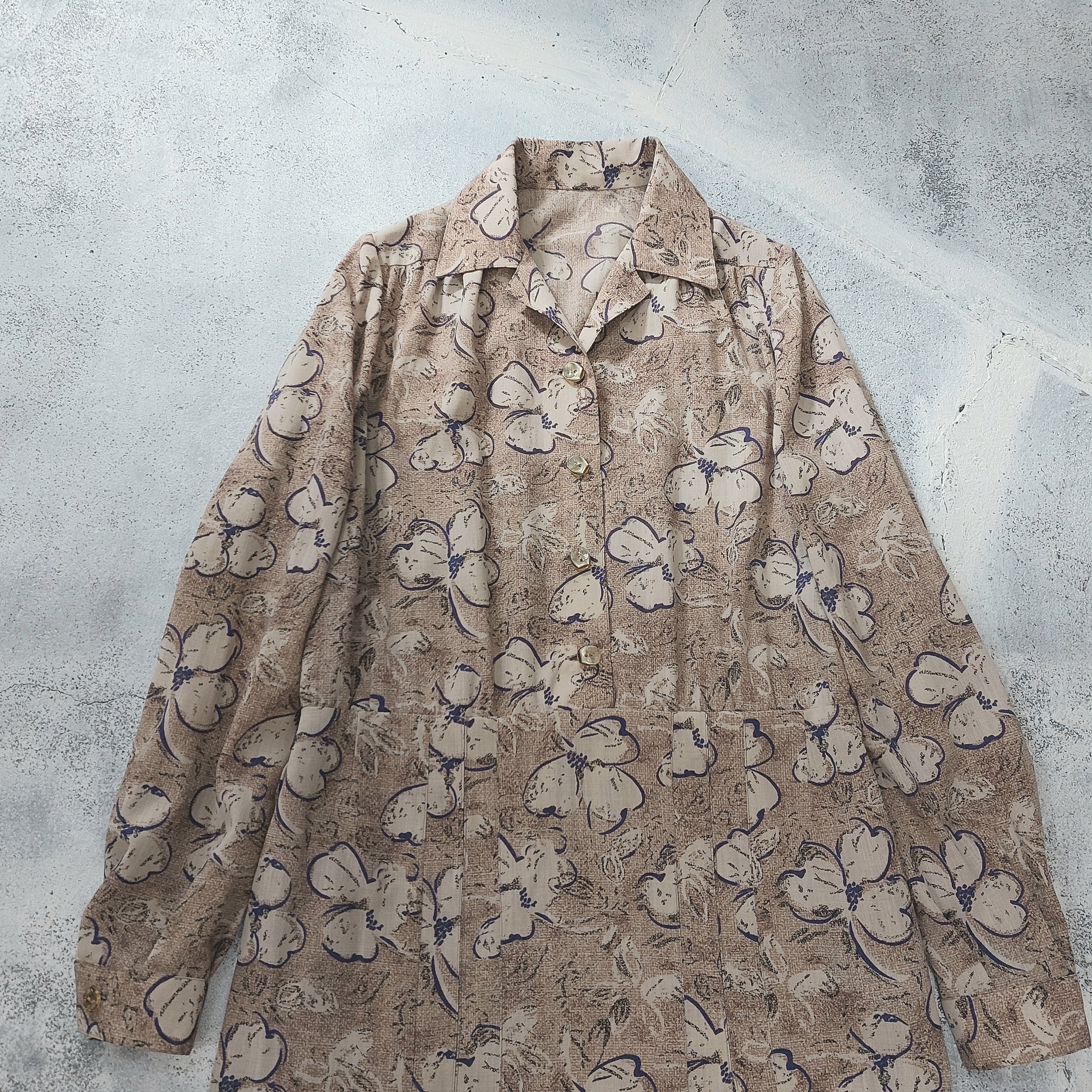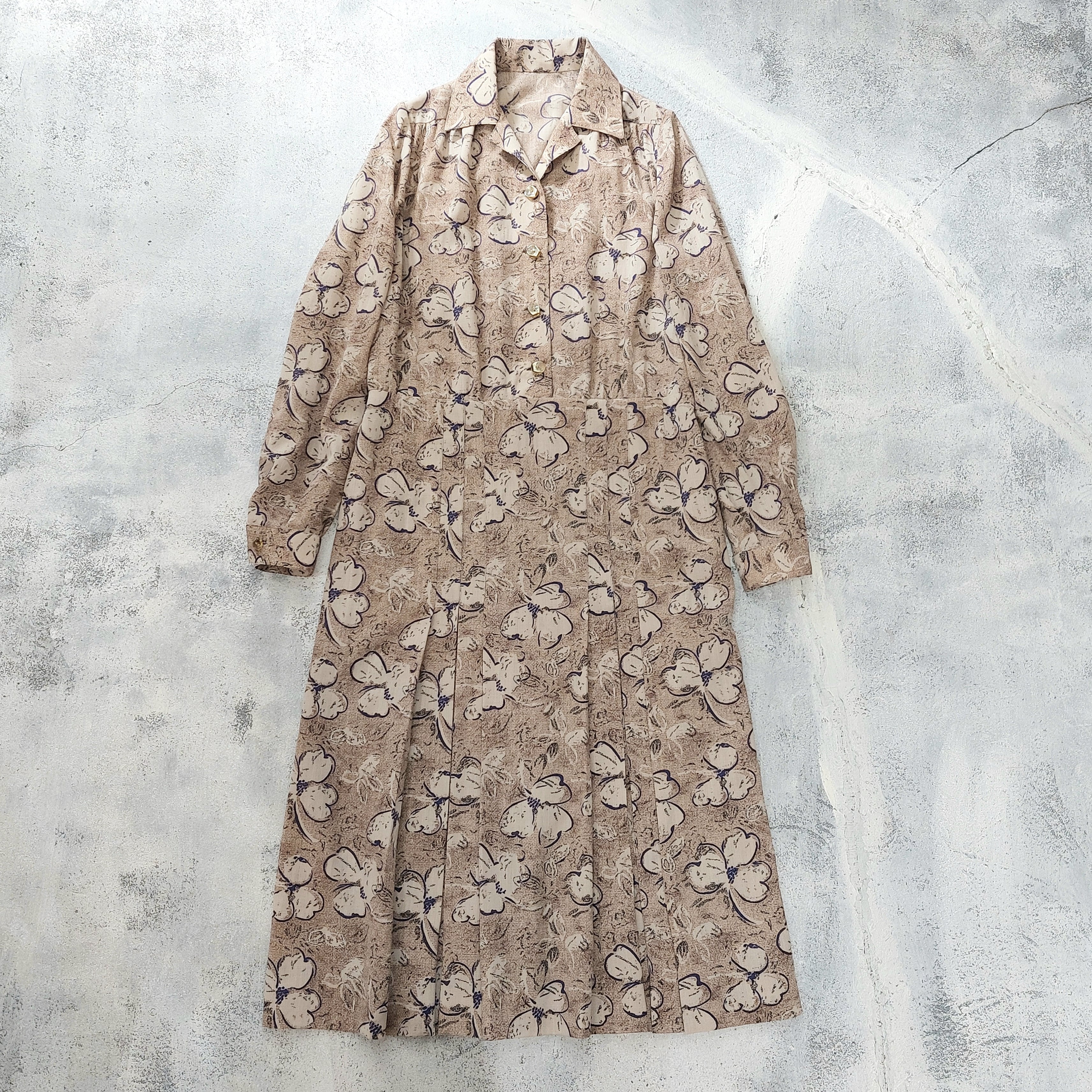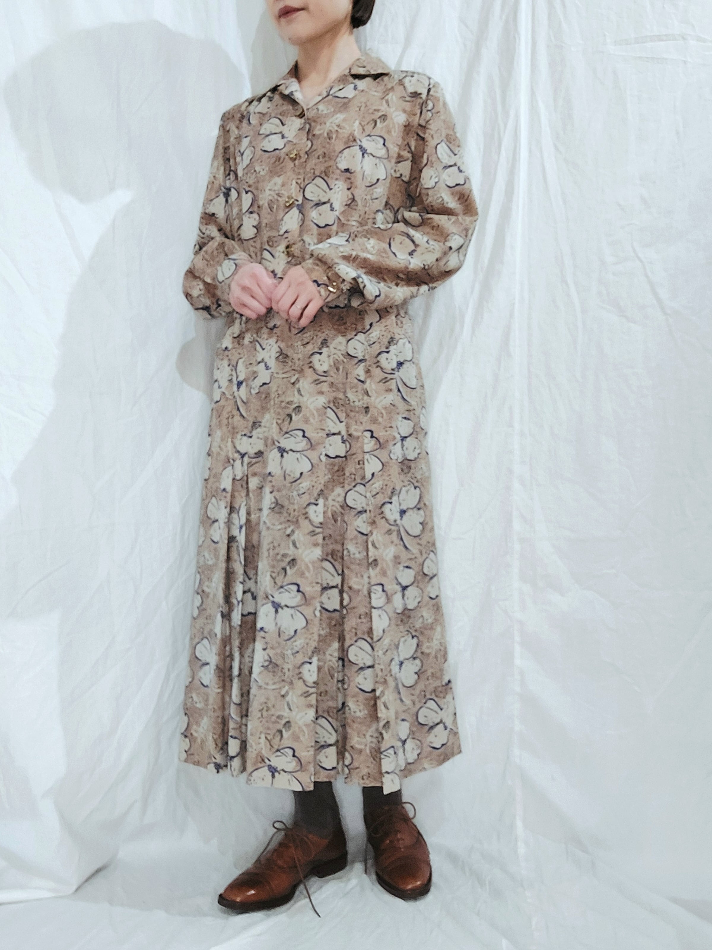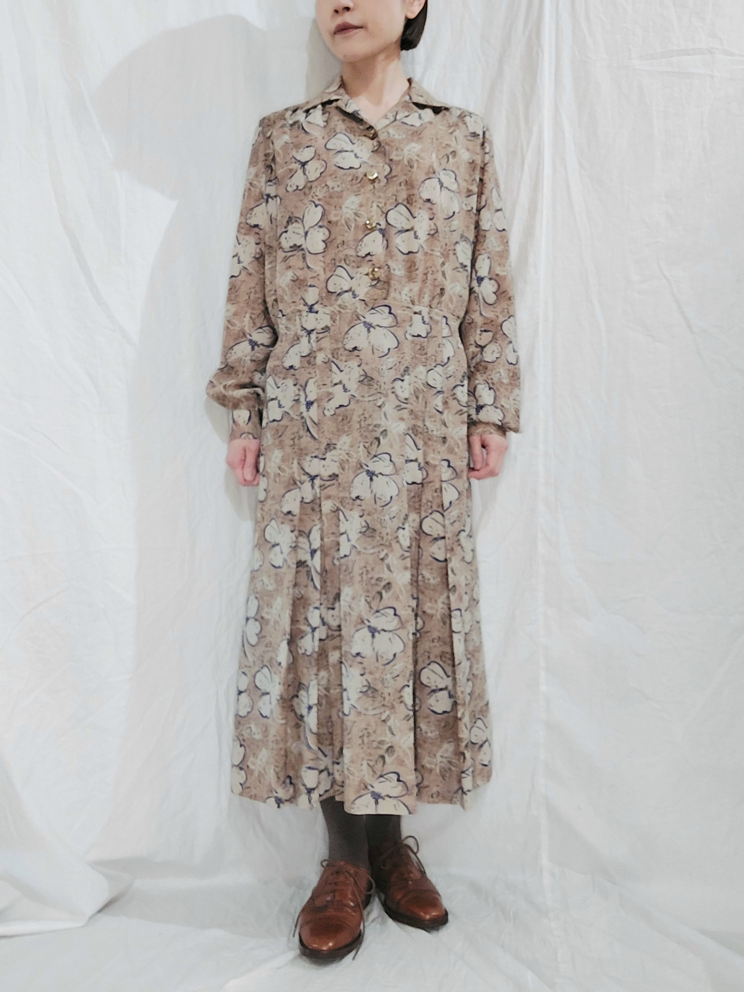 Flower pattern open collar one-piece[m-1424]花柄開襟ワンピース