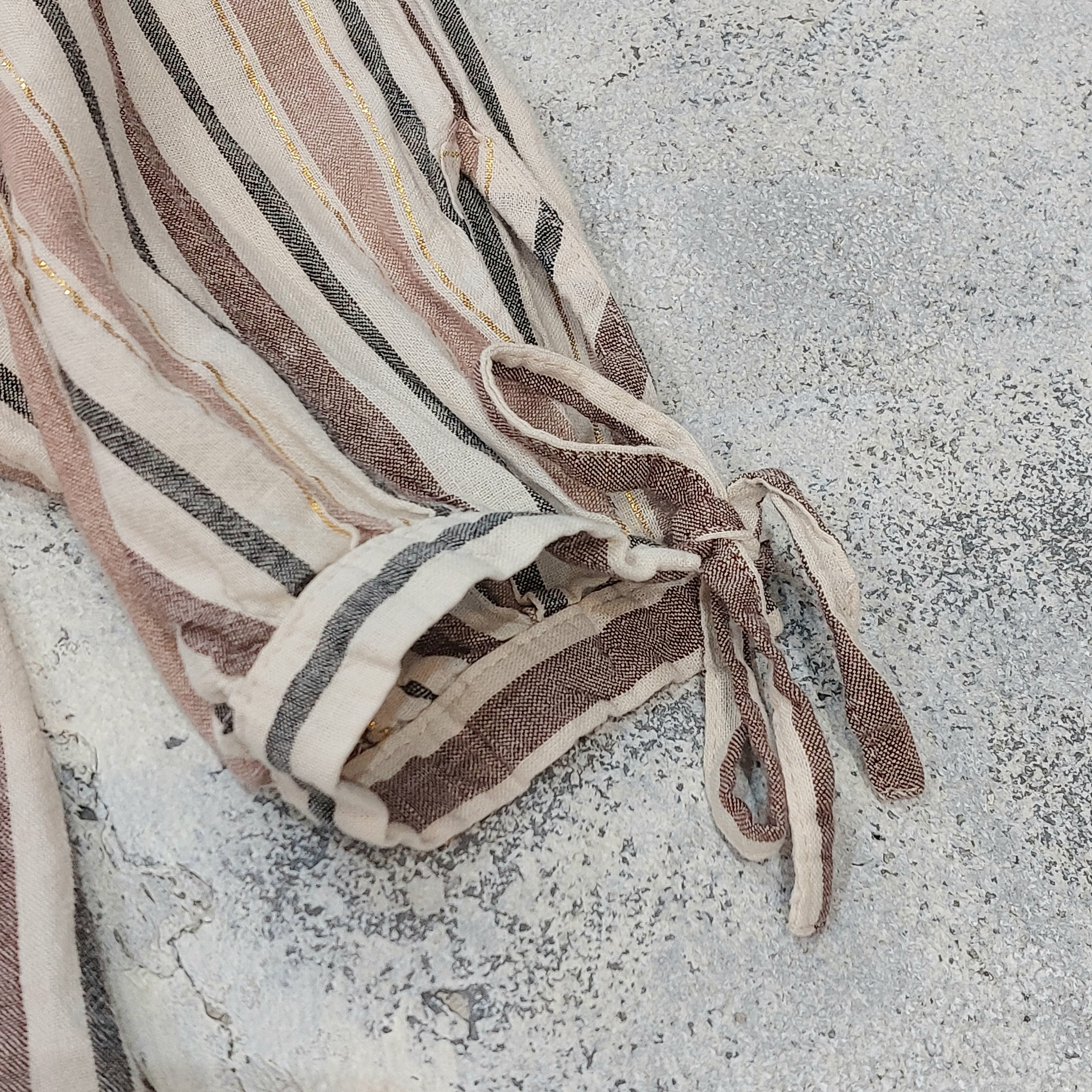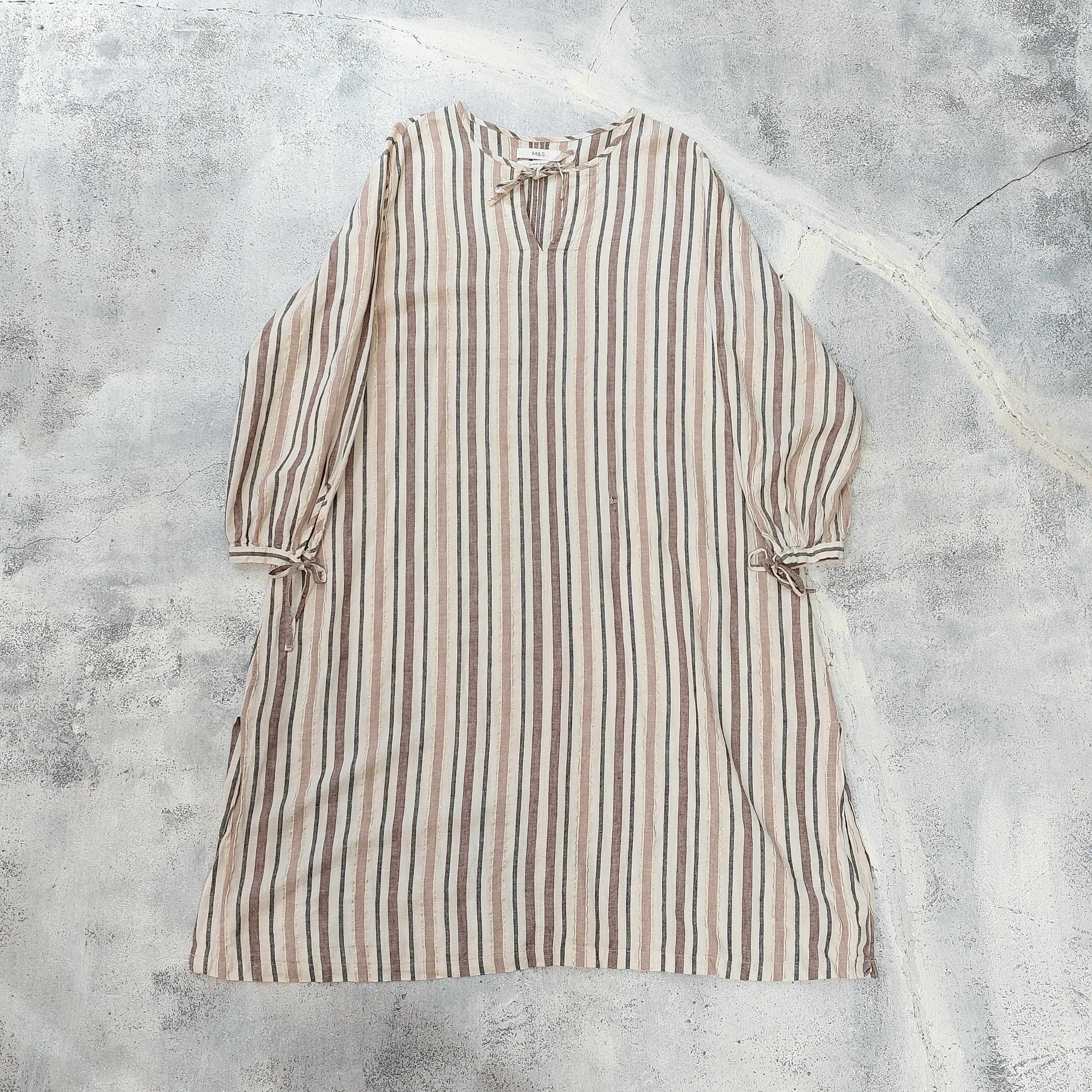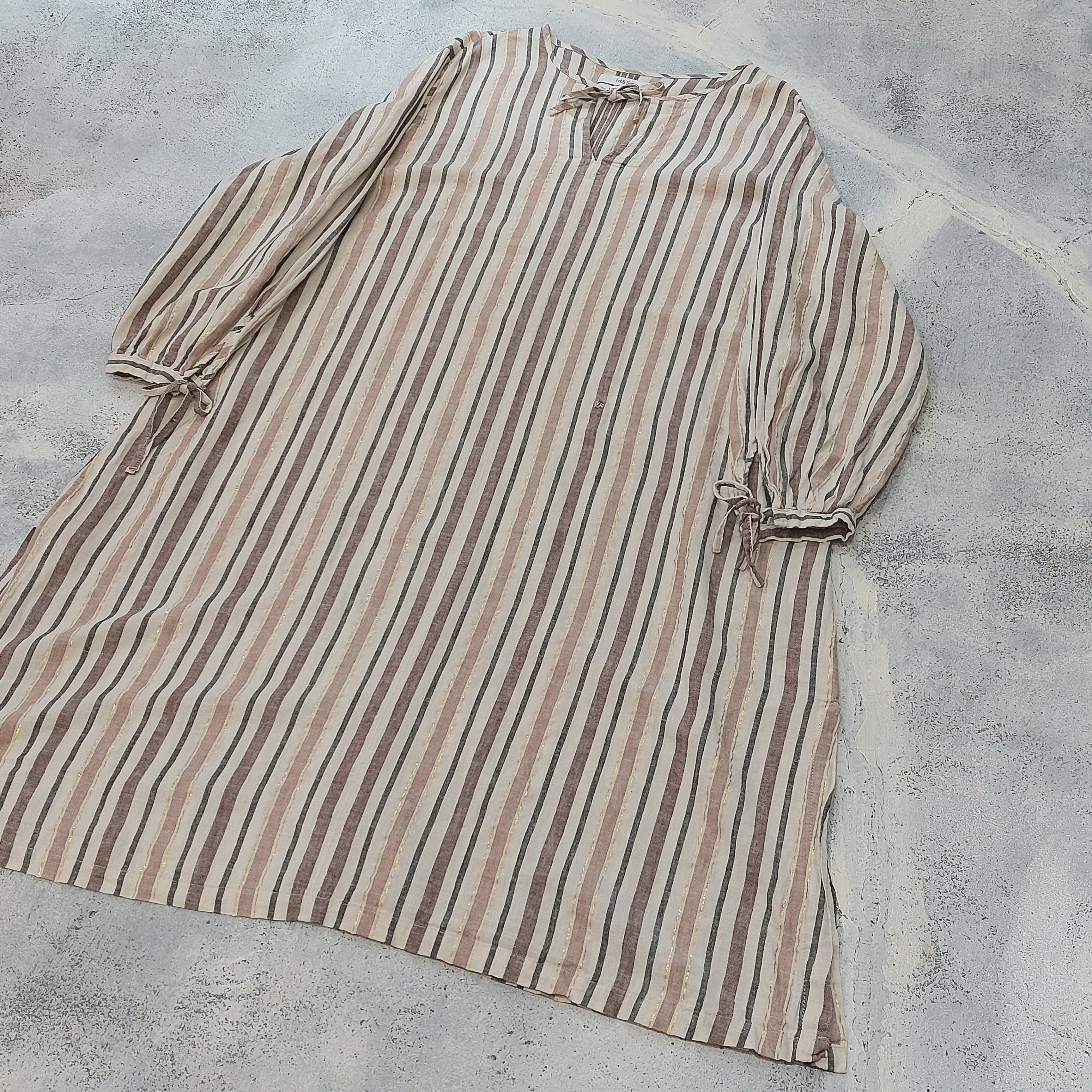 MARKS&SPENCER Stripe pattern linen blended one-piece[m-1420]マークスアンドスペンサー ストライプ柄リネンブレンドワンピース