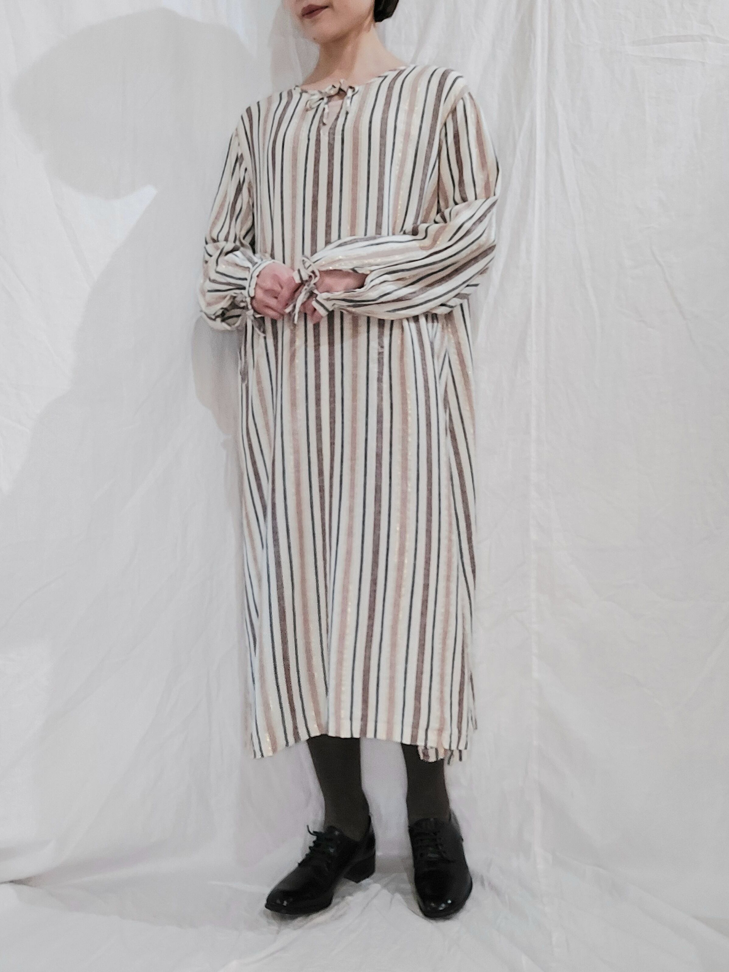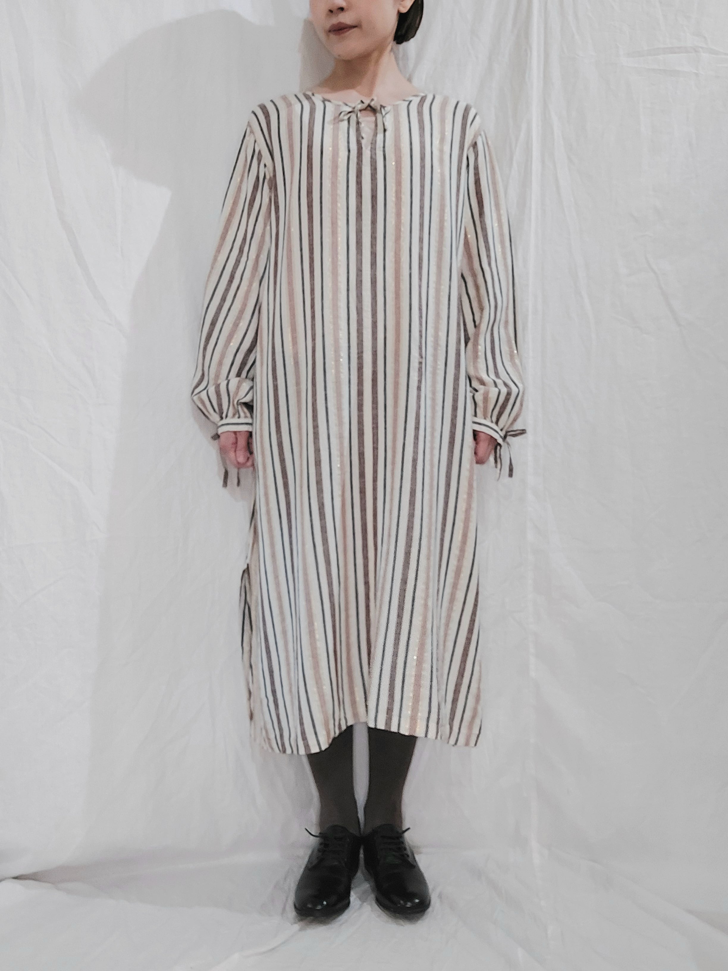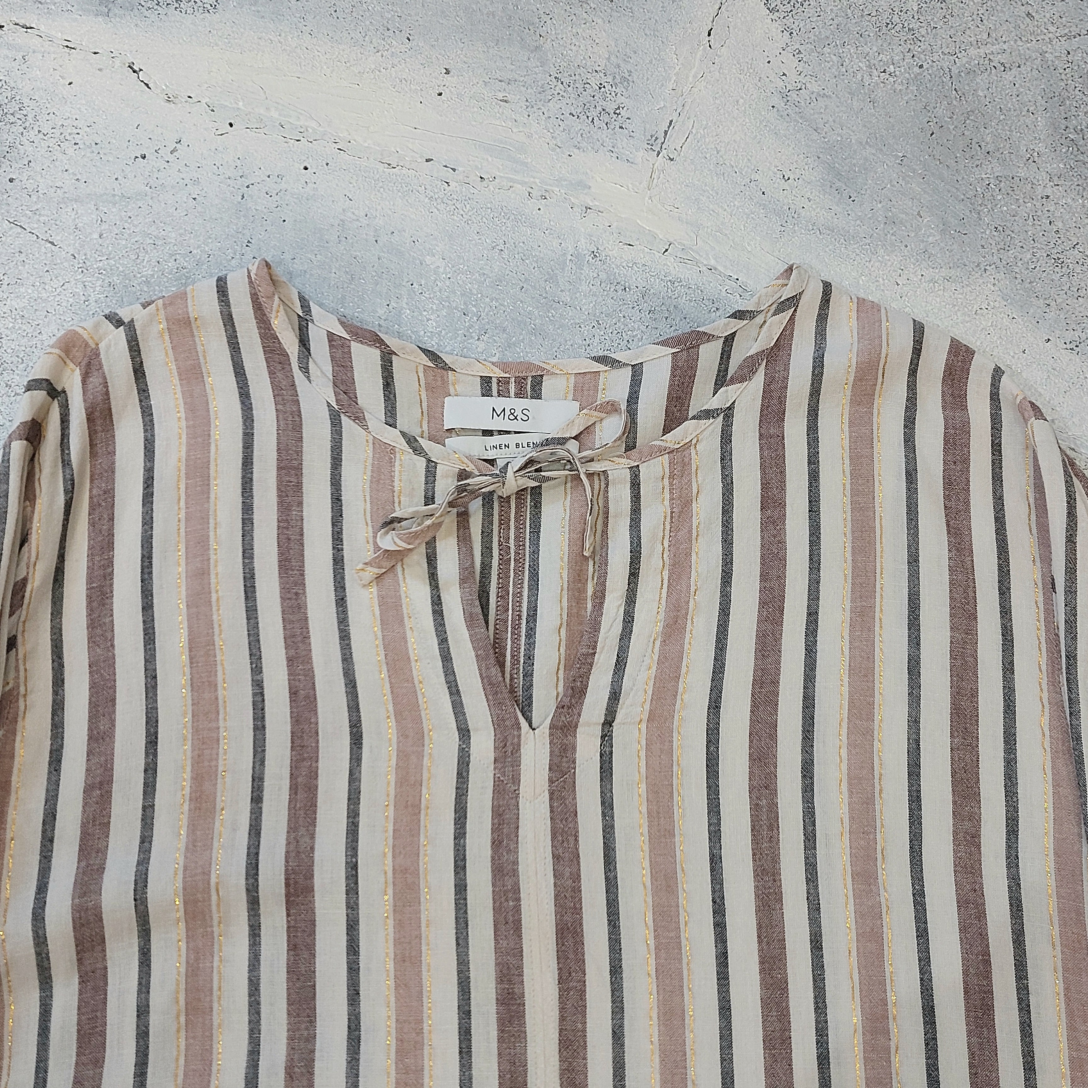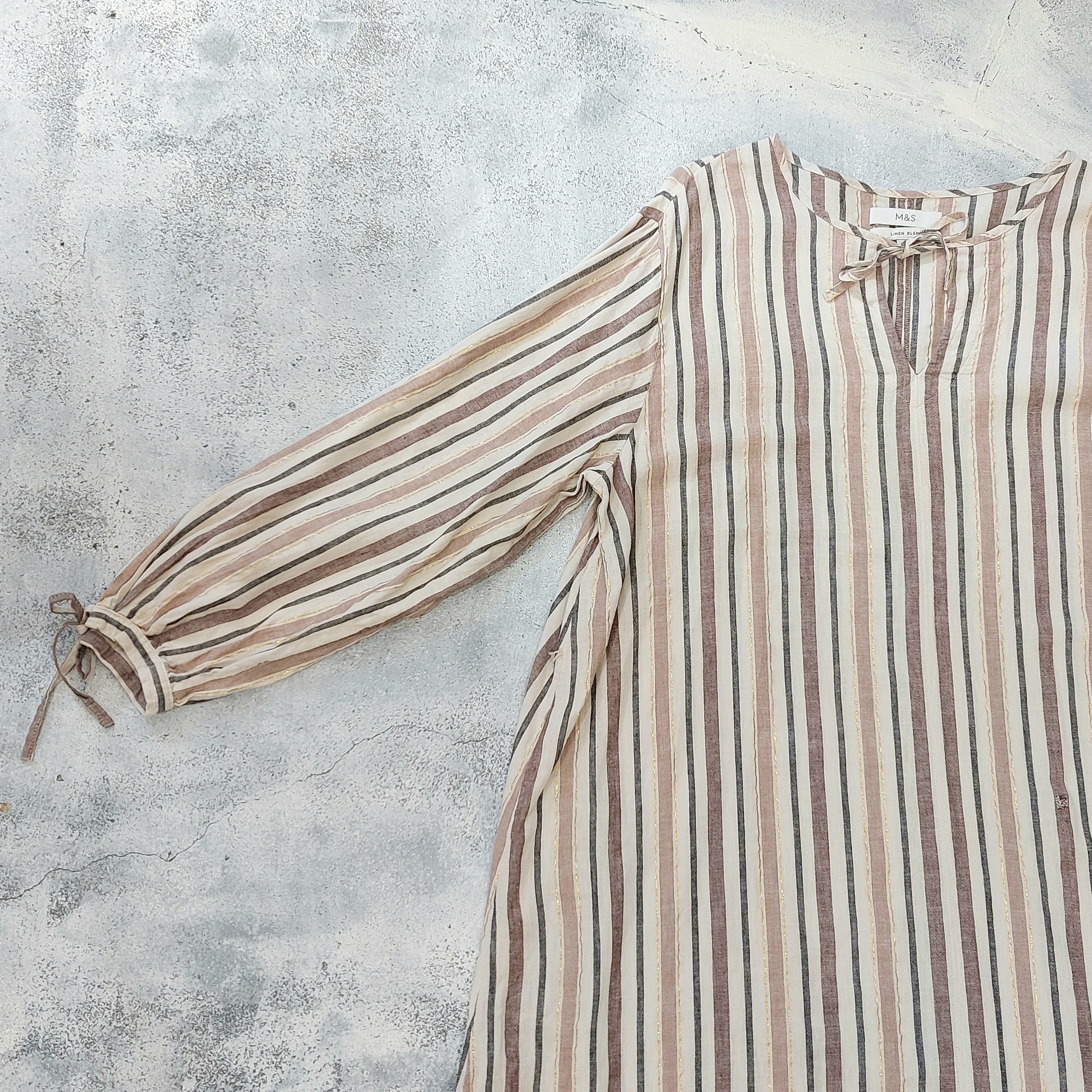 MARKS&SPENCERのストライプ柄リネンブレンドワンピースです。