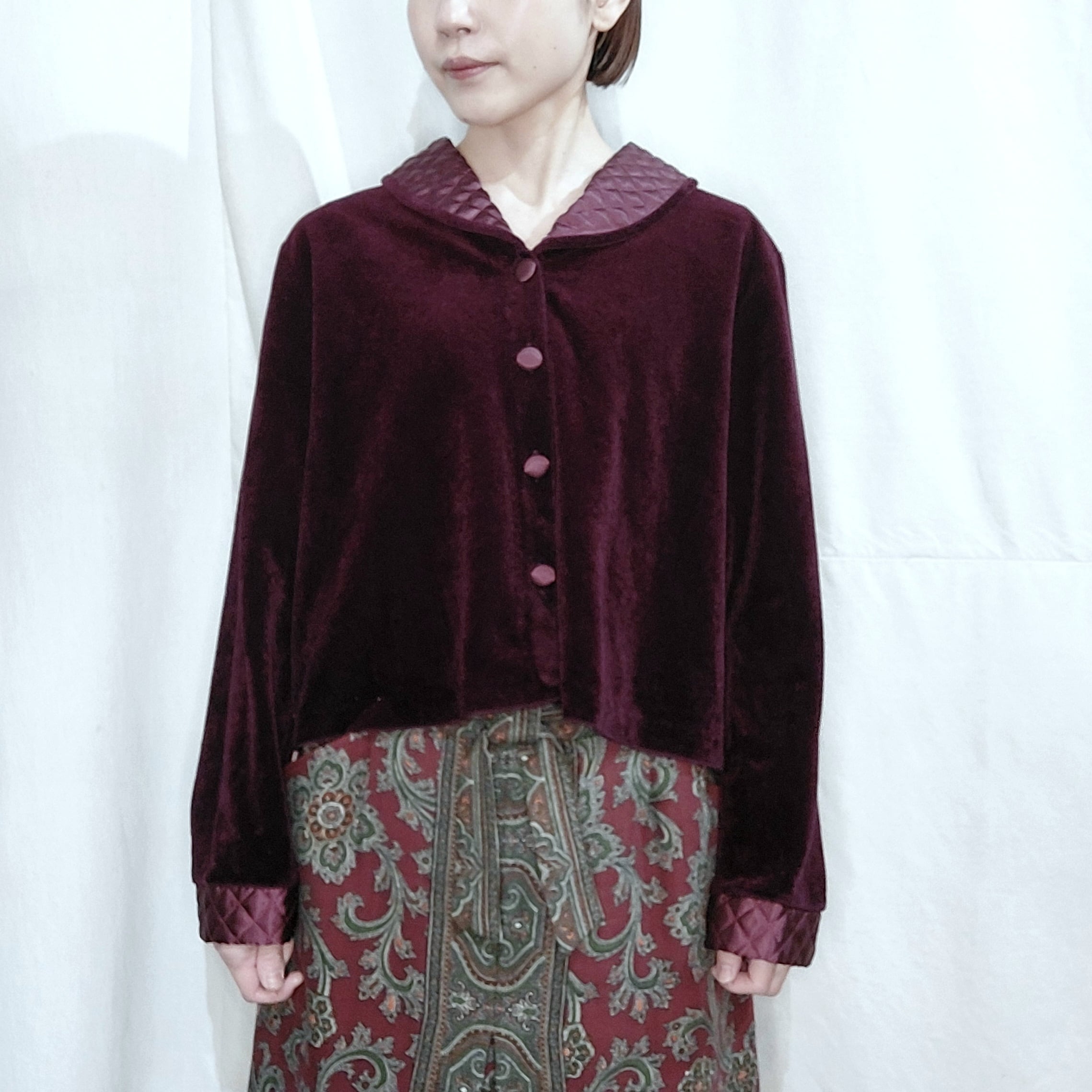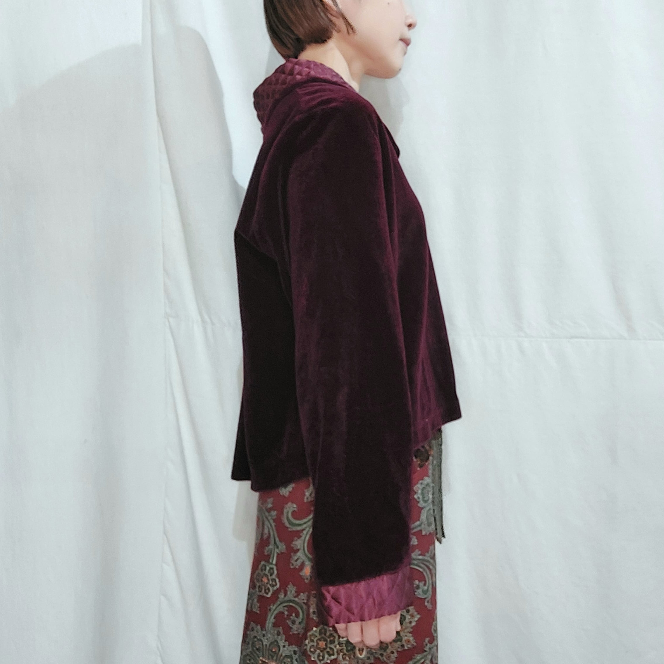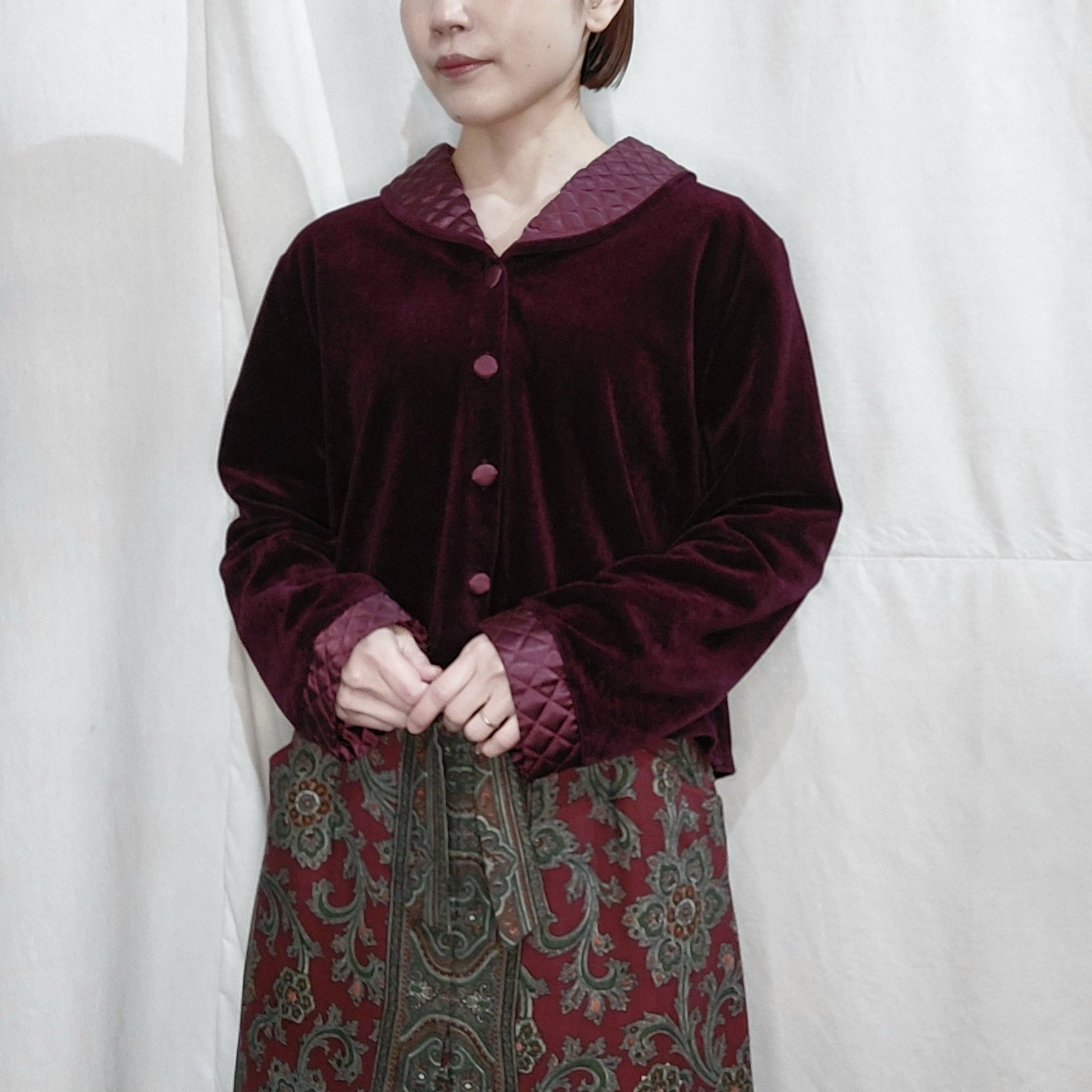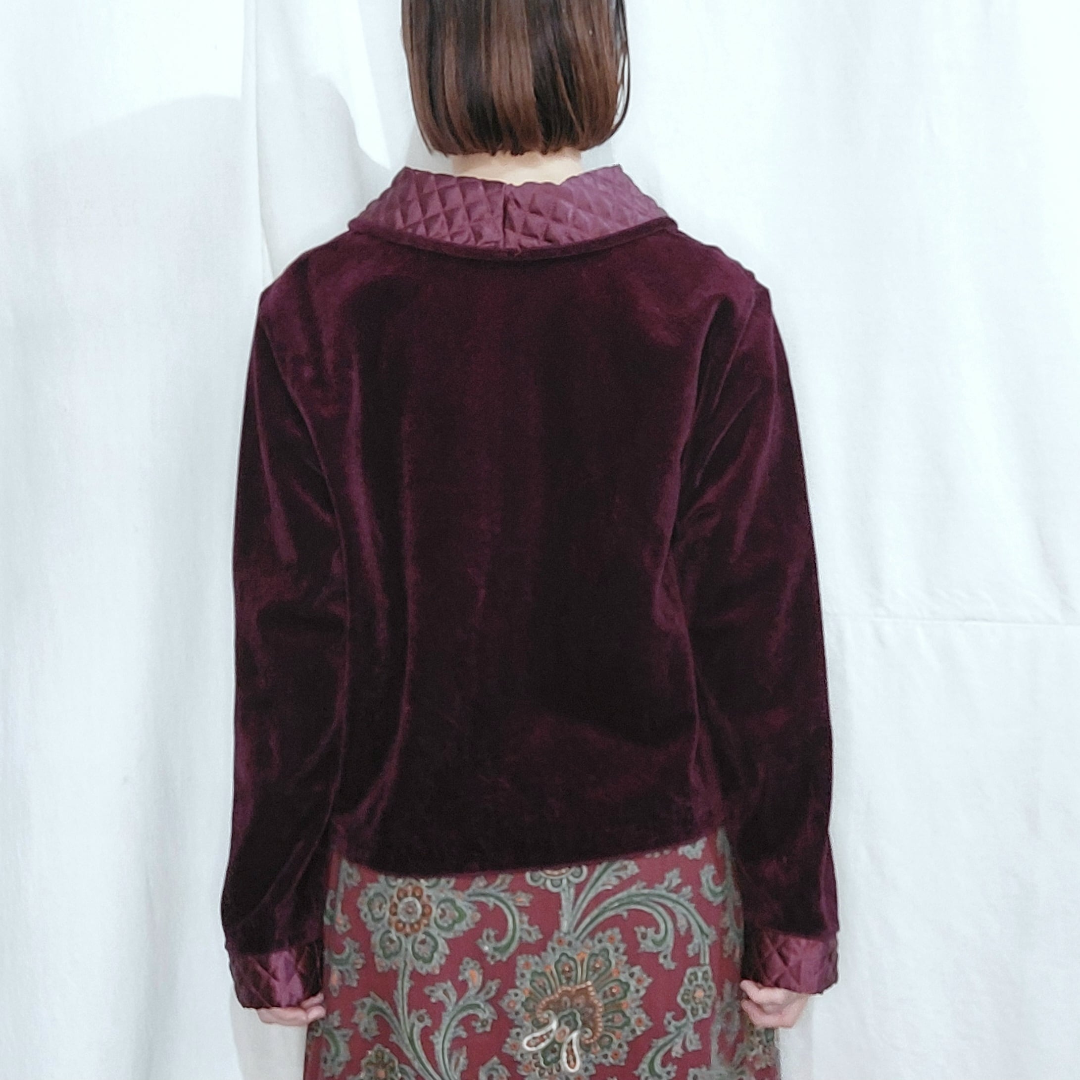 キルティングカラーのベロアジャケットです。