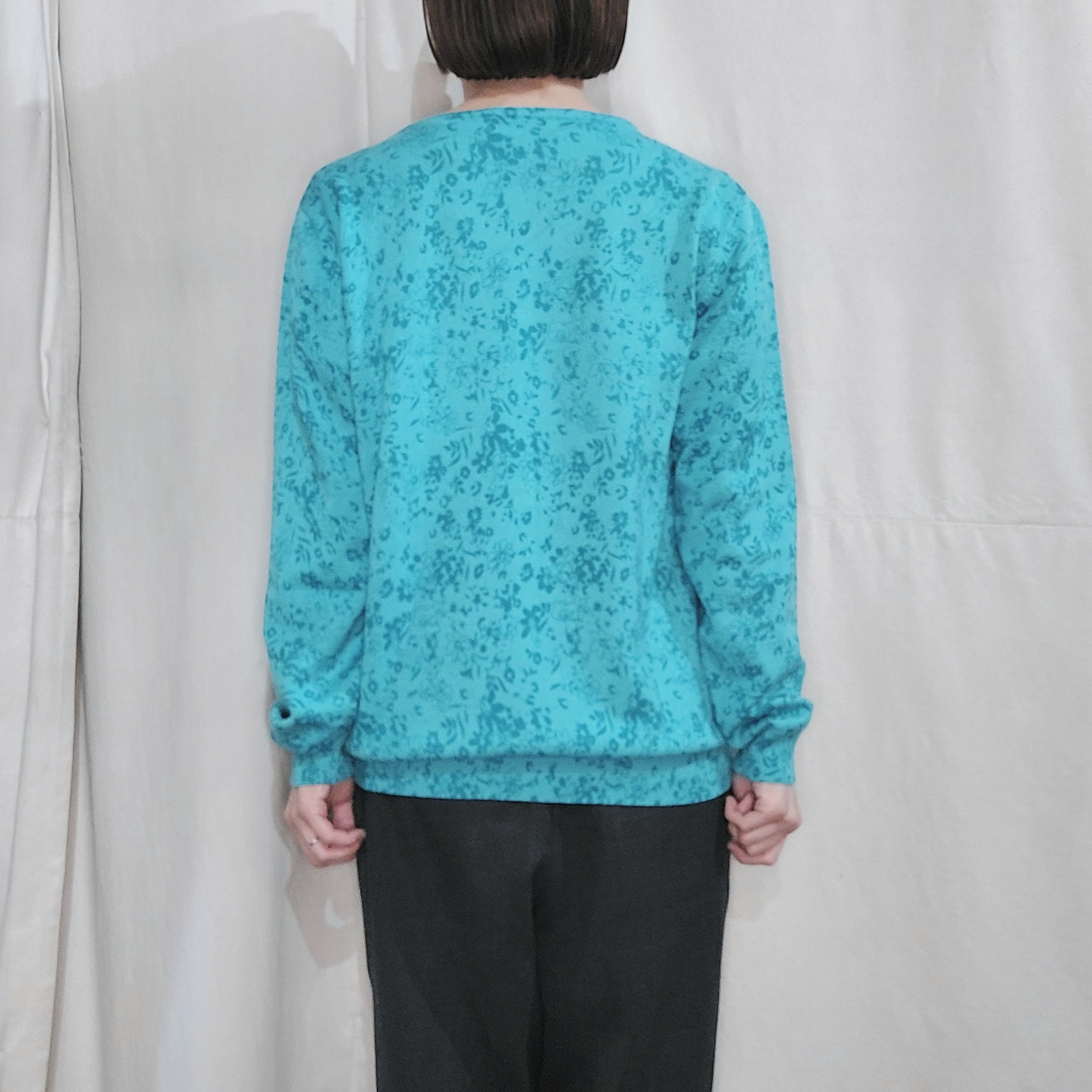 ボタニカル柄のニットセーターです。