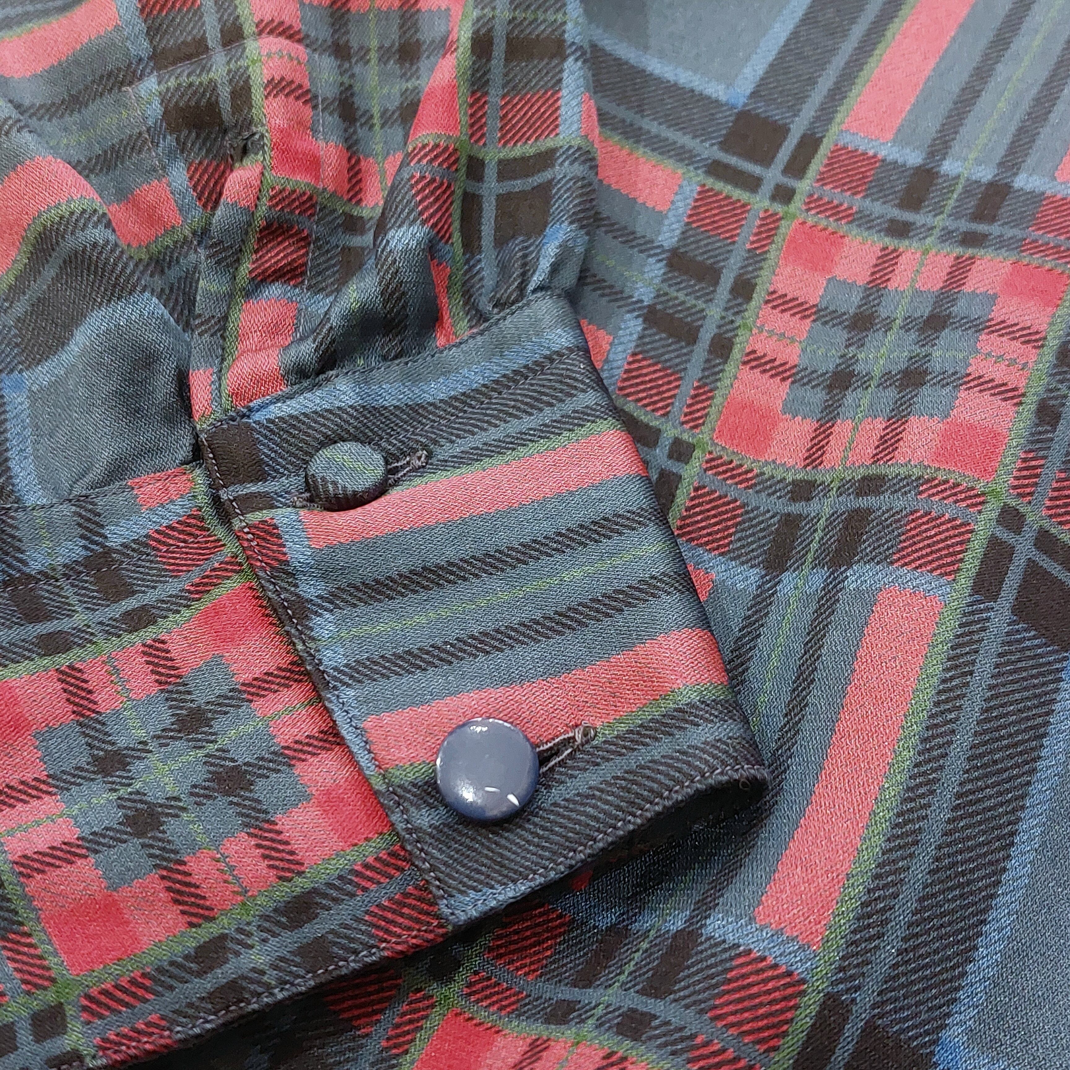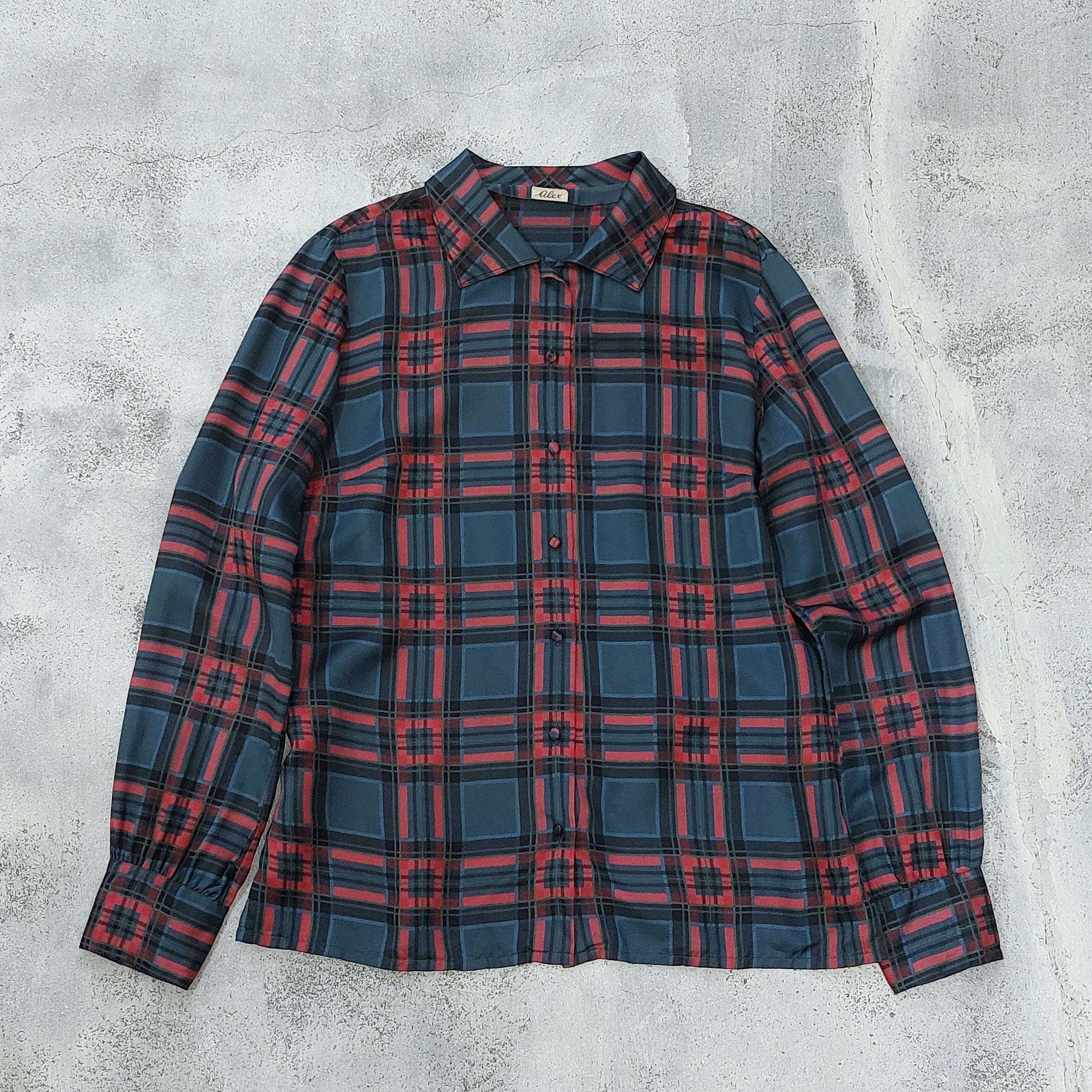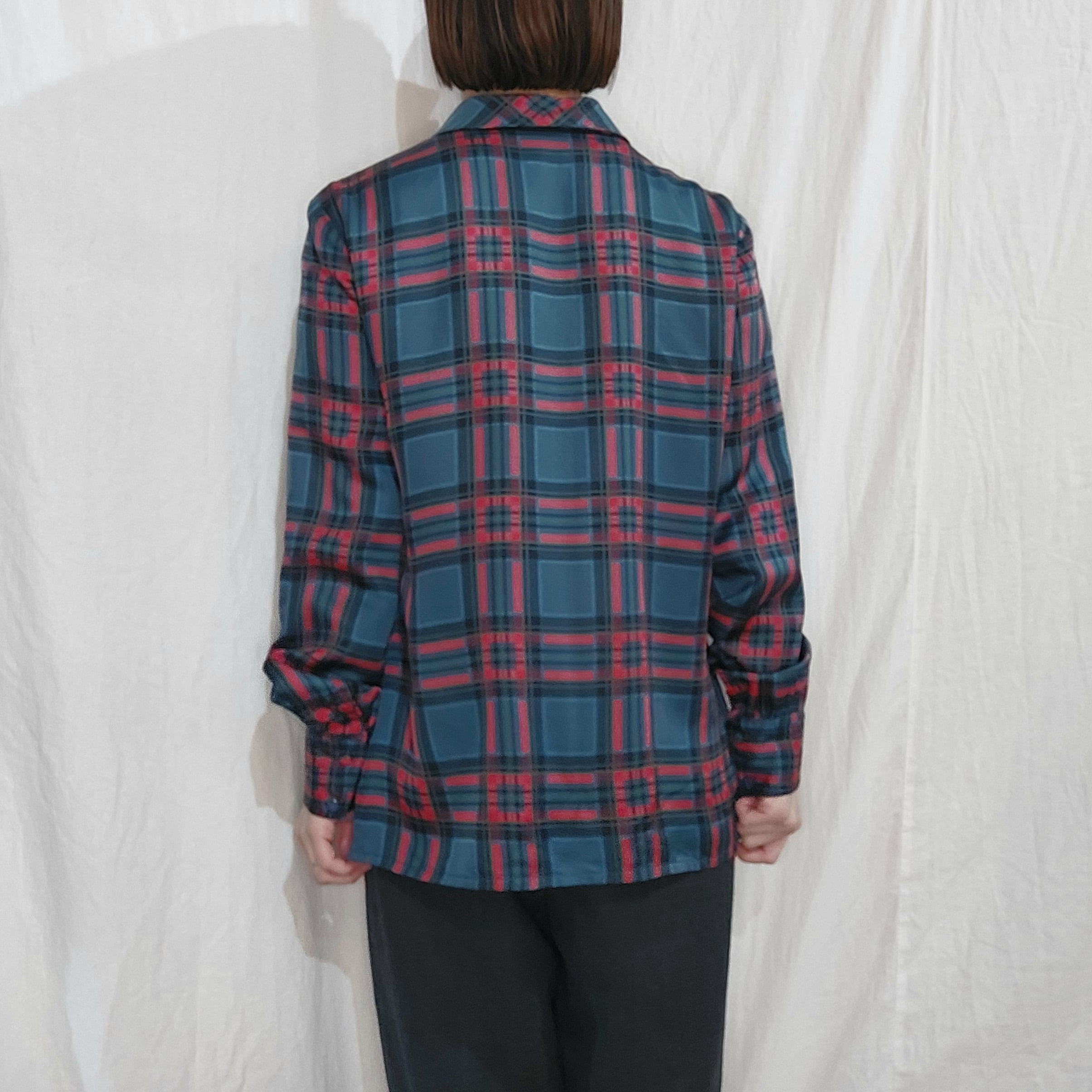 ヴィンテージのチェック柄シルクブラウスです。