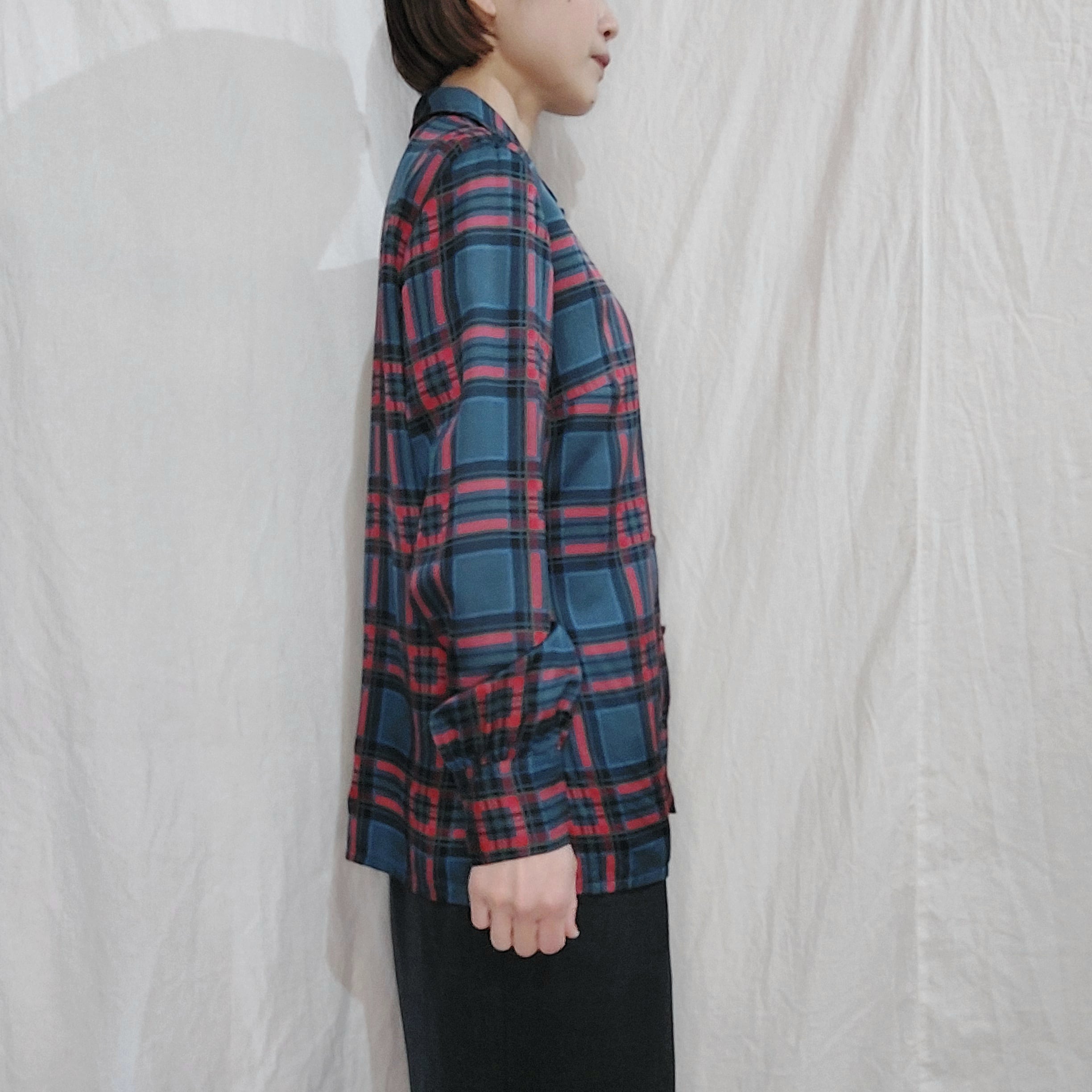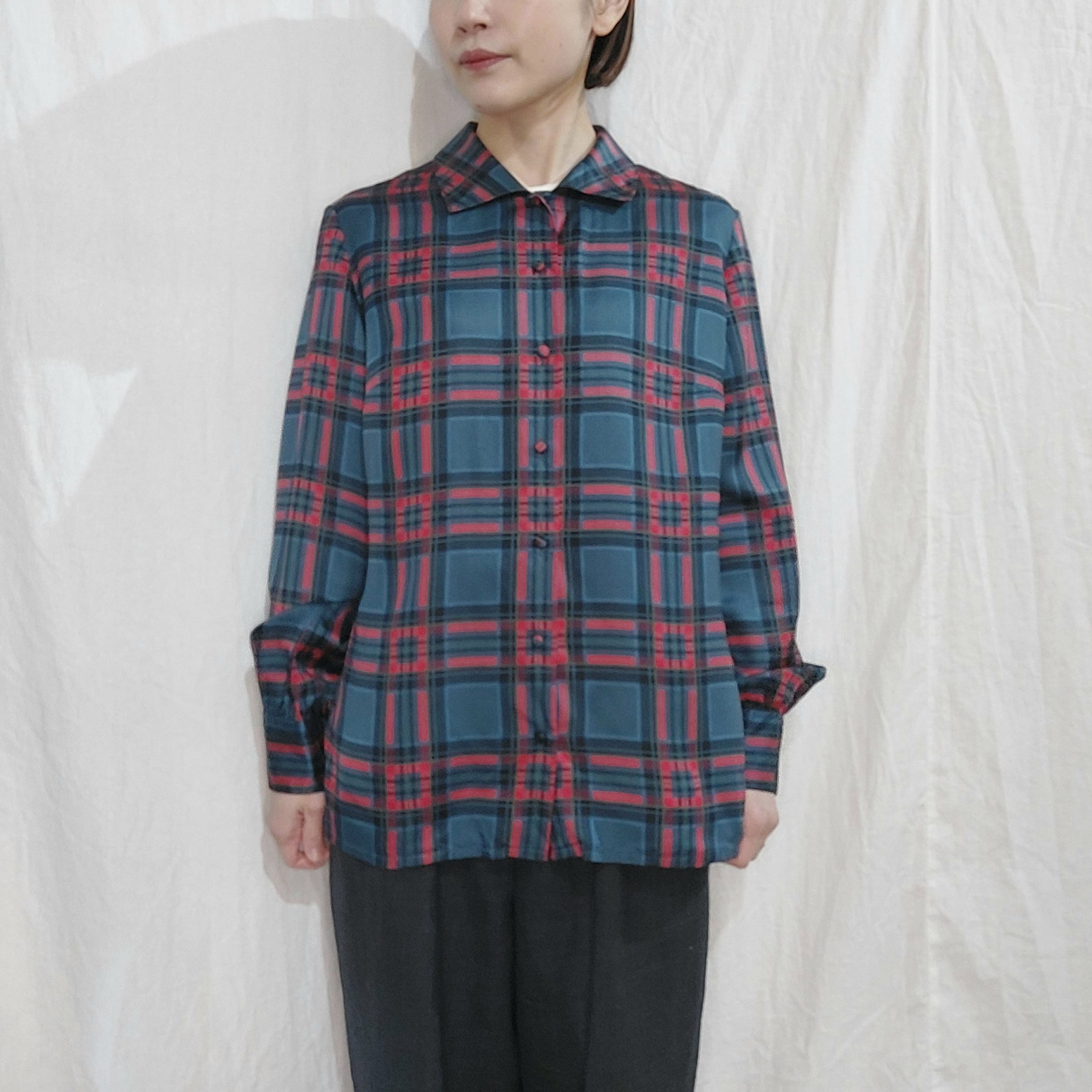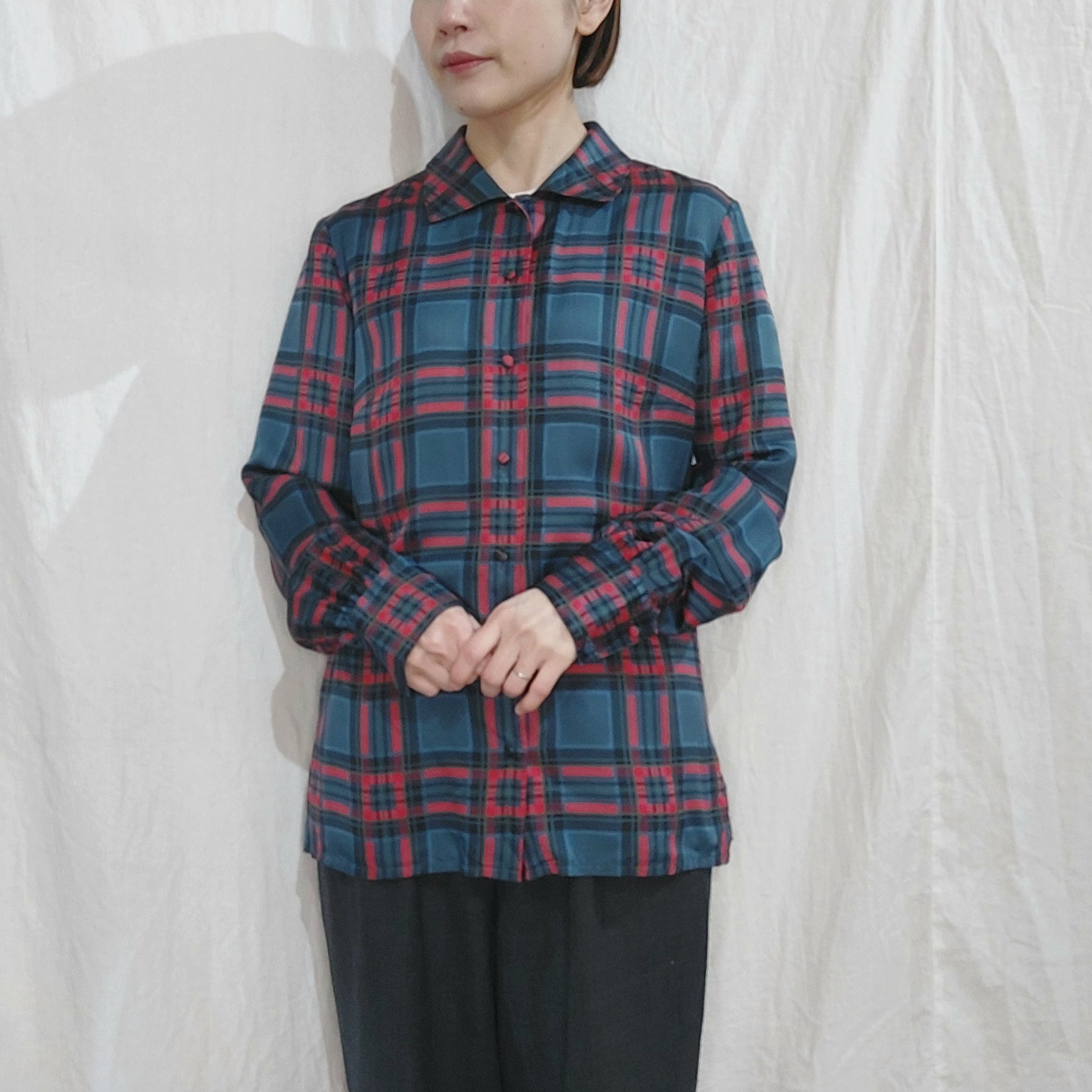 Vintage check pattern silk blouse / Made in Italy[m-1372]イタリア製ヴィンテージチェック柄シルクブラウス