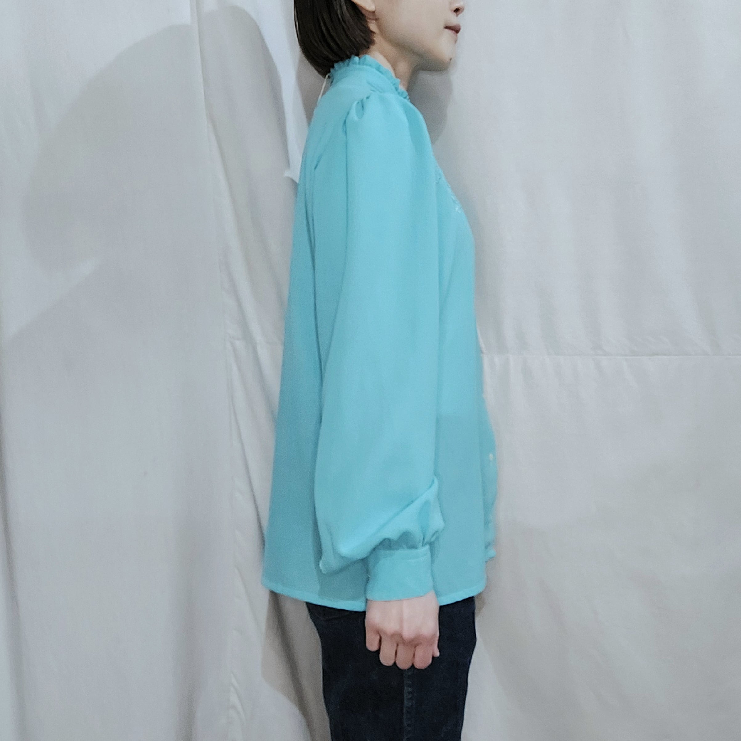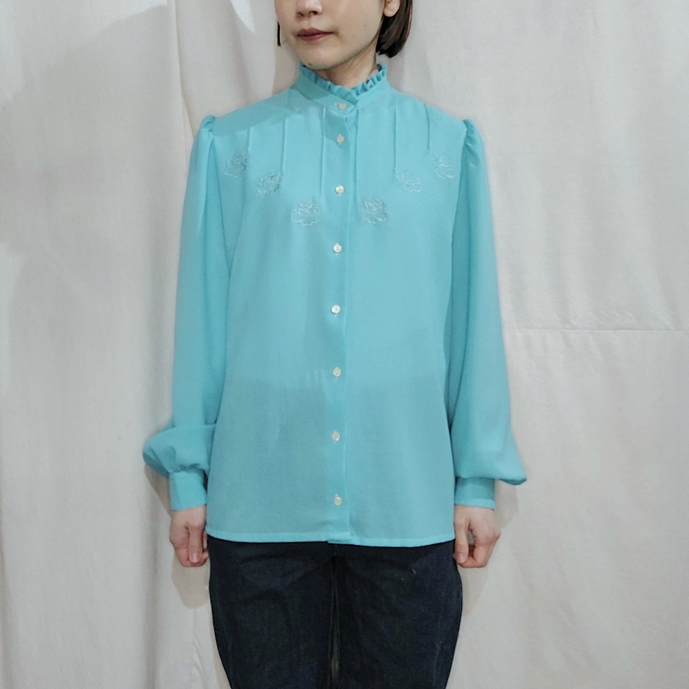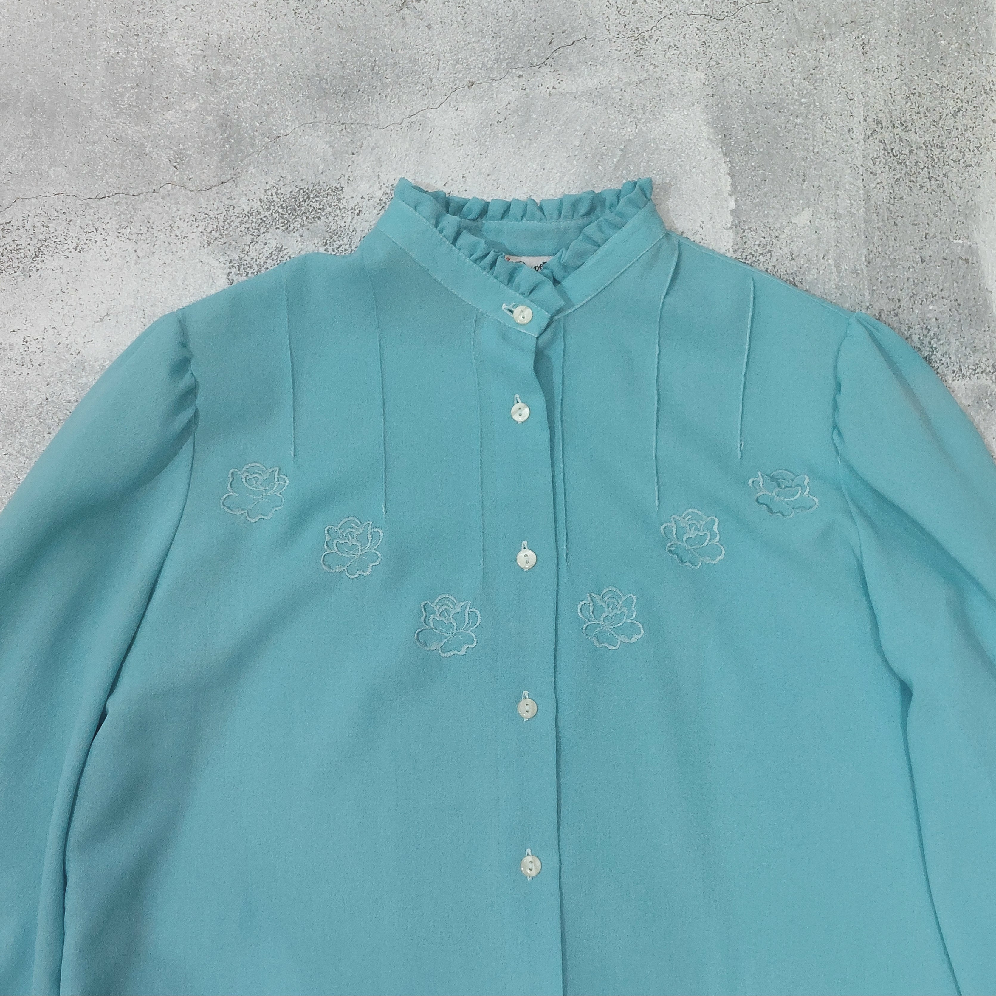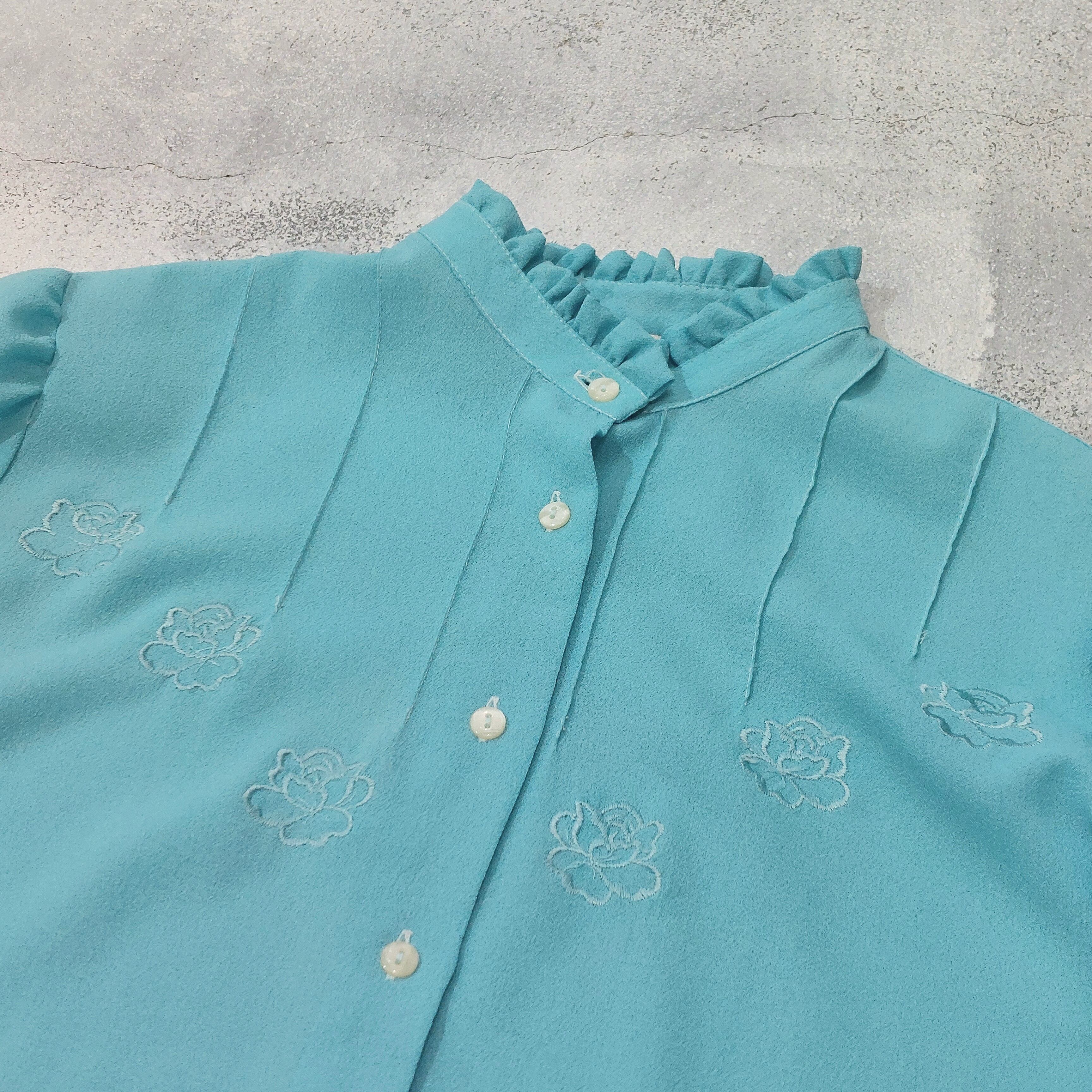 Flower embroidery frill collar blouse / Made in Italy[m-1440]イタリア製 花刺繍フリルカラーブラウス